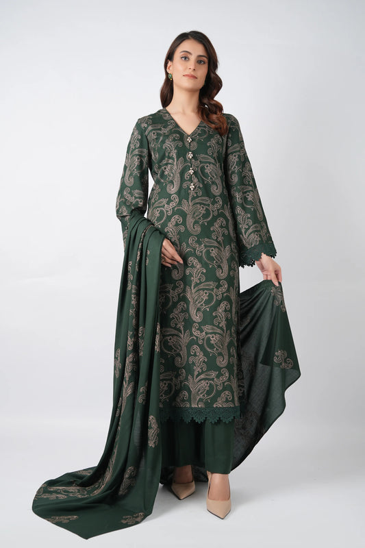 Premium 3-Piece Embroidered karandi Outfit with Crinkle Chiffon dupatta: Latest Winter collection •SHIRT:Allover Embroidered front back...