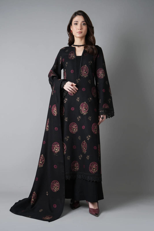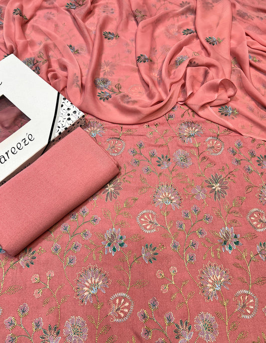 Premium 3-Piece Embroidered karandi Outfit with Crinkle Chiffon dupatta: Latest Winter collection •SHIRT:Allover Embroidered front back...