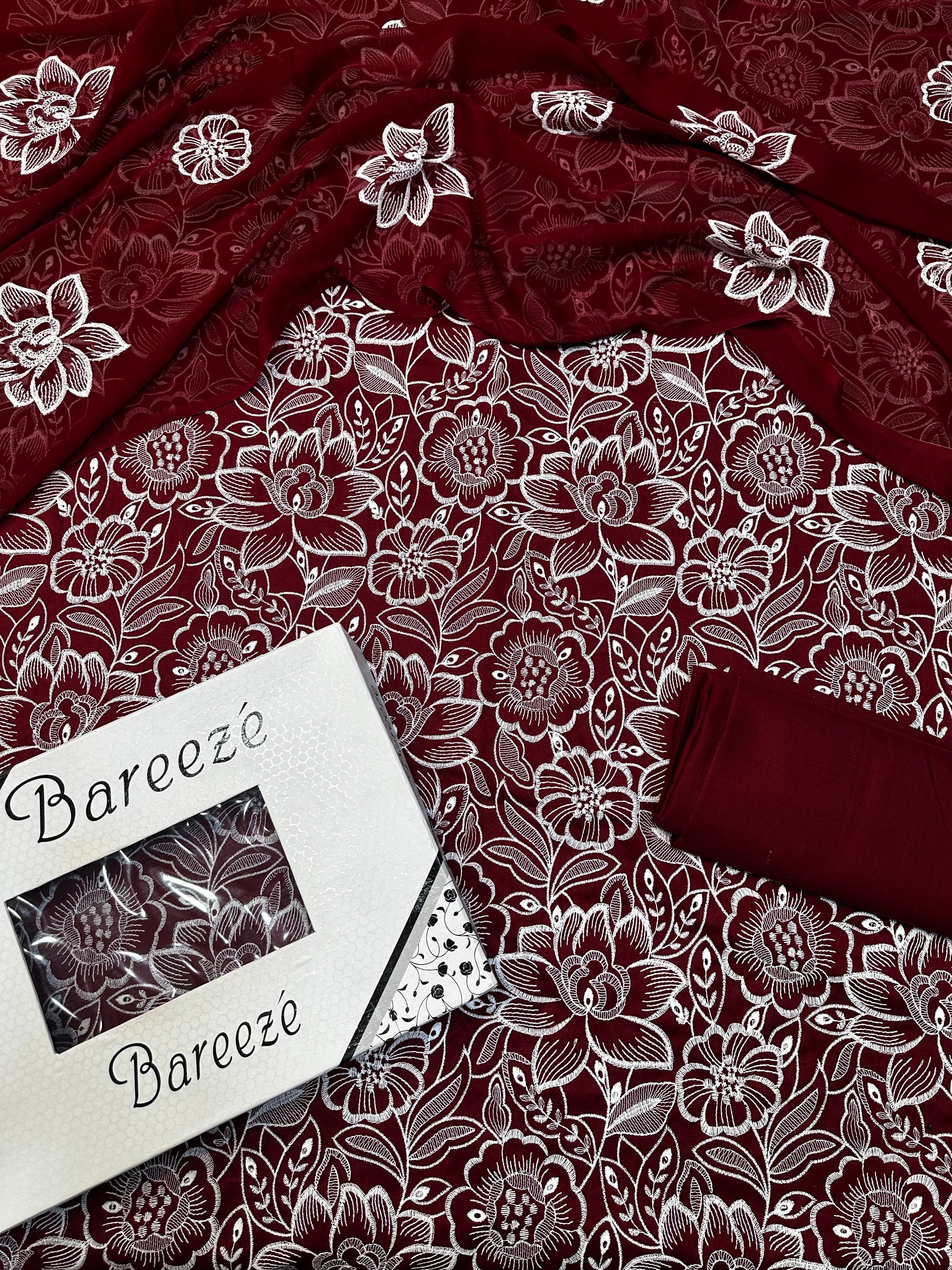 Bareeze Chikan Kari - Lawn 3 Pcs Allover Embroidered unstitched Dress with Chiffon Dupatta.