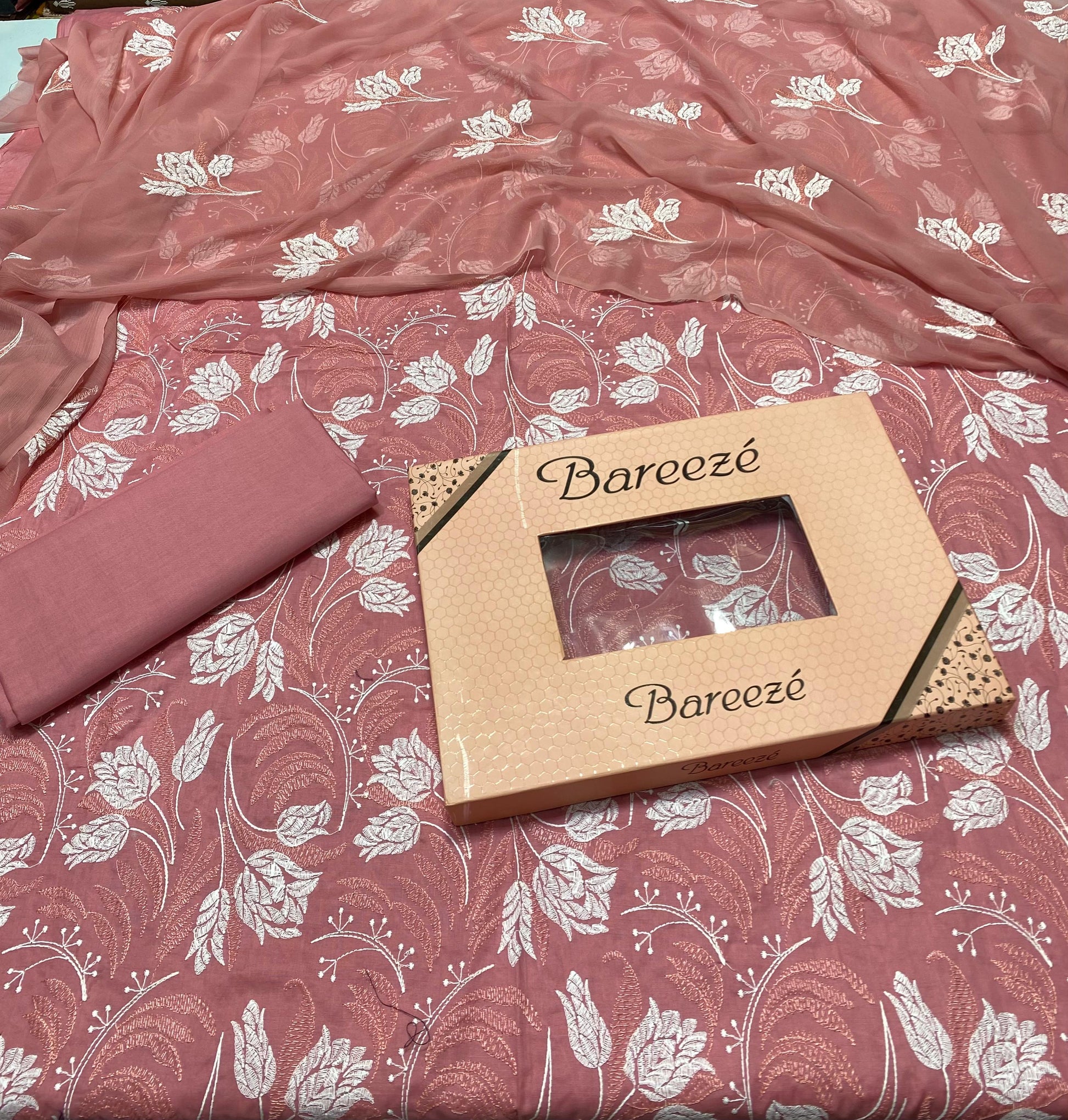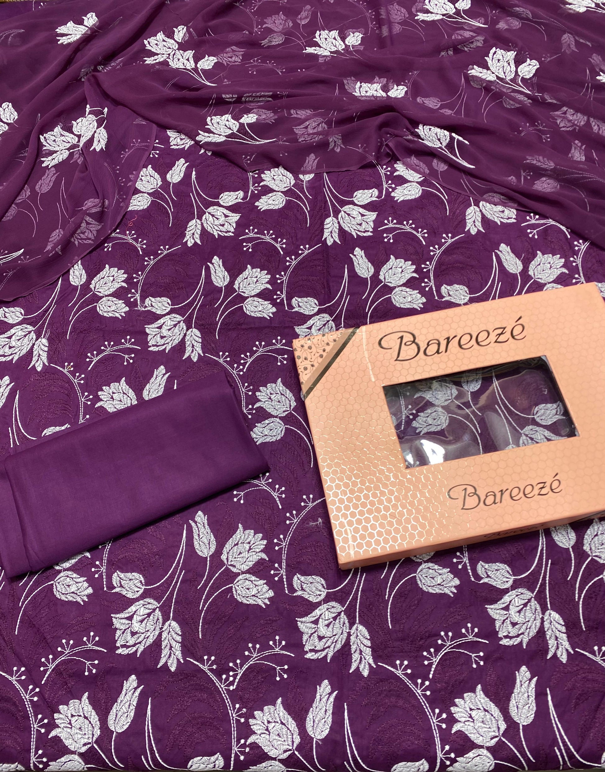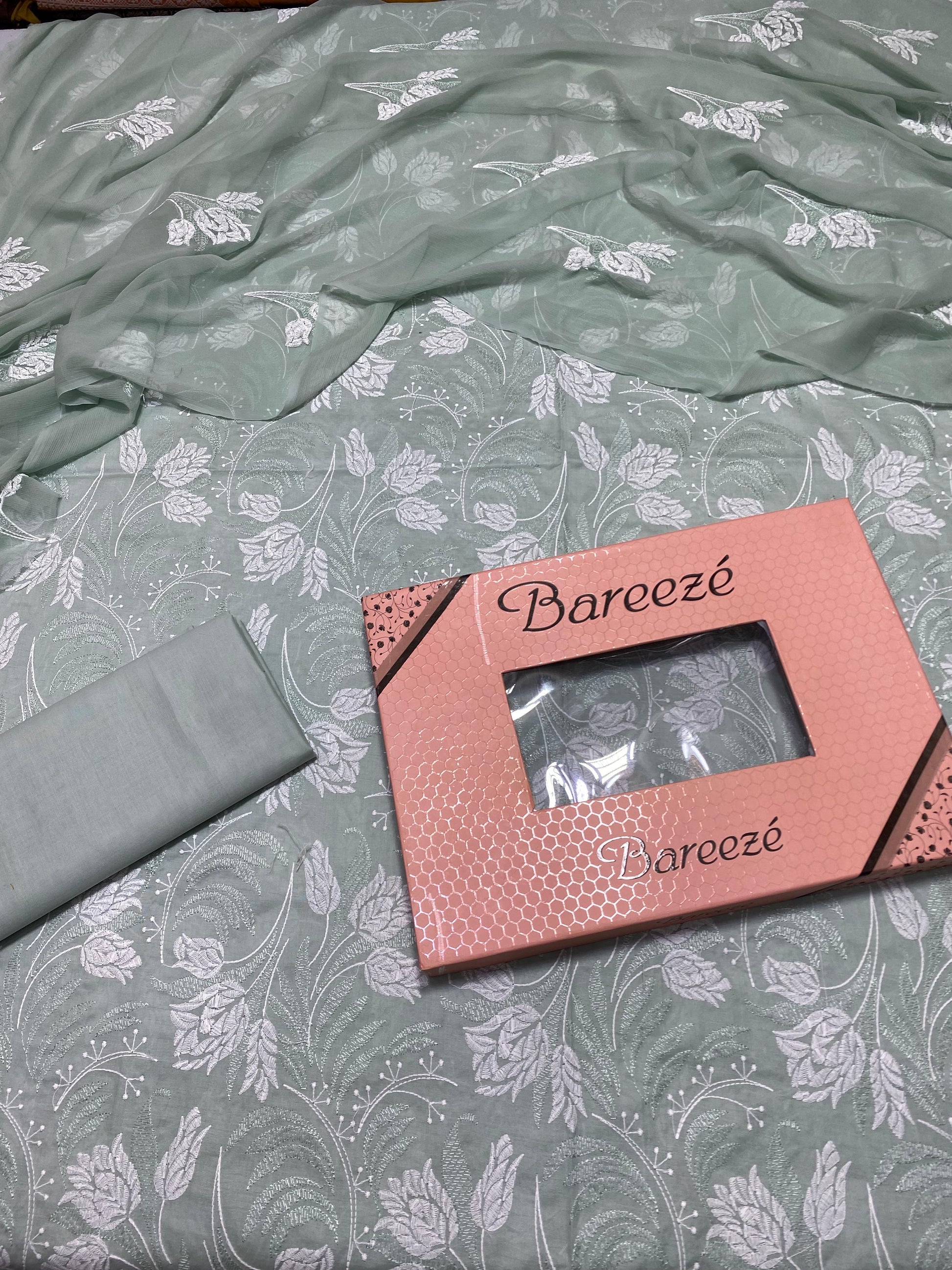 Bareeze - Lawn 3 Pcs Allover Embroidered unstitched Dress with Chiffon Dupatta.