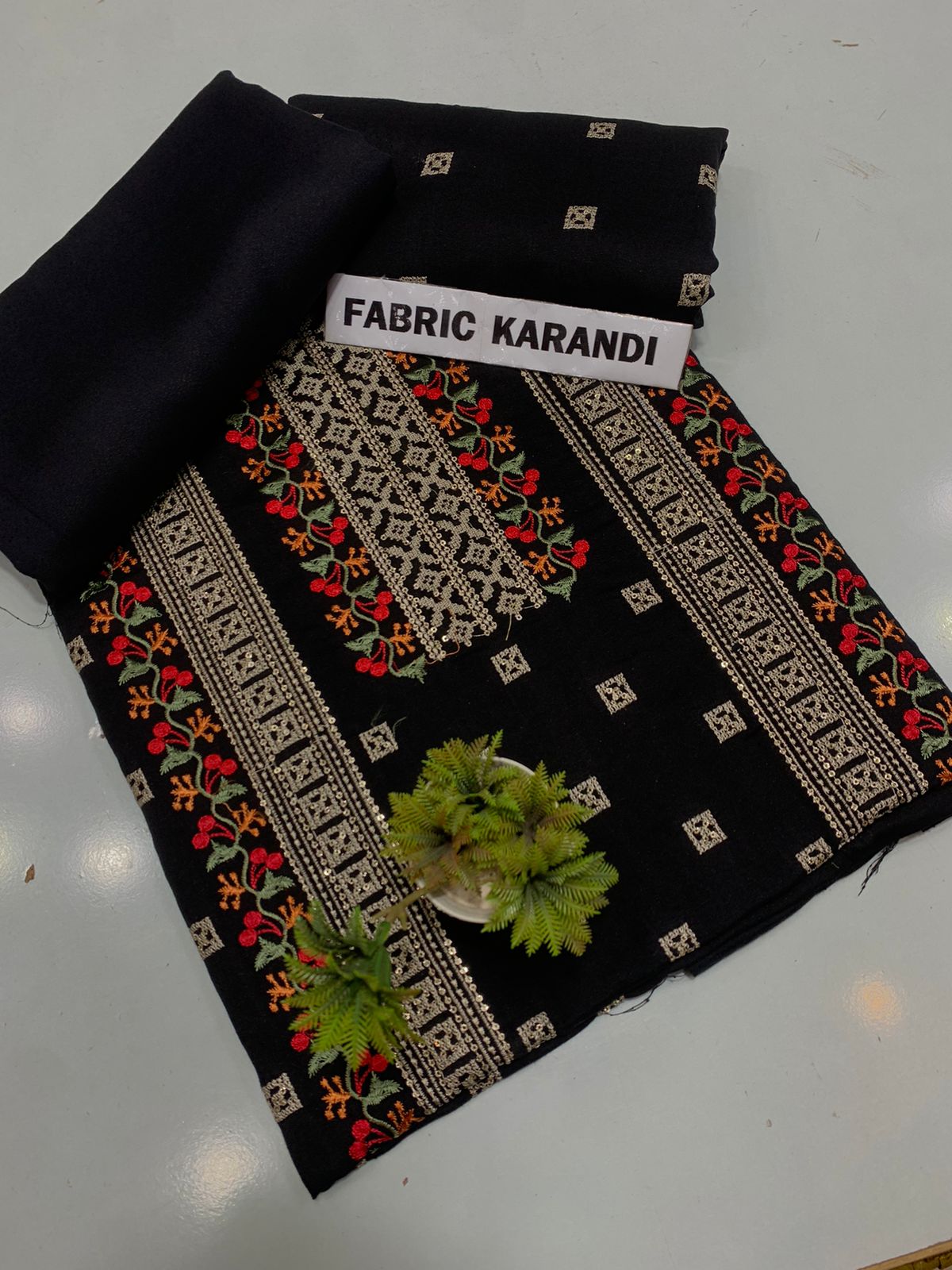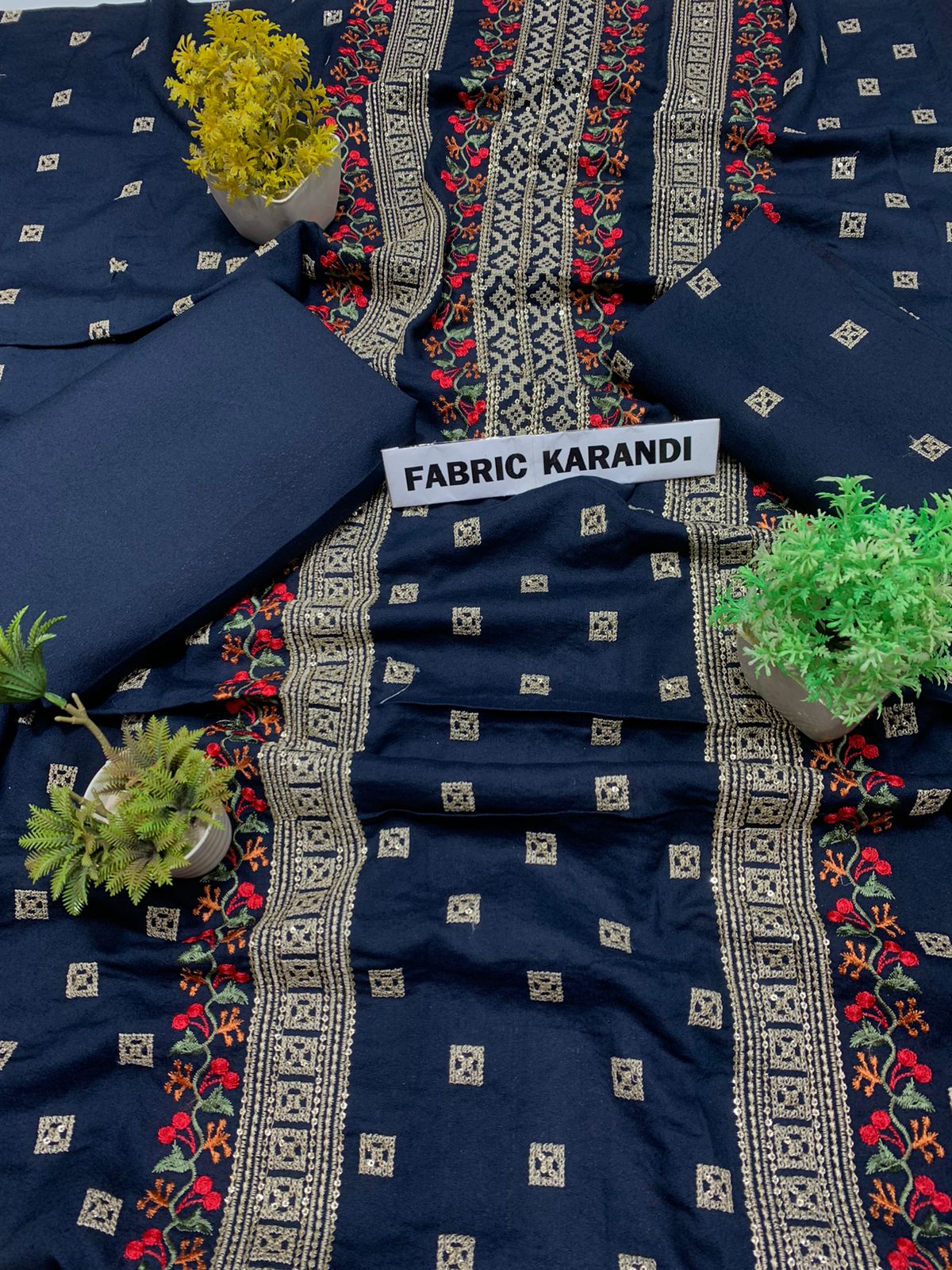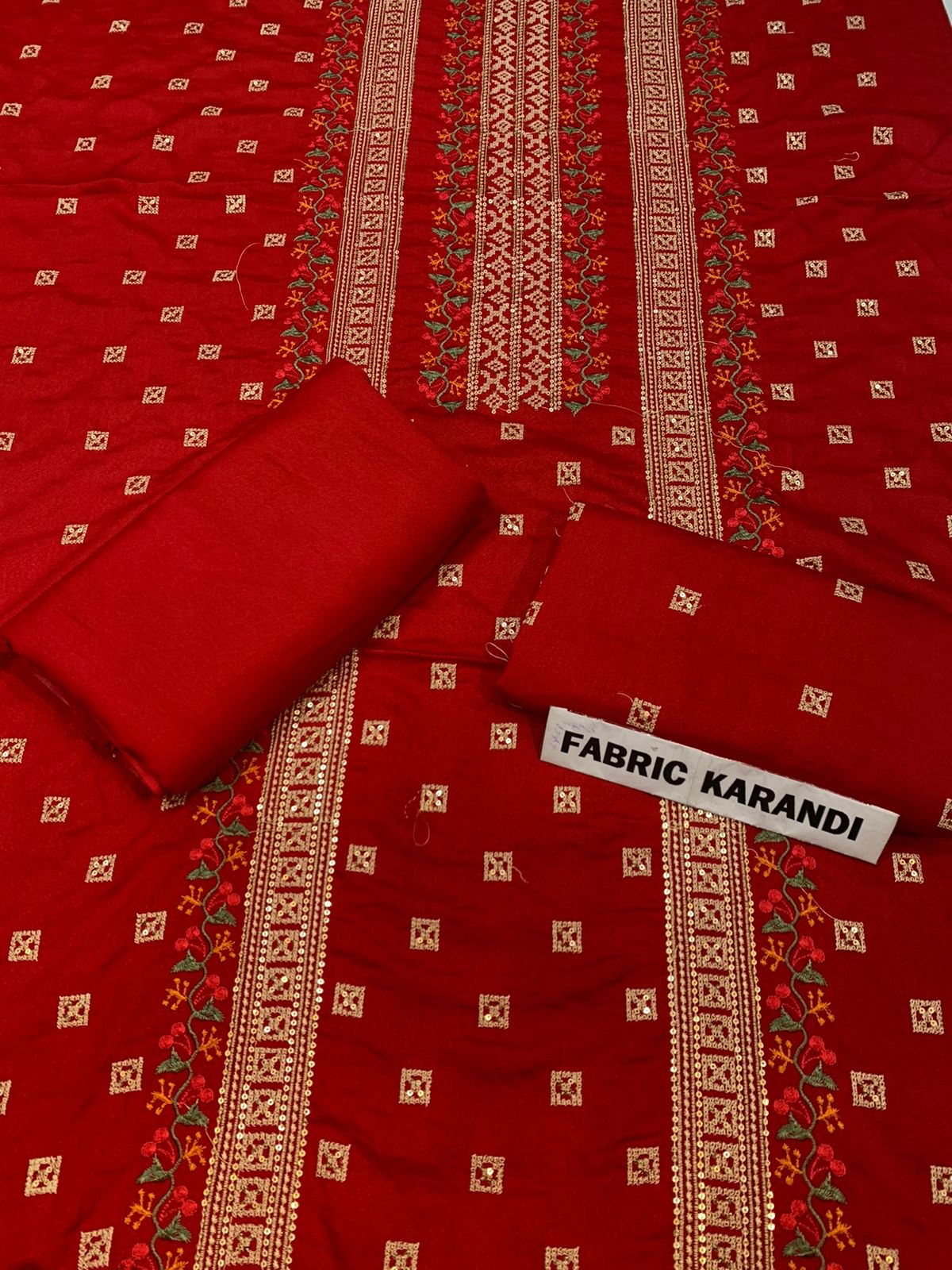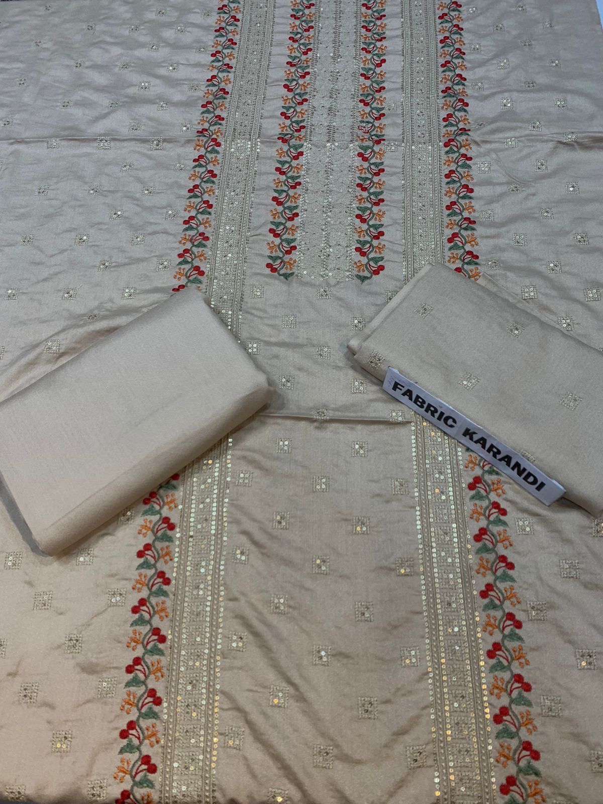 Embroidered Shirt With Plain Karandi Trouser. Stuff: Premium Quality Soft Karandi.