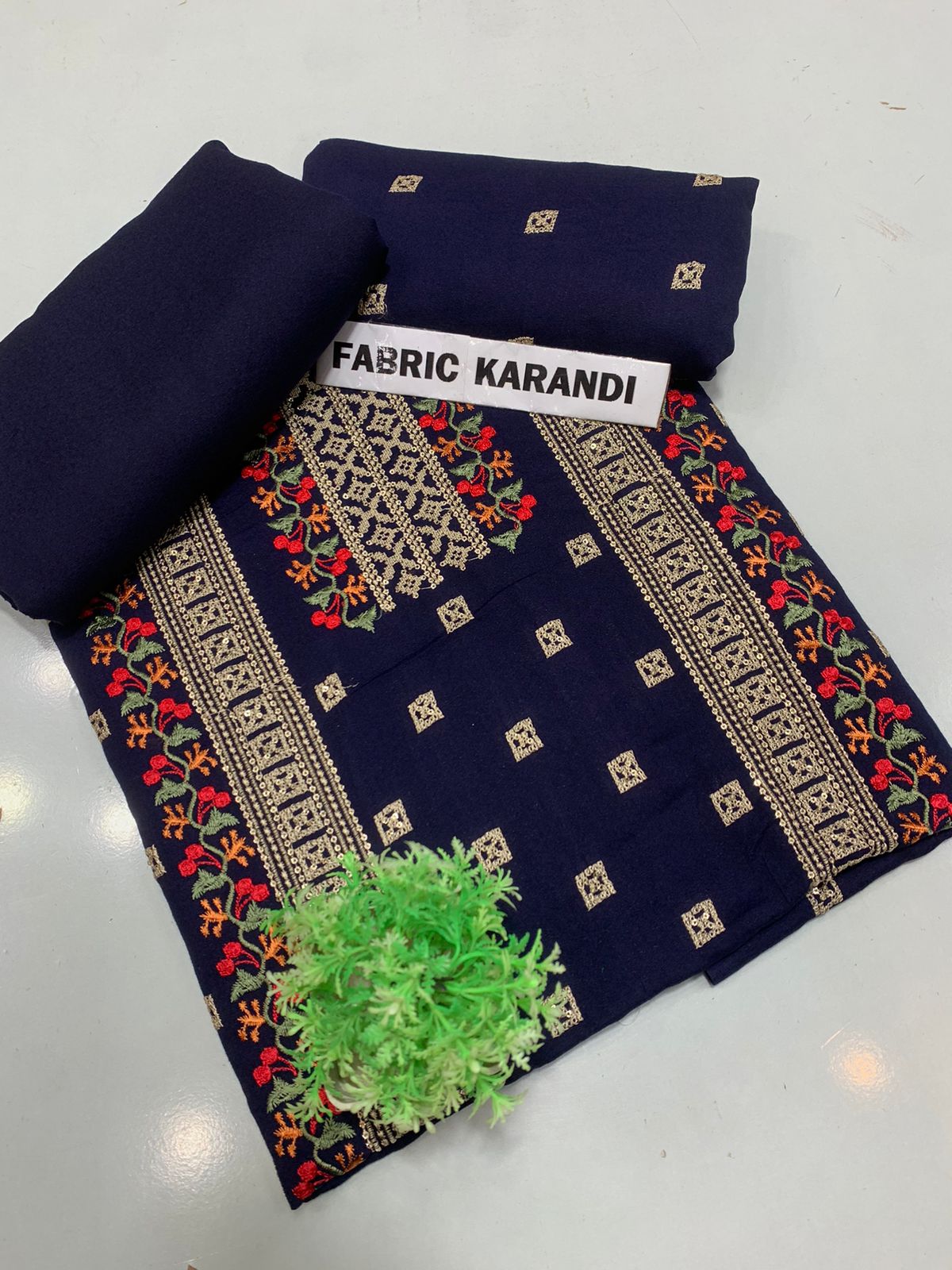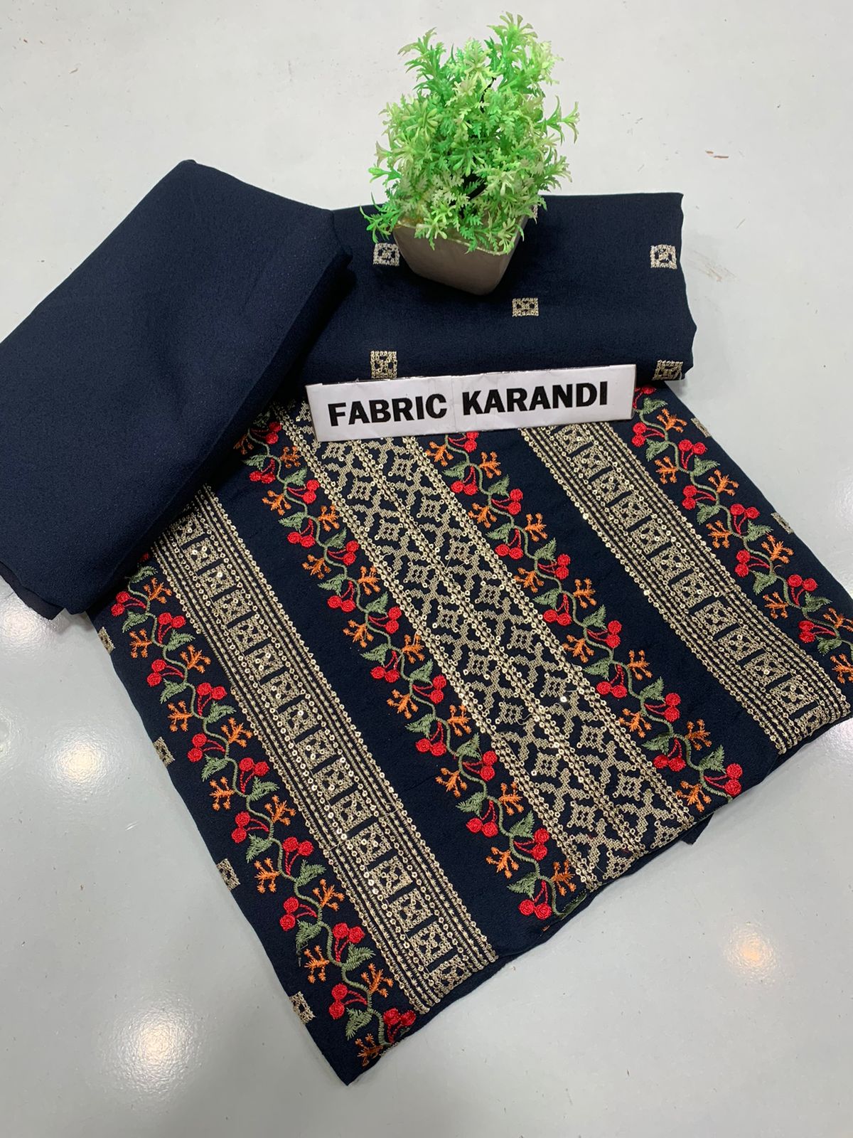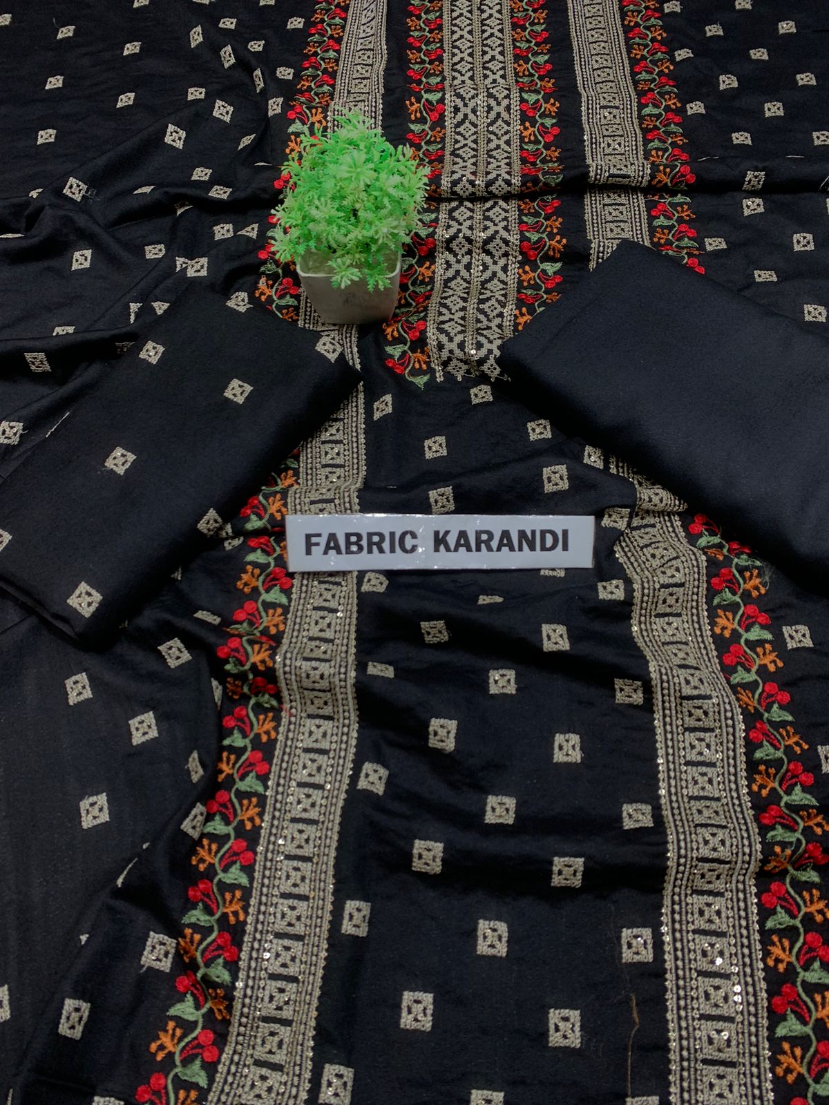 Embroidered Shirt With Plain Karandi Trouser. Stuff: Premium Quality Soft Karandi.