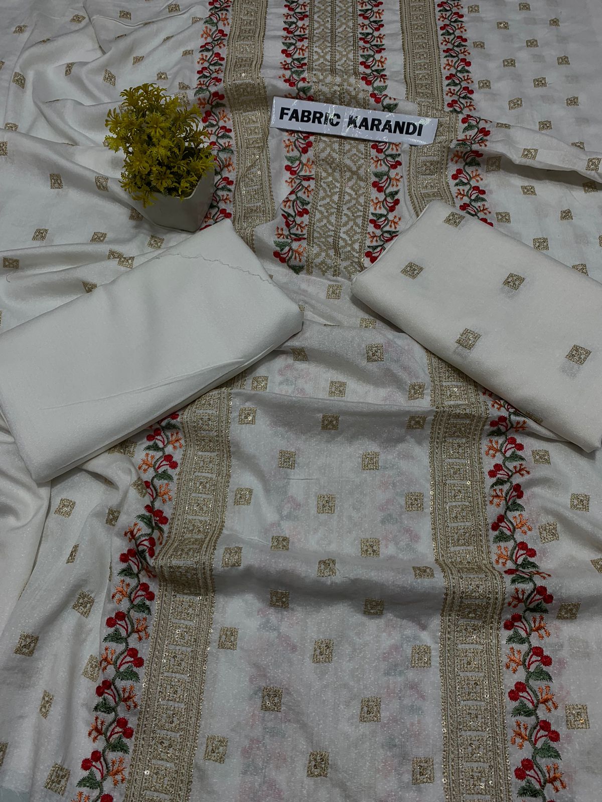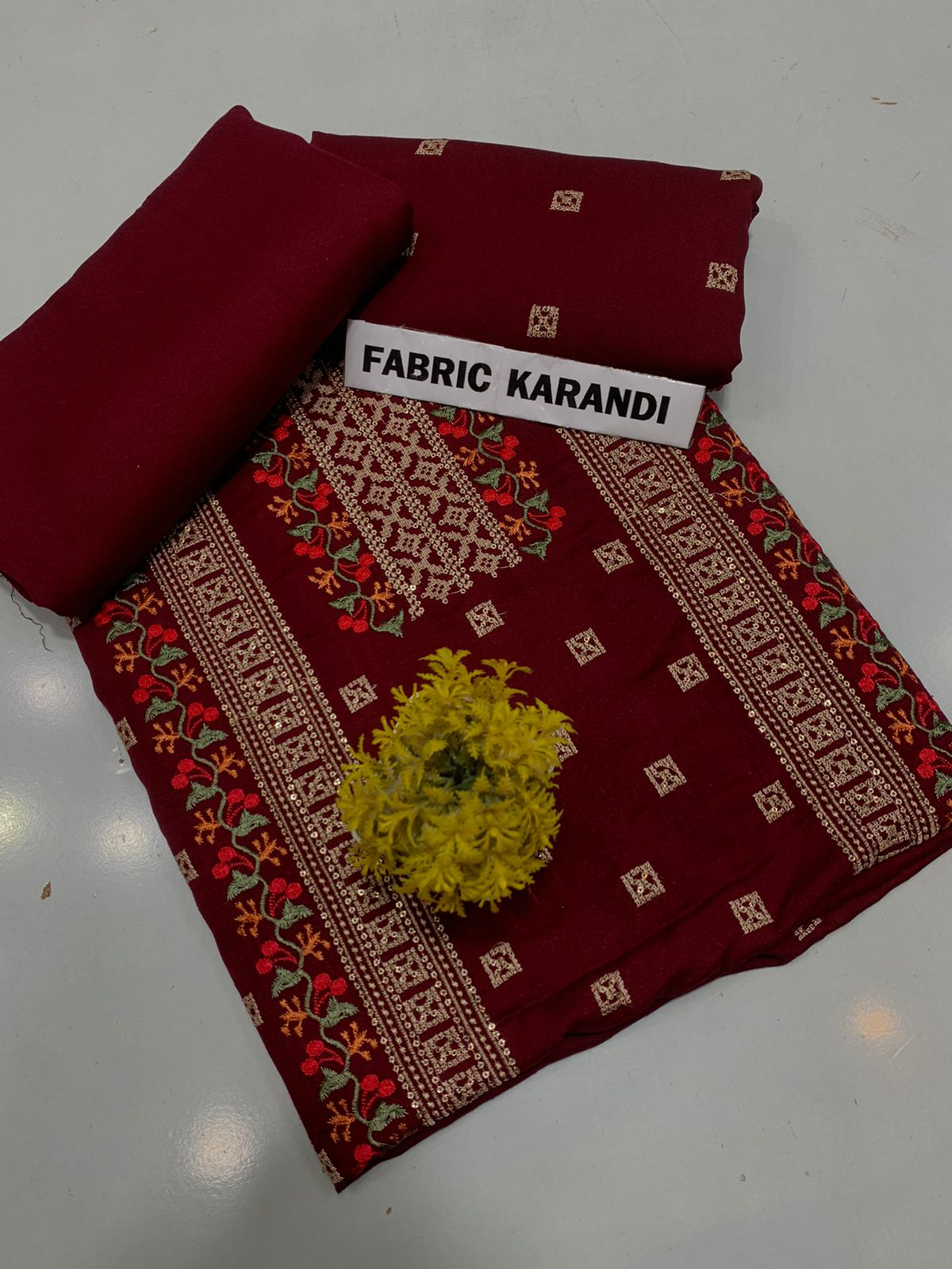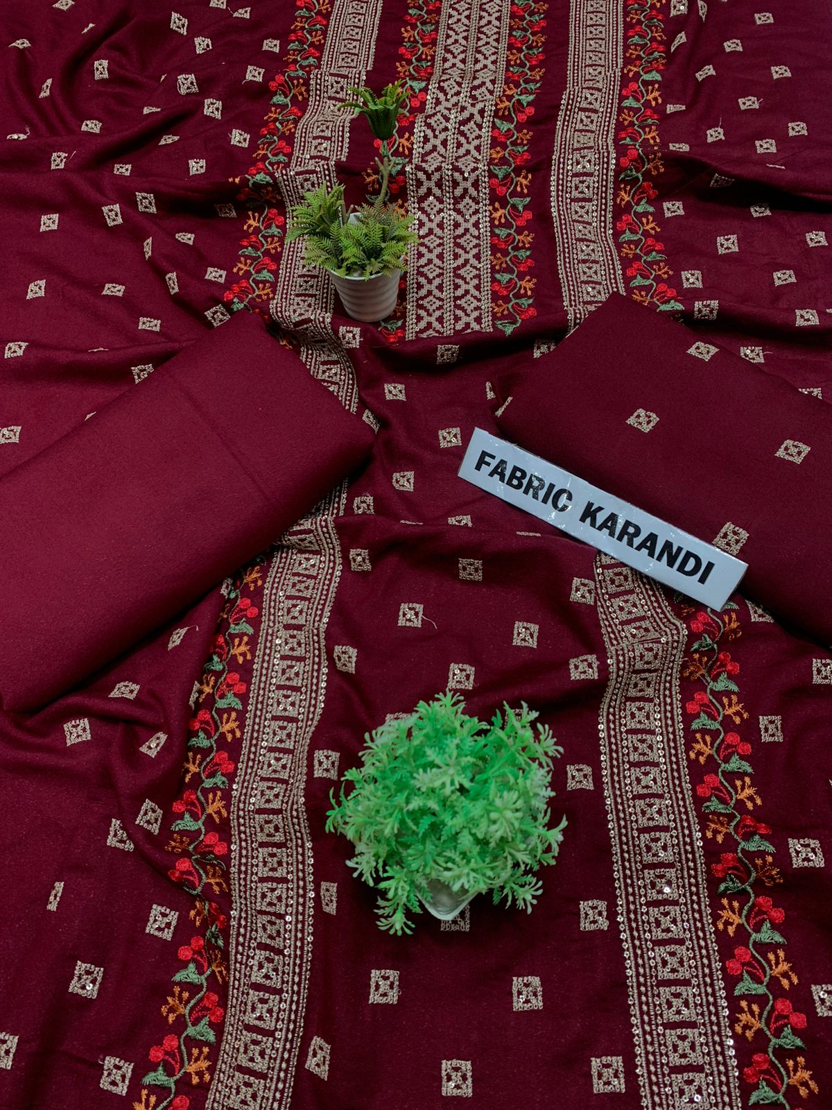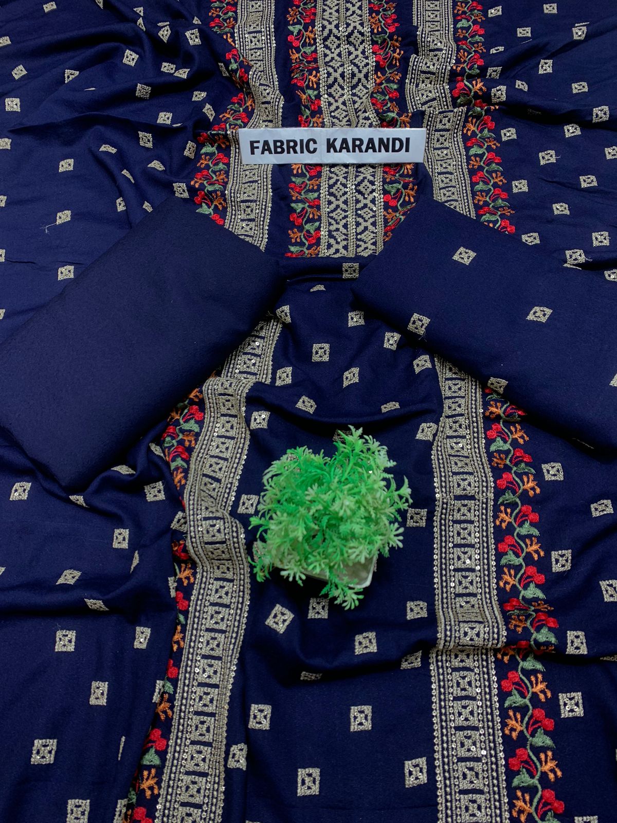 Embroidered Shirt With Plain Karandi Trouser. Stuff: Premium Quality Soft Karandi.