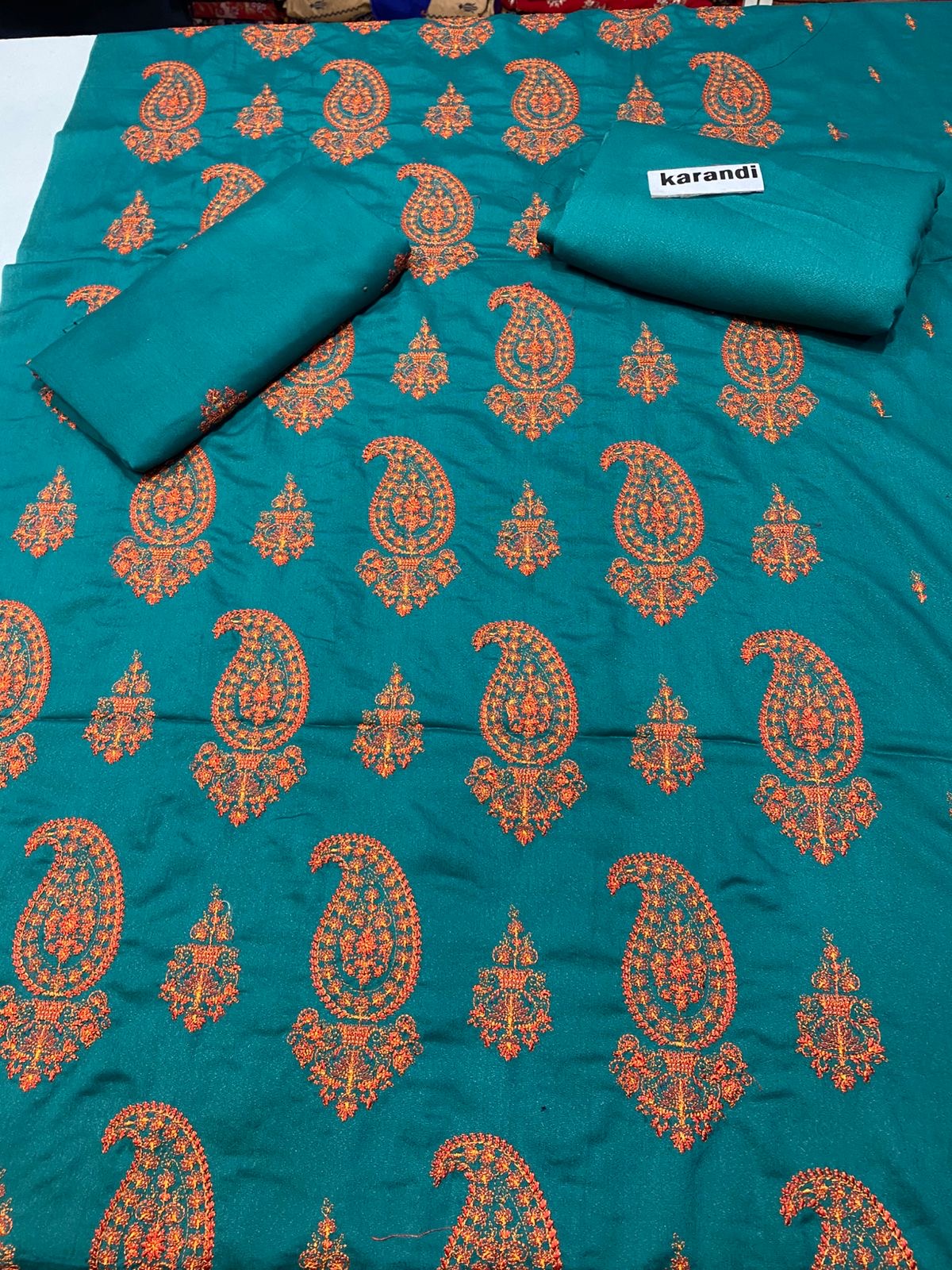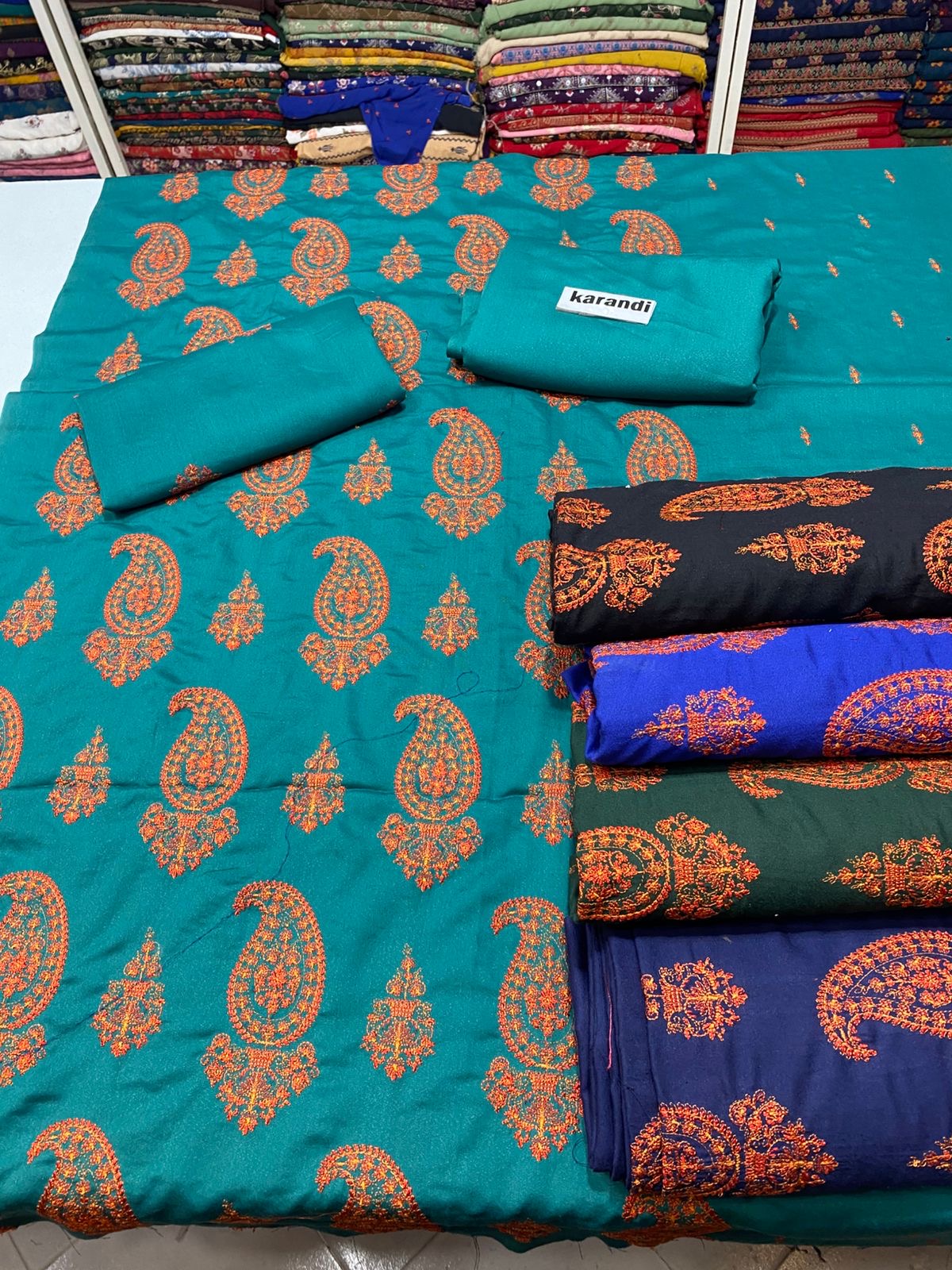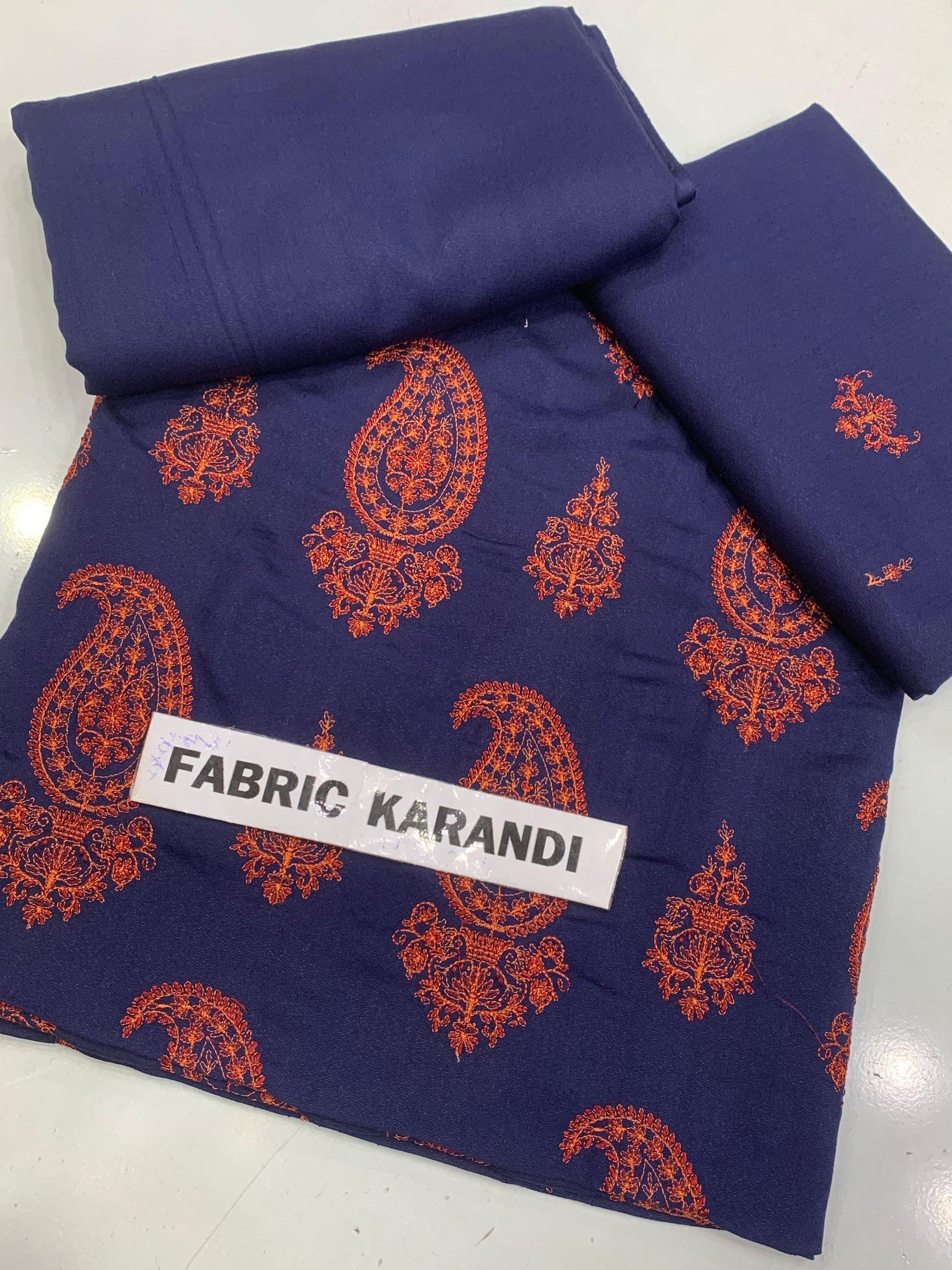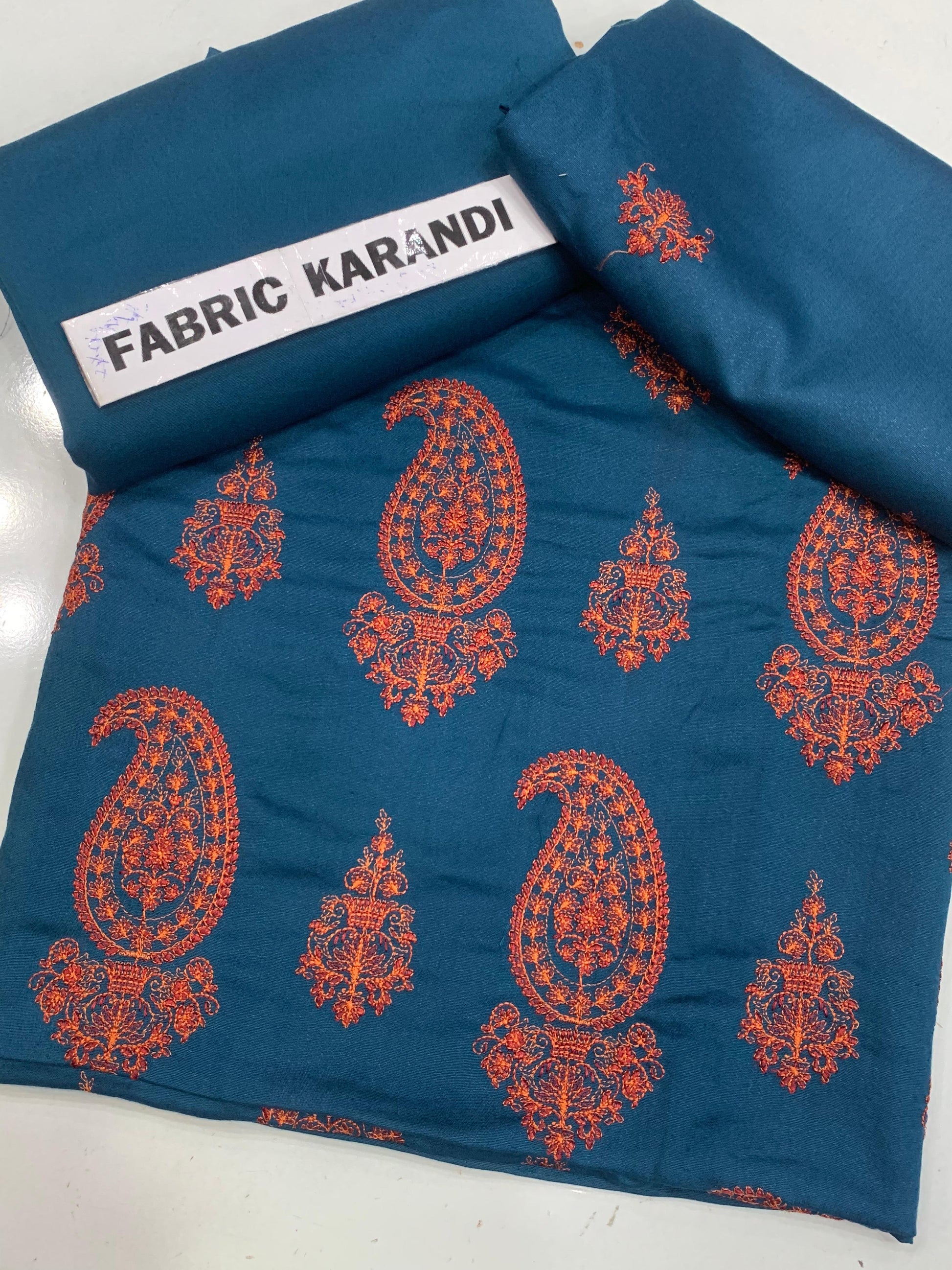Embroidered Shirt With Plain Karandi Trouser. Stuff: Premium Quality Soft Karandi.