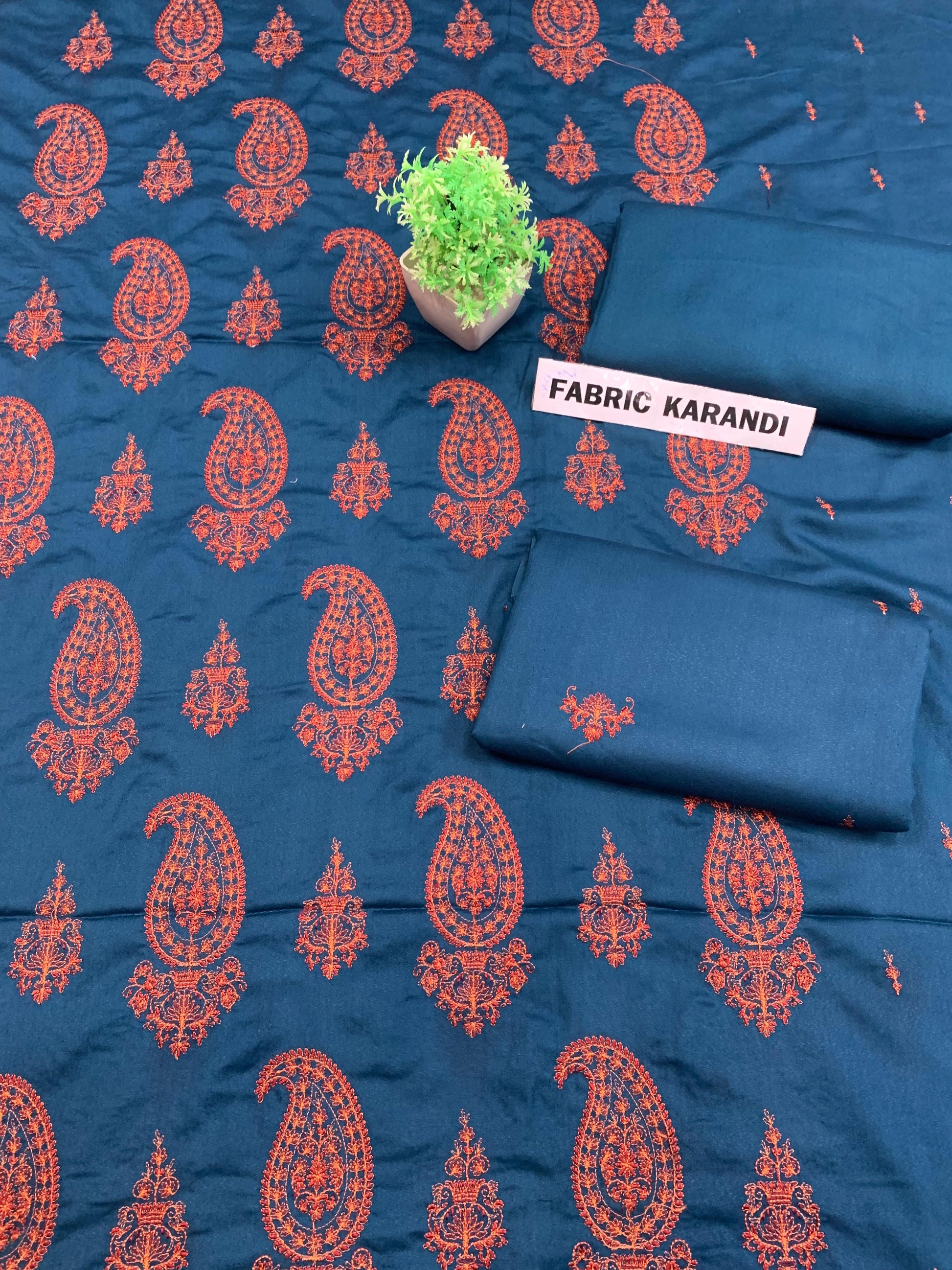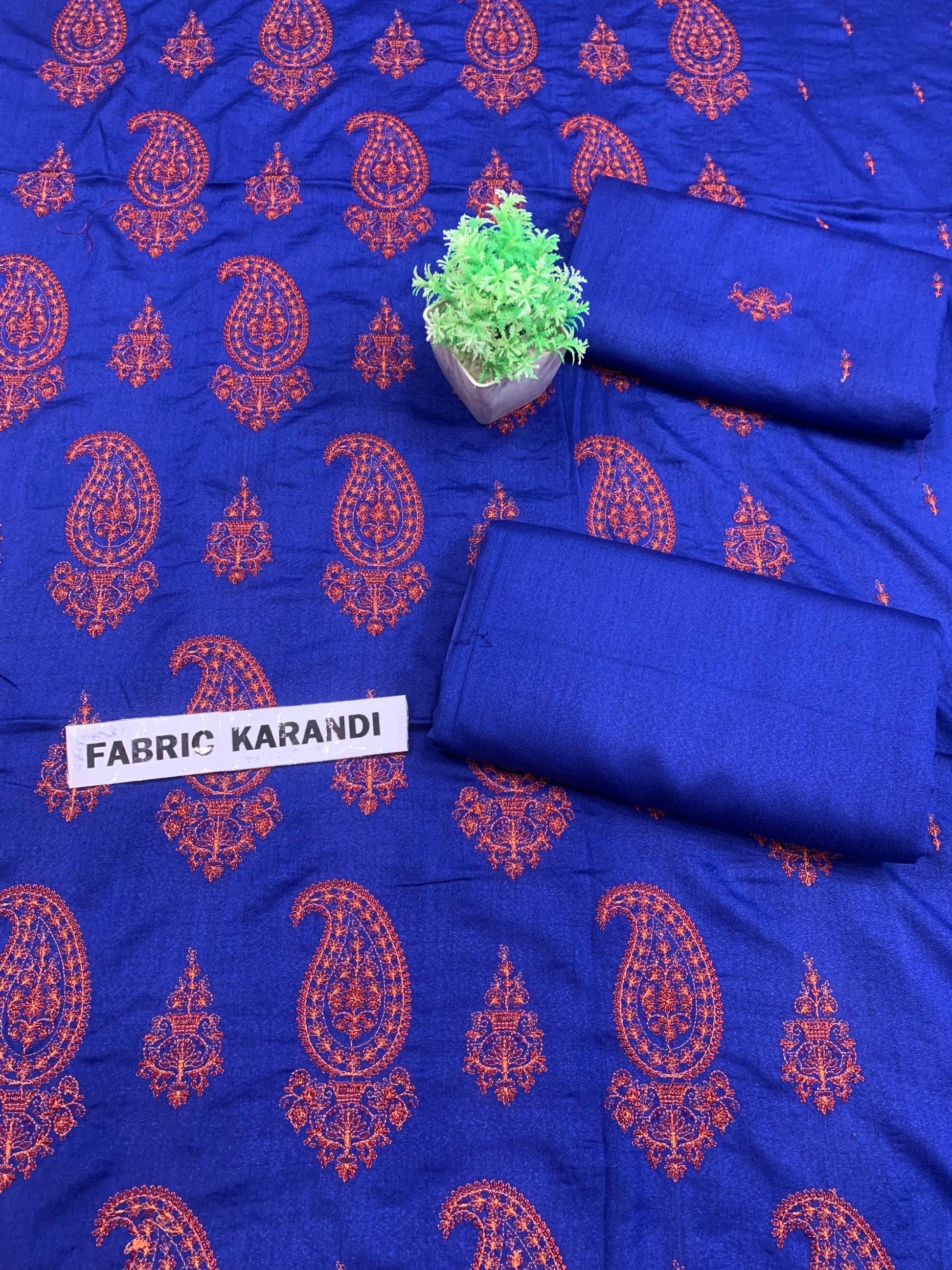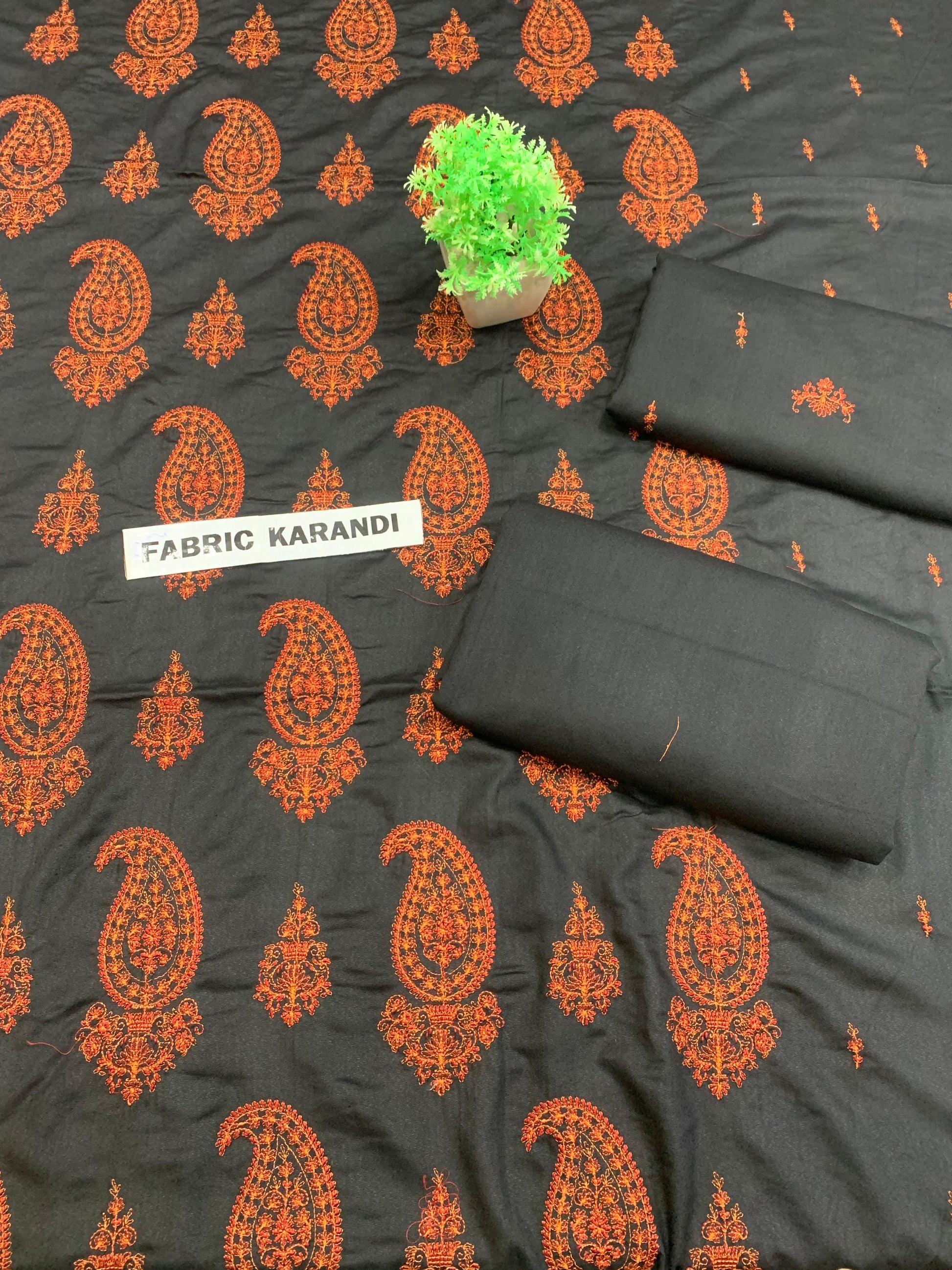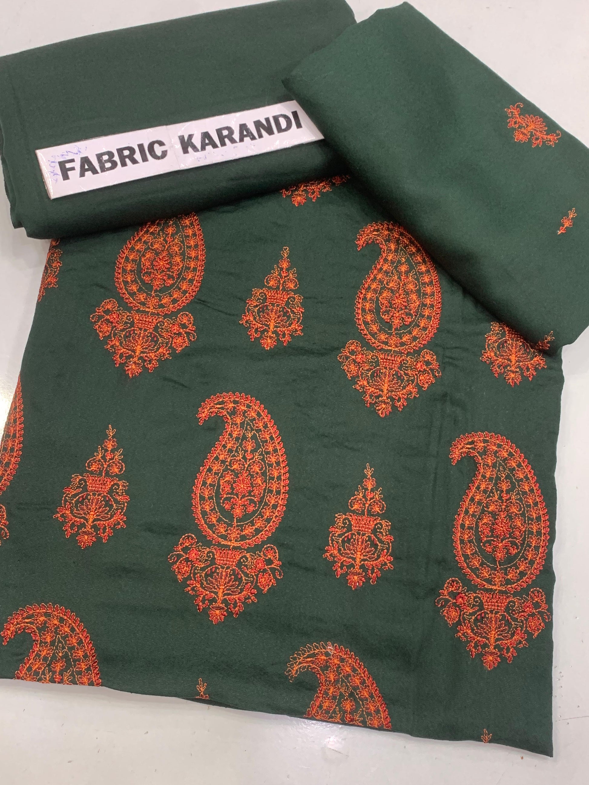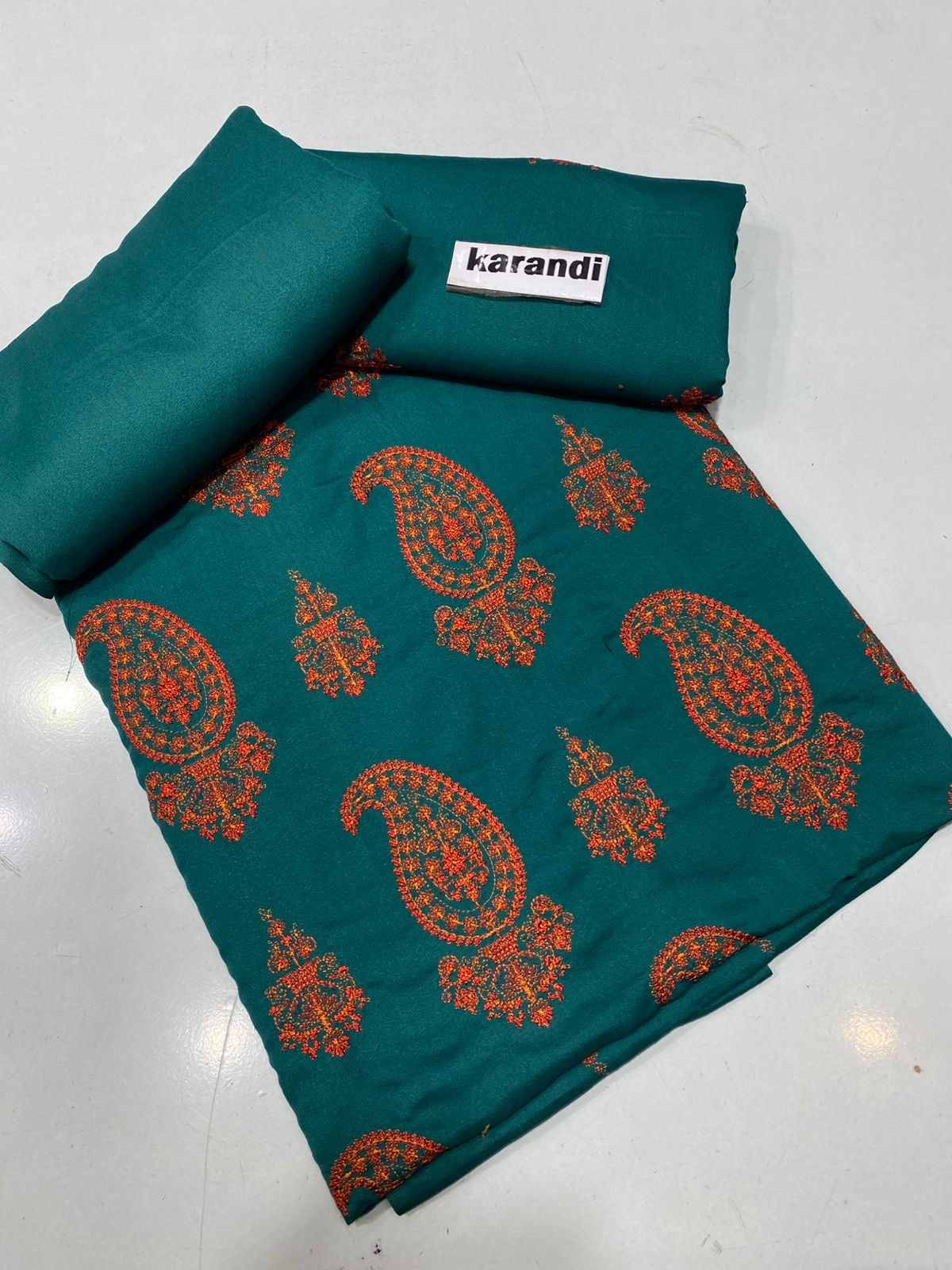 Embroidered Shirt With Plain Karandi Trouser. Stuff: Premium Quality Soft Karandi.