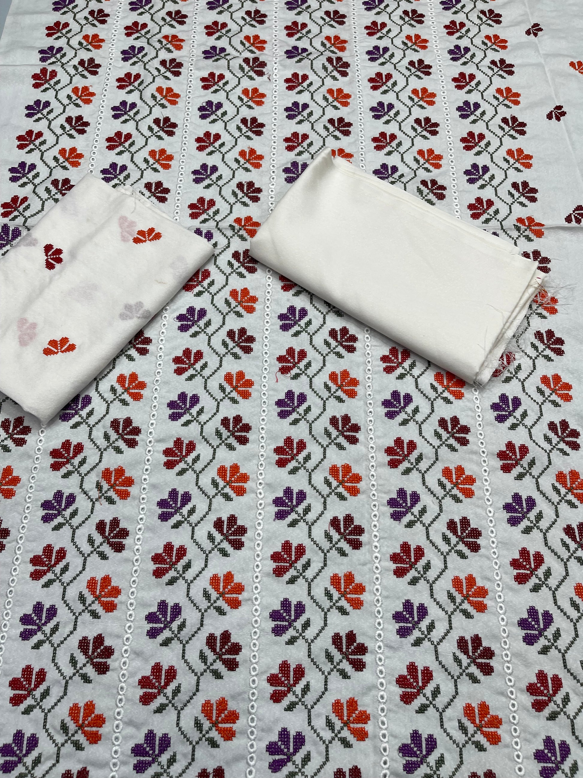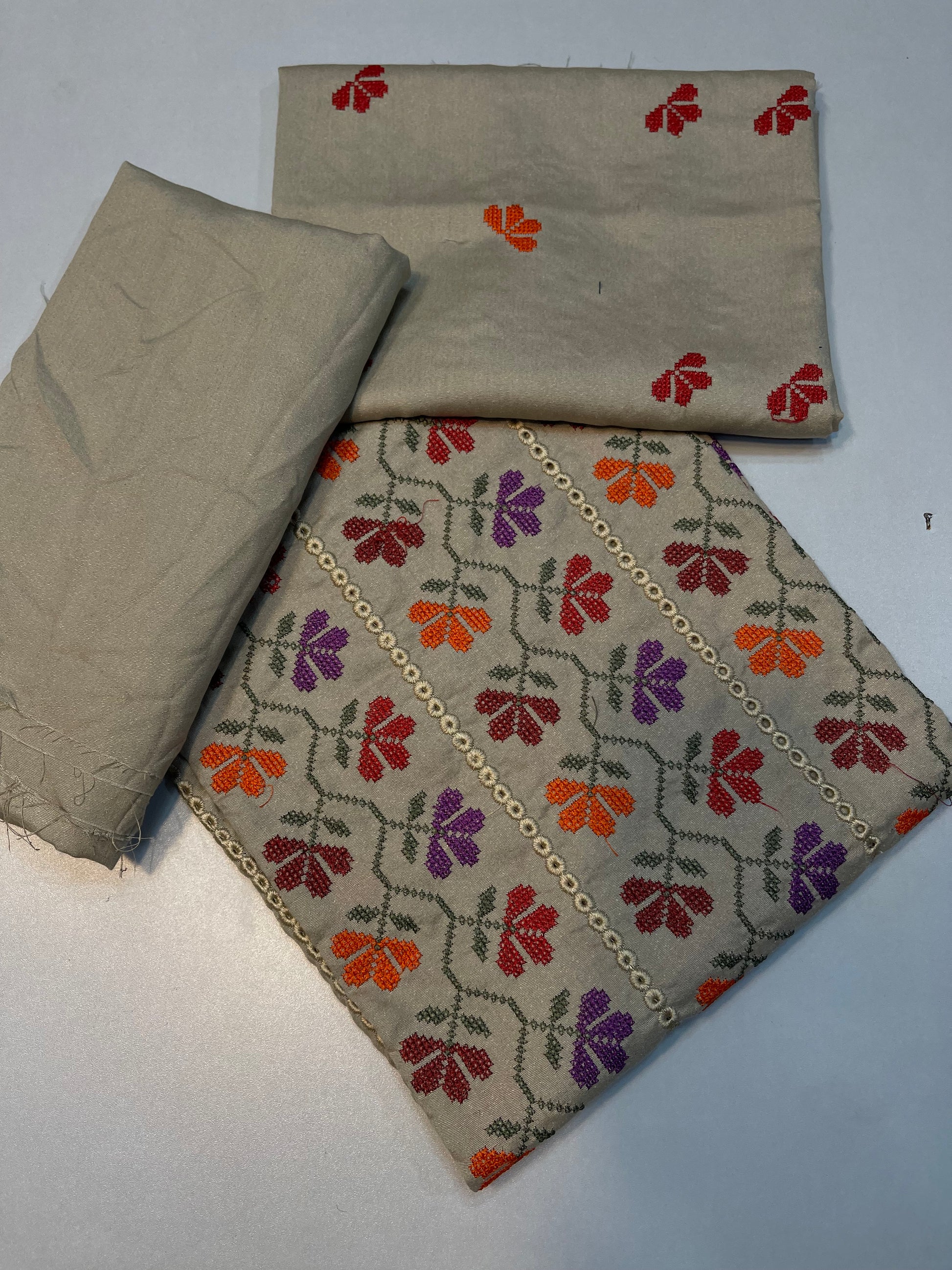 Embroidered Shirt With Plain Karandi Trouser. Stuff: Premium Quality Soft Karandi.