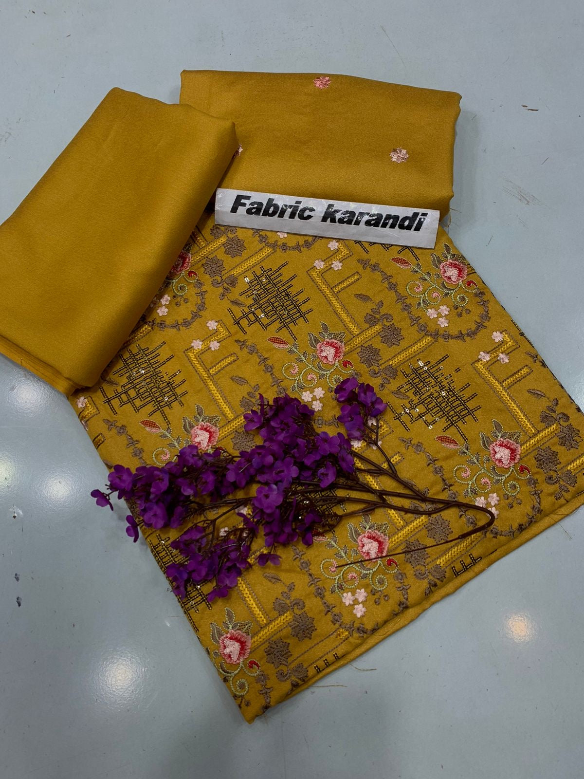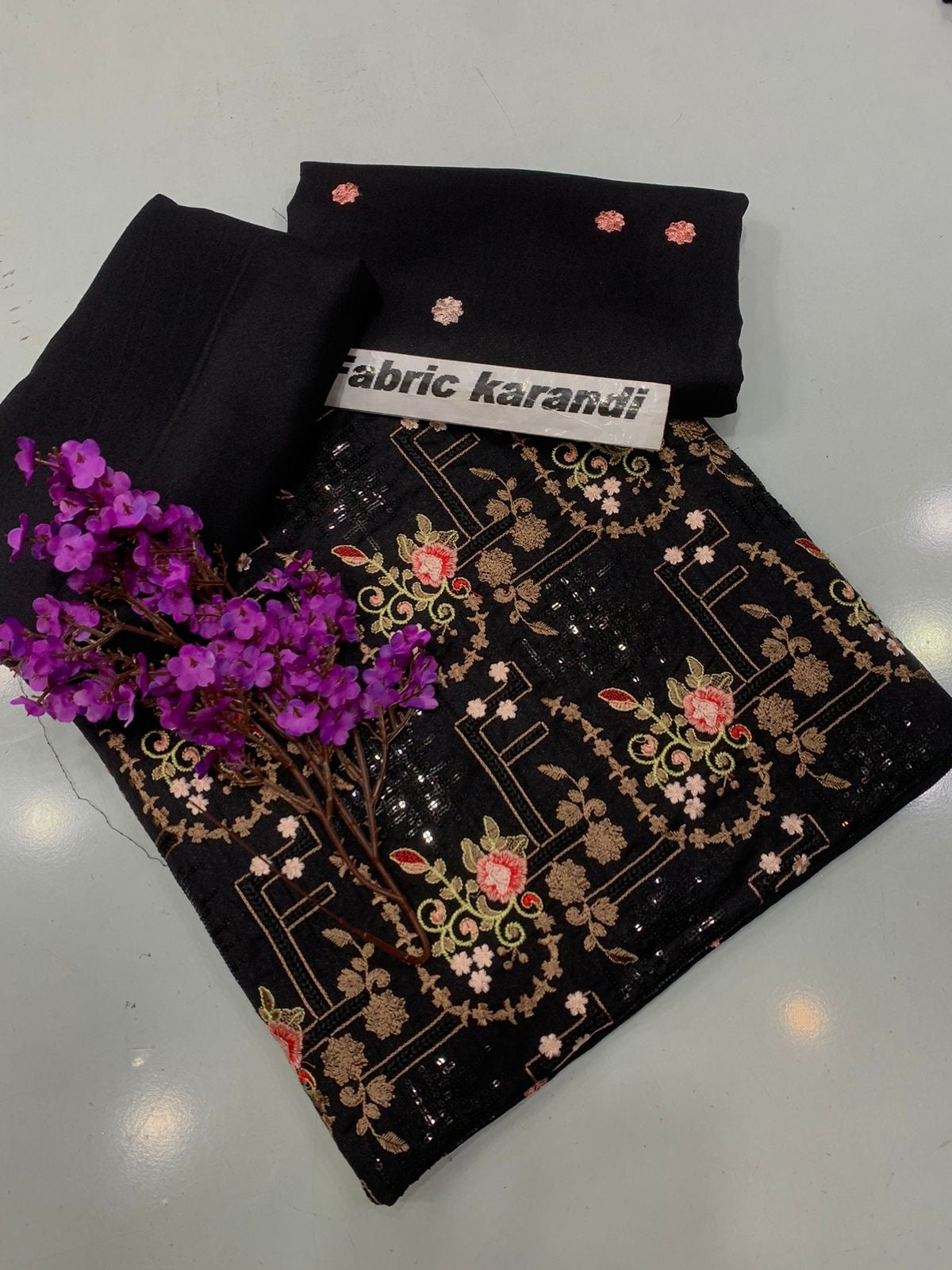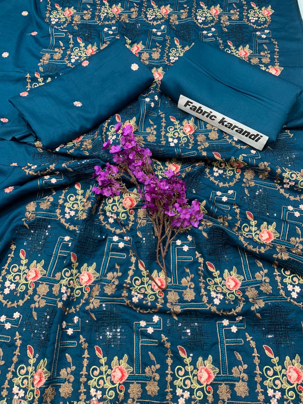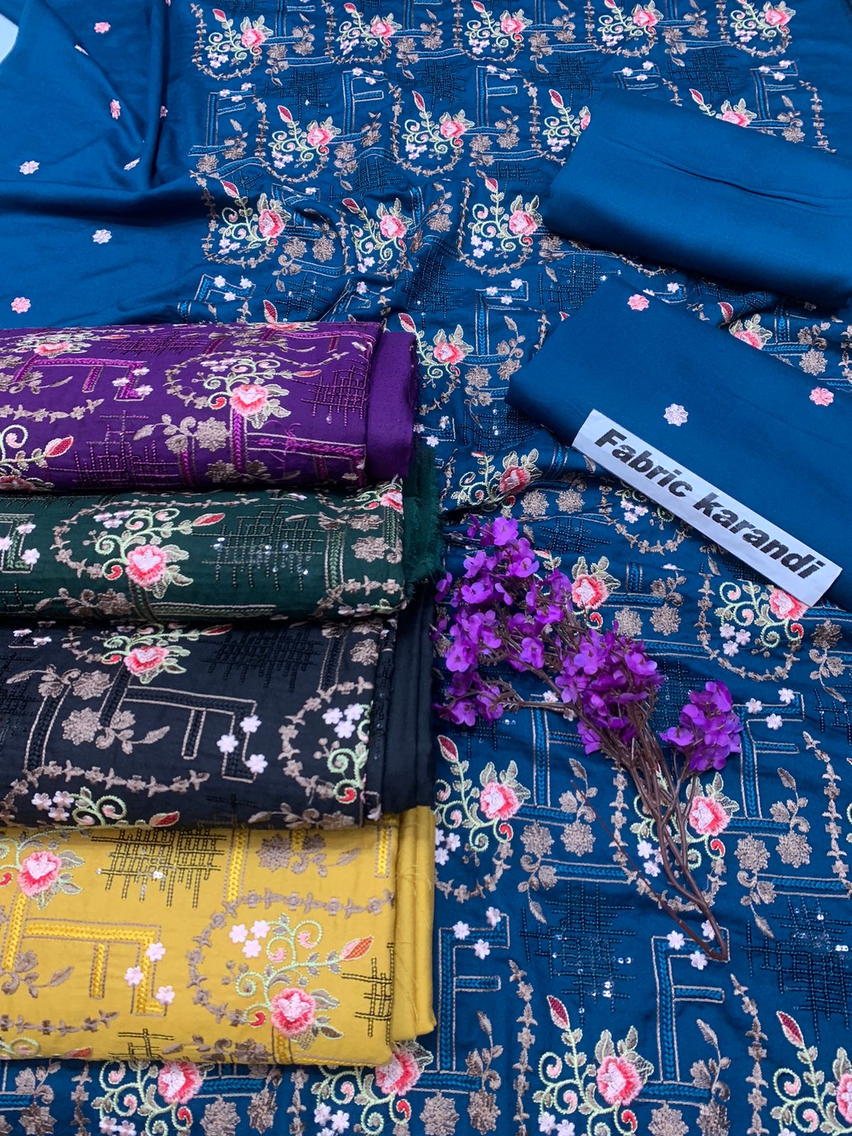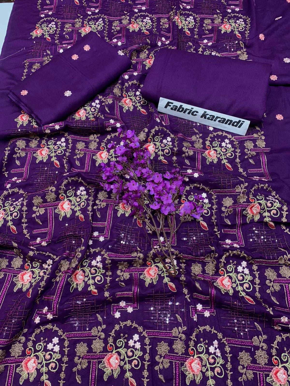 Embroidered Shirt With Plain Karandi Trouser. Stuff: Premium Quality Soft Karandi.