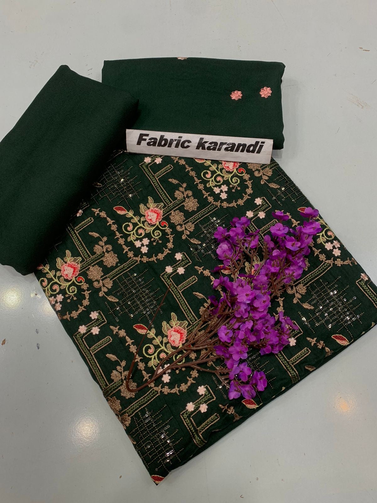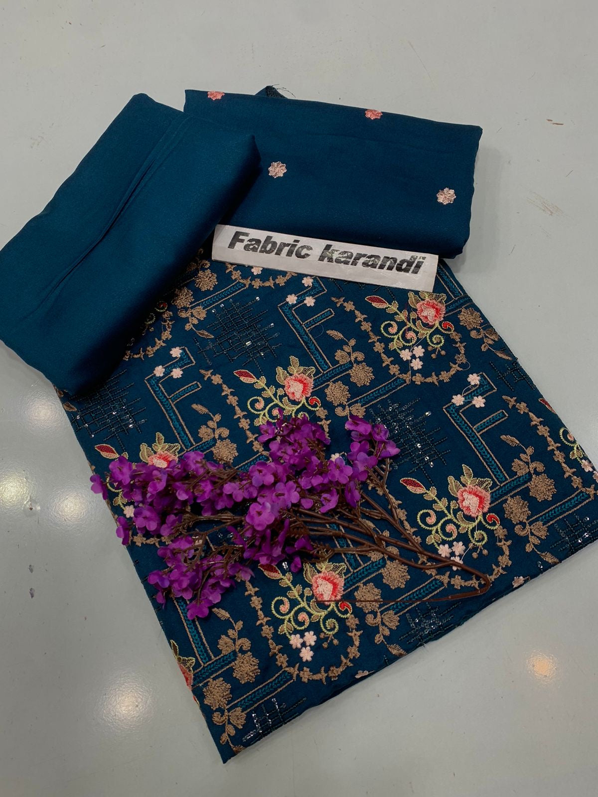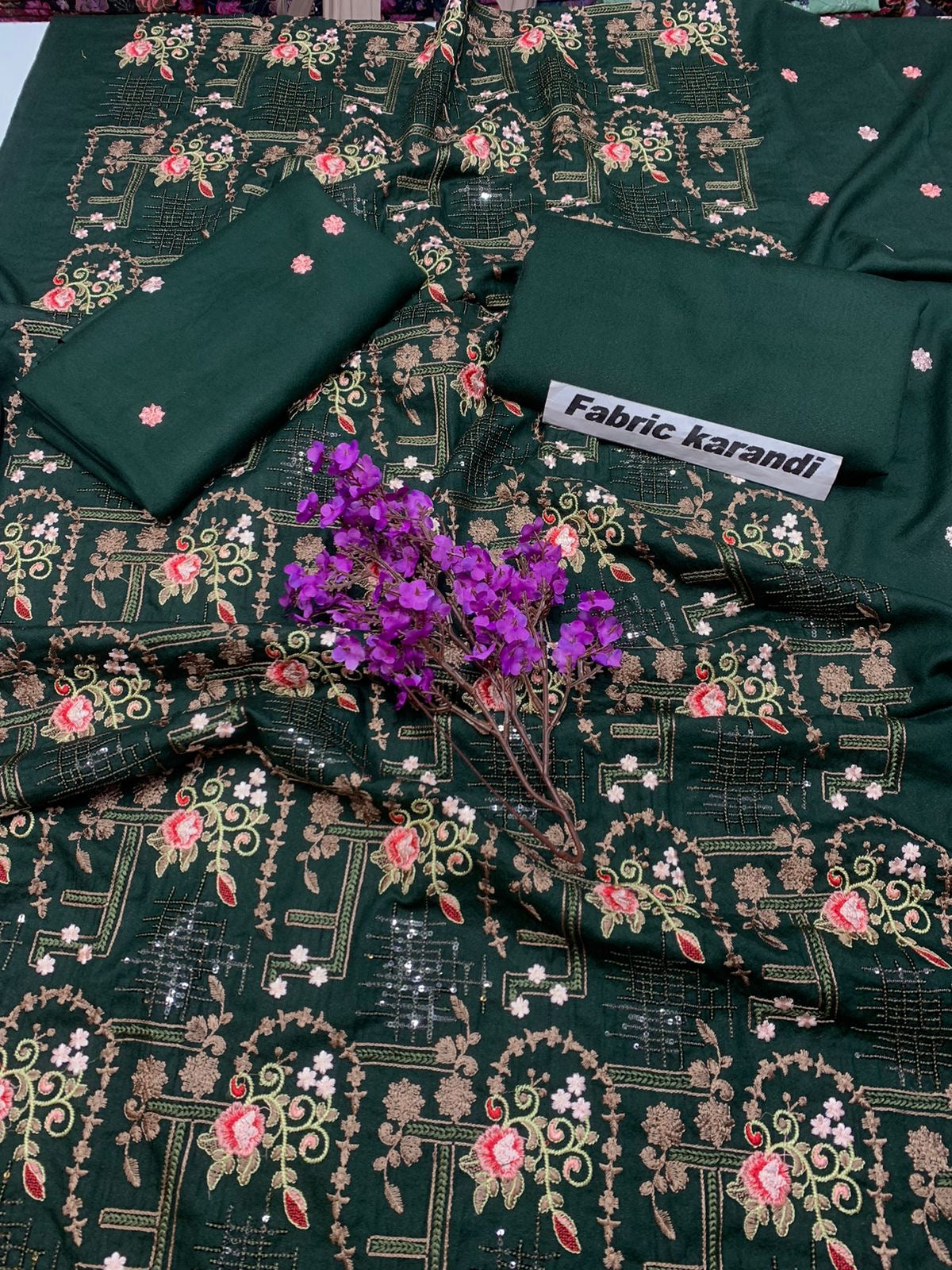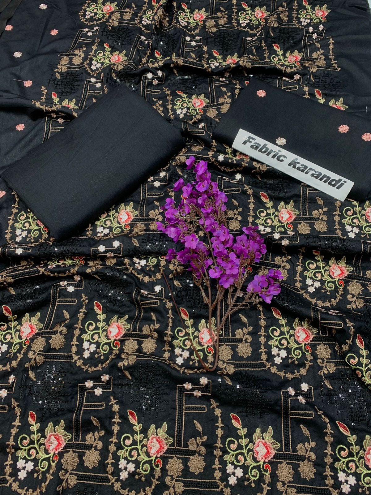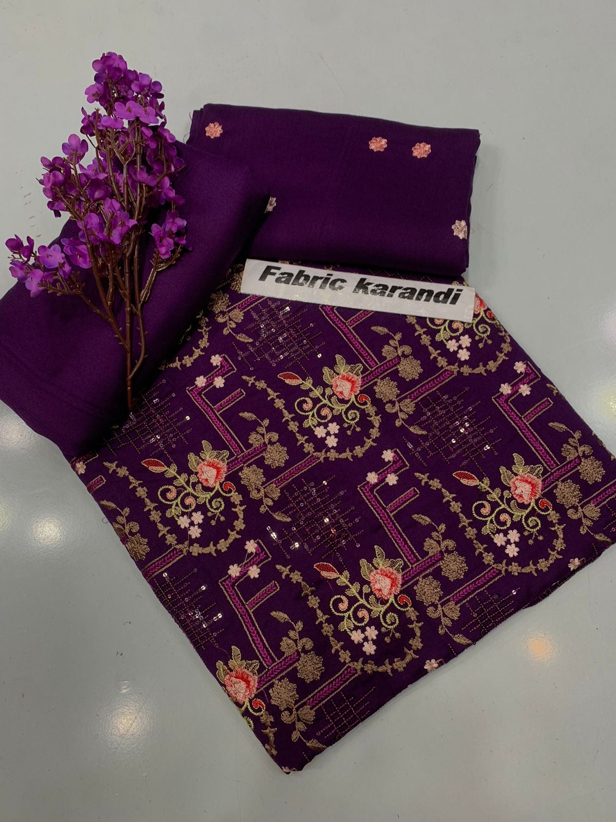 Embroidered Shirt With Plain Karandi Trouser. Stuff: Premium Quality Soft Karandi.