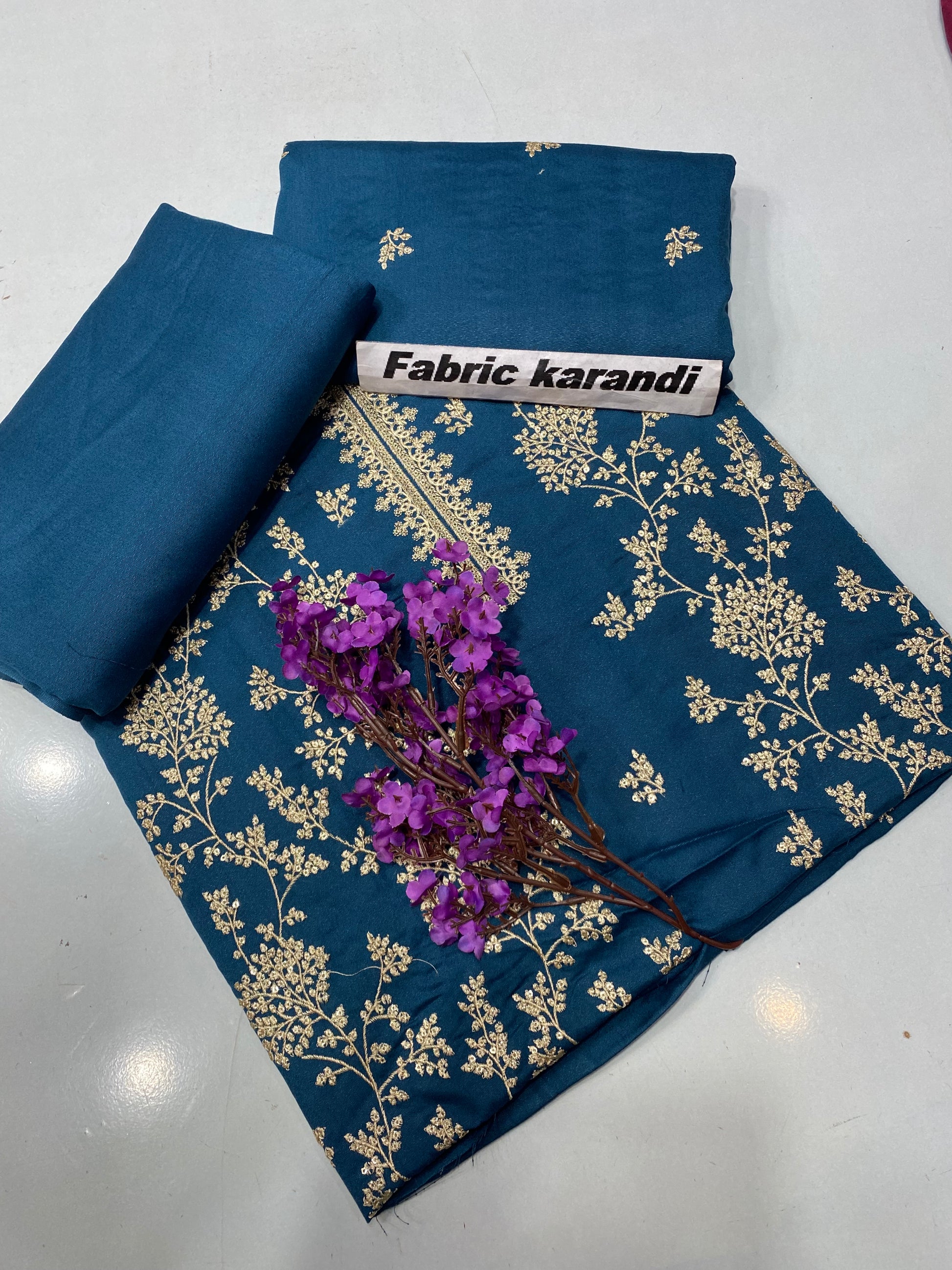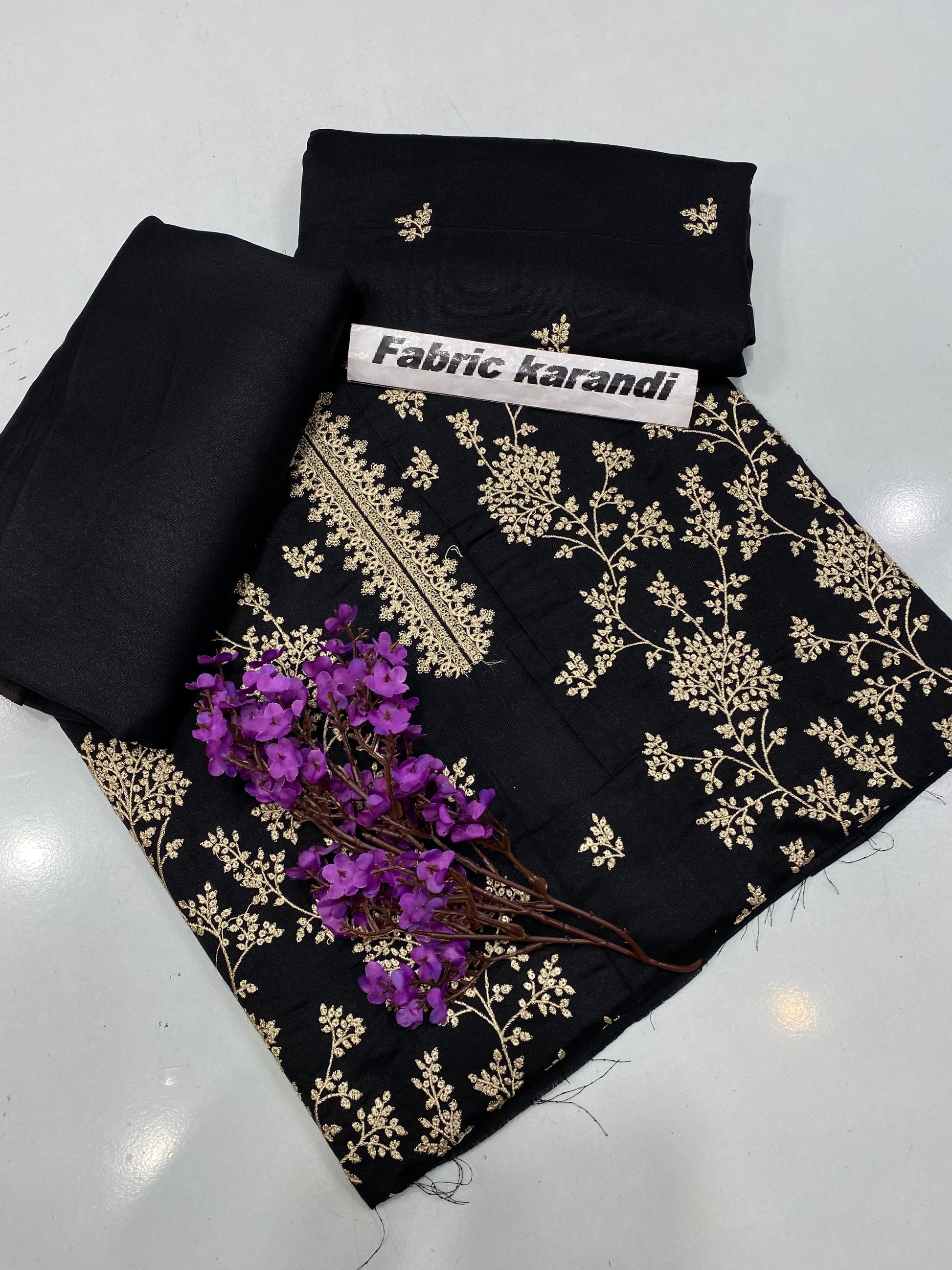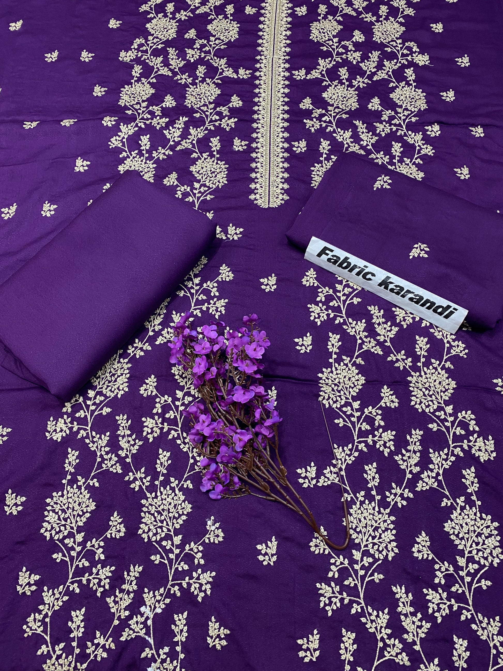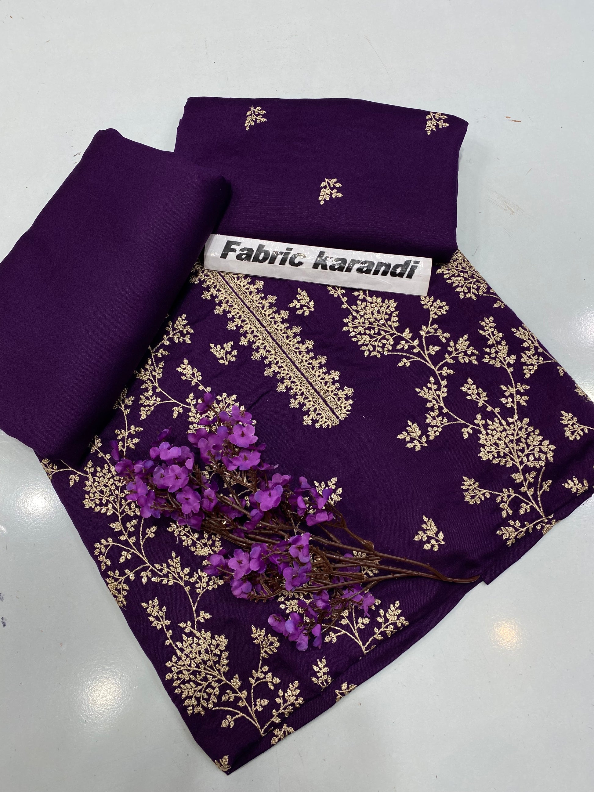 Embroidered Shirt With Plain Karandi Trouser. Stuff: Premium Quality Soft Karandi.