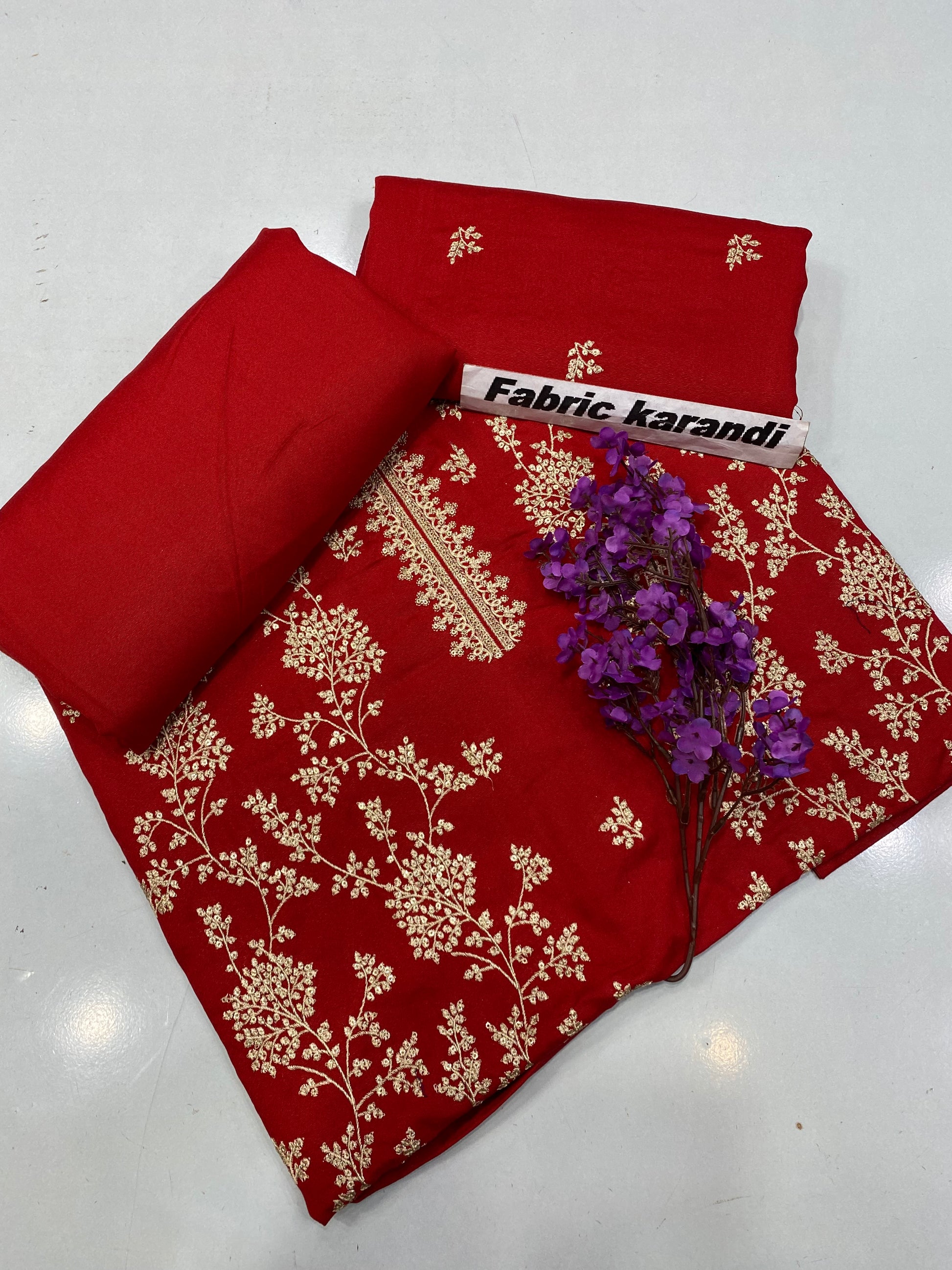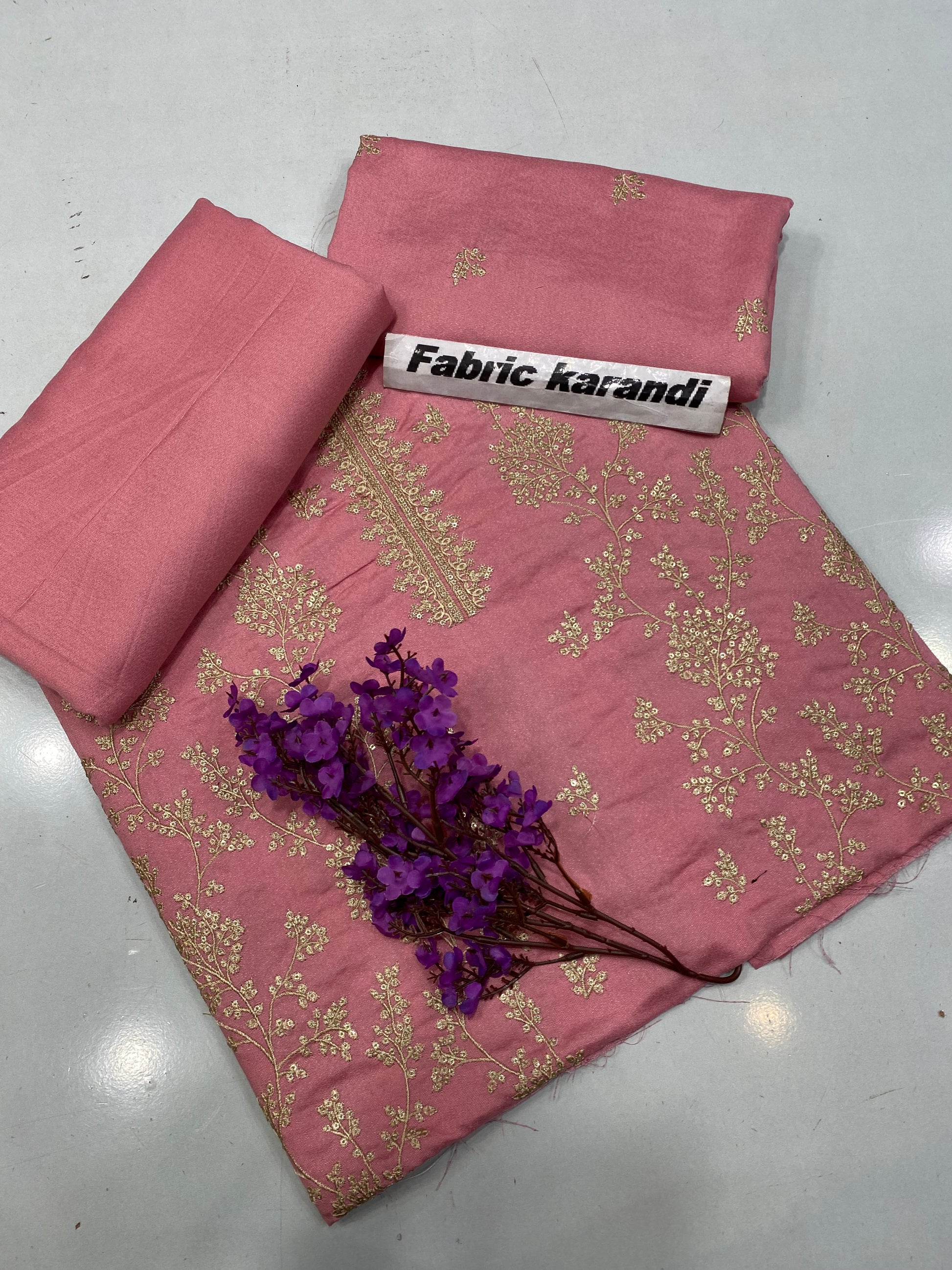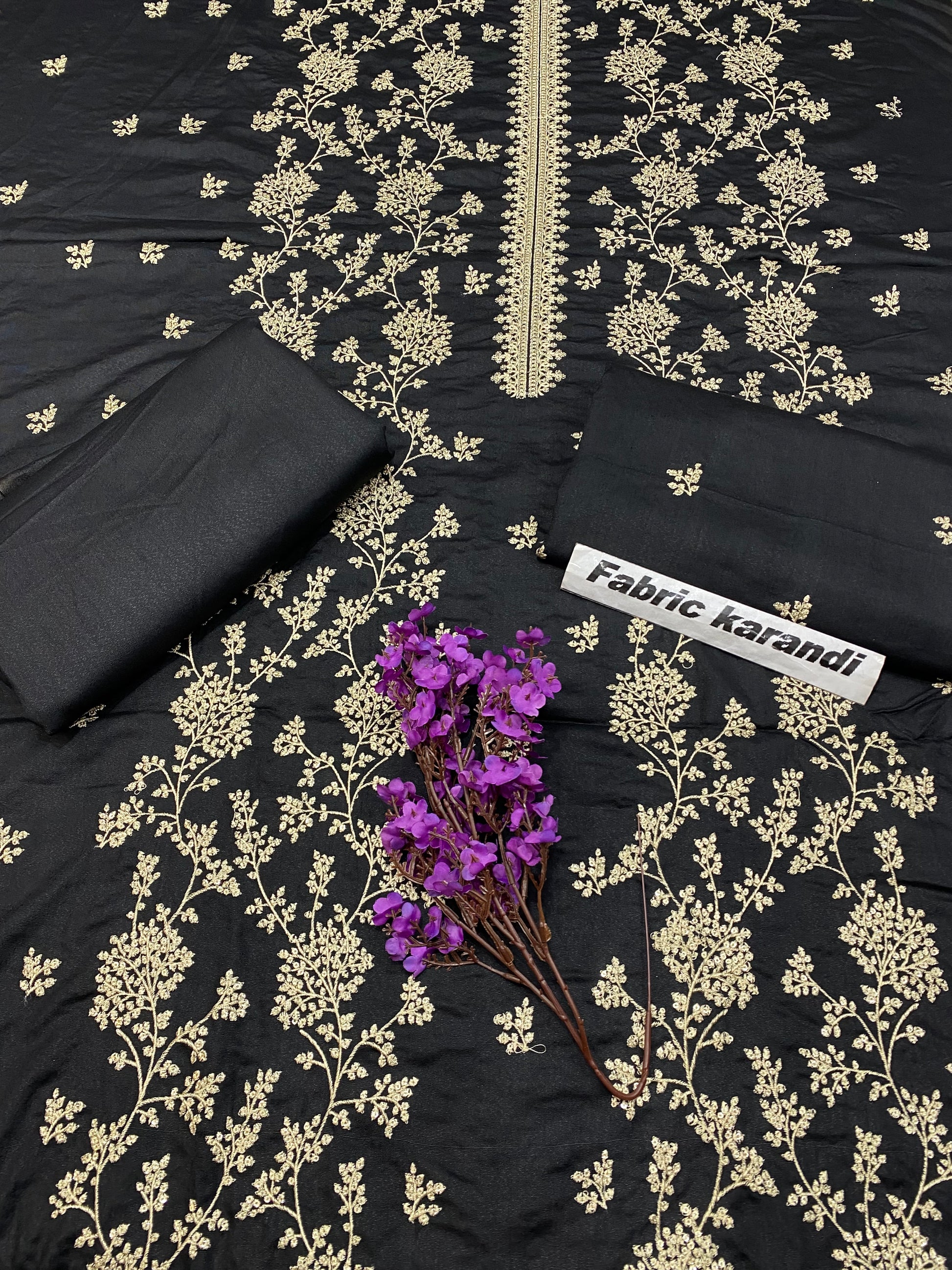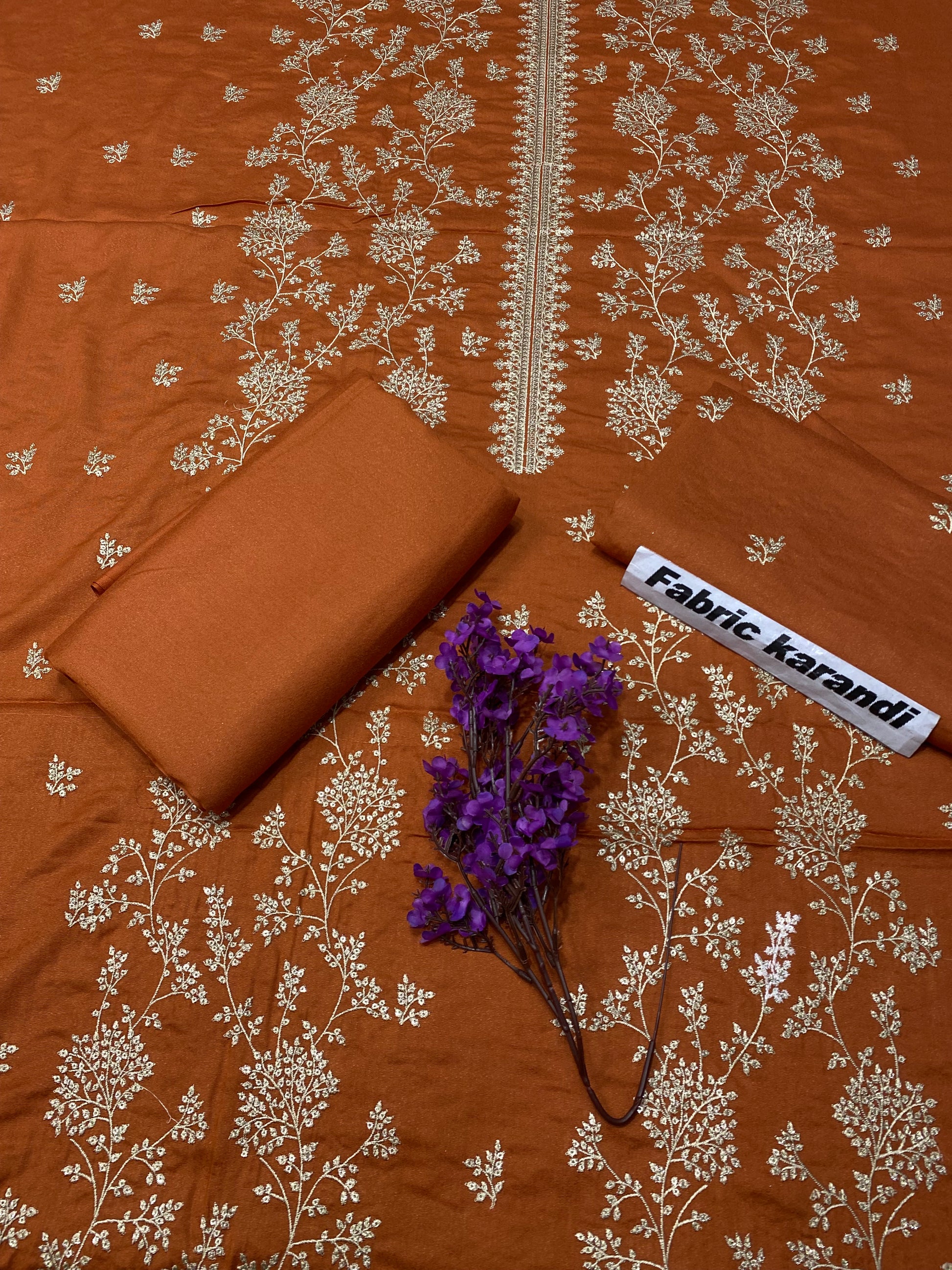 Embroidered Shirt With Plain Karandi Trouser. Stuff: Premium Quality Soft Karandi.