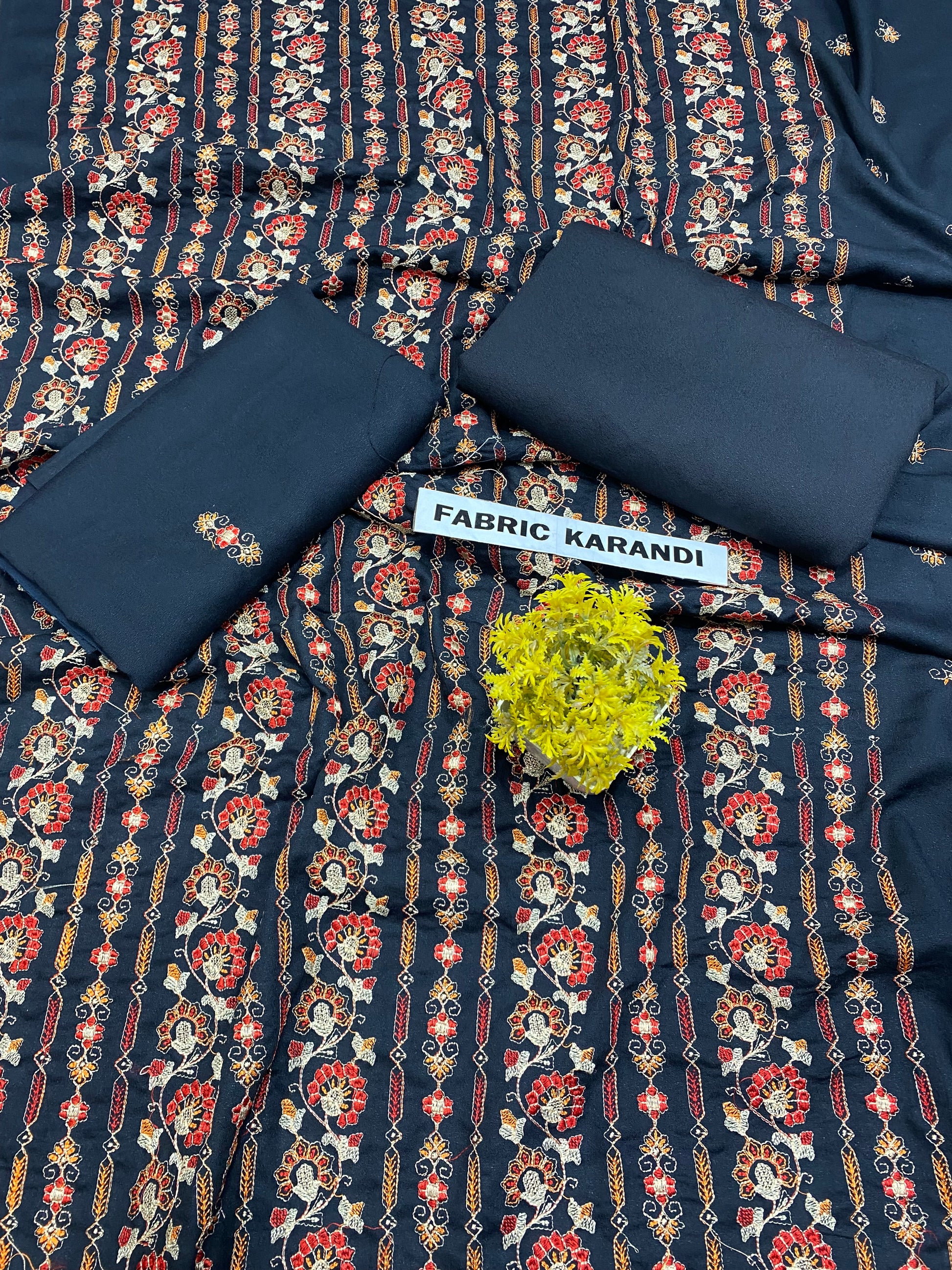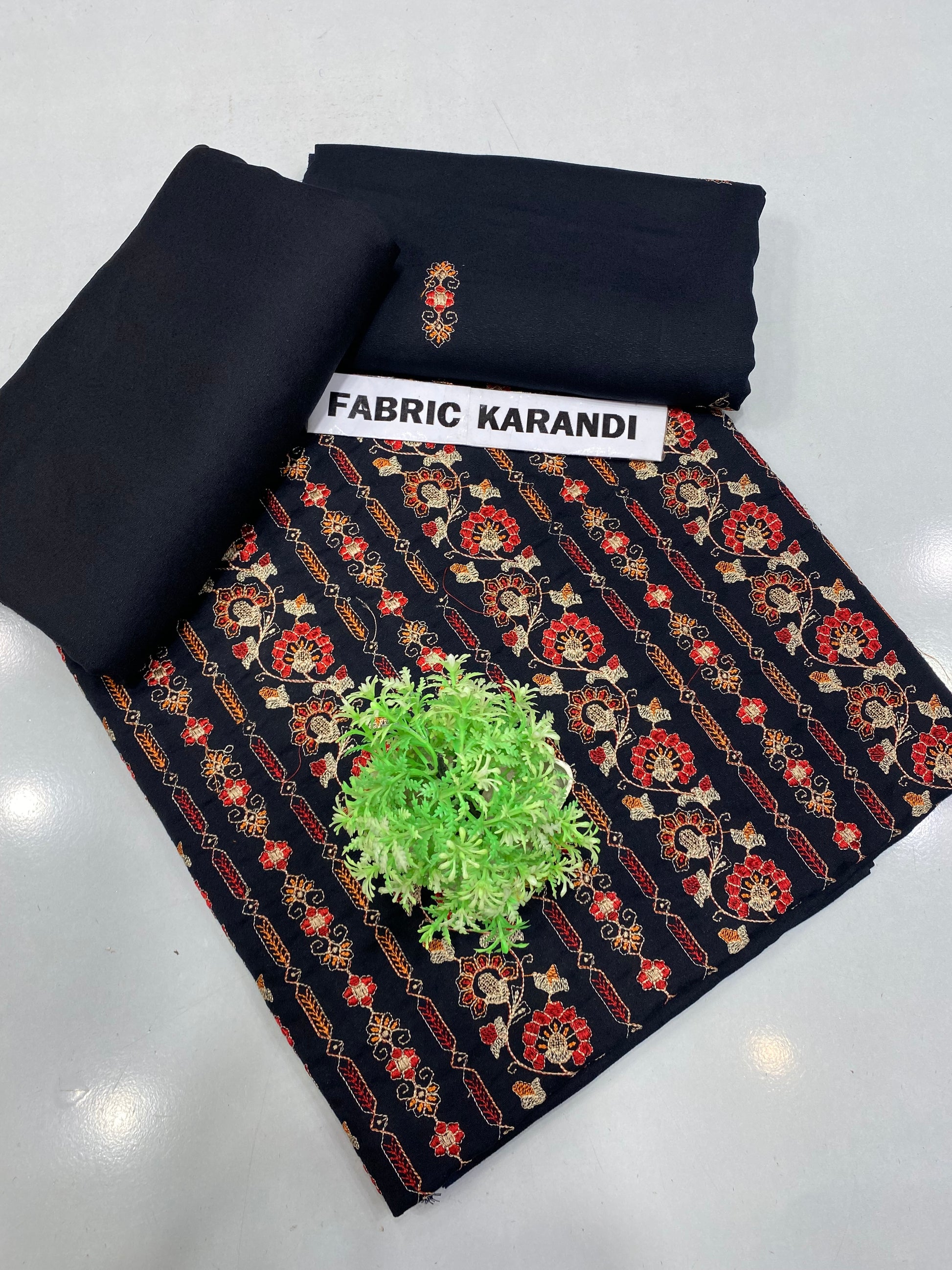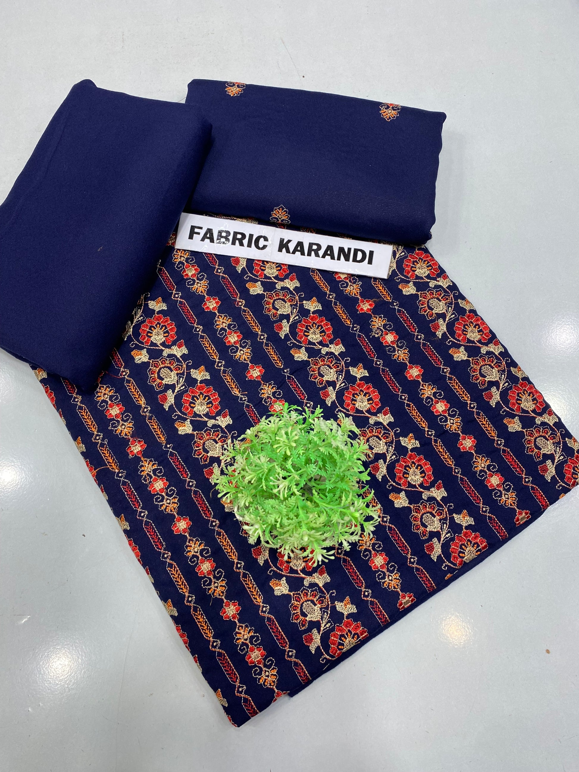 Embroidered Shirt With Plain Karandi Trouser. Stuff: Premium Quality Soft Karandi.