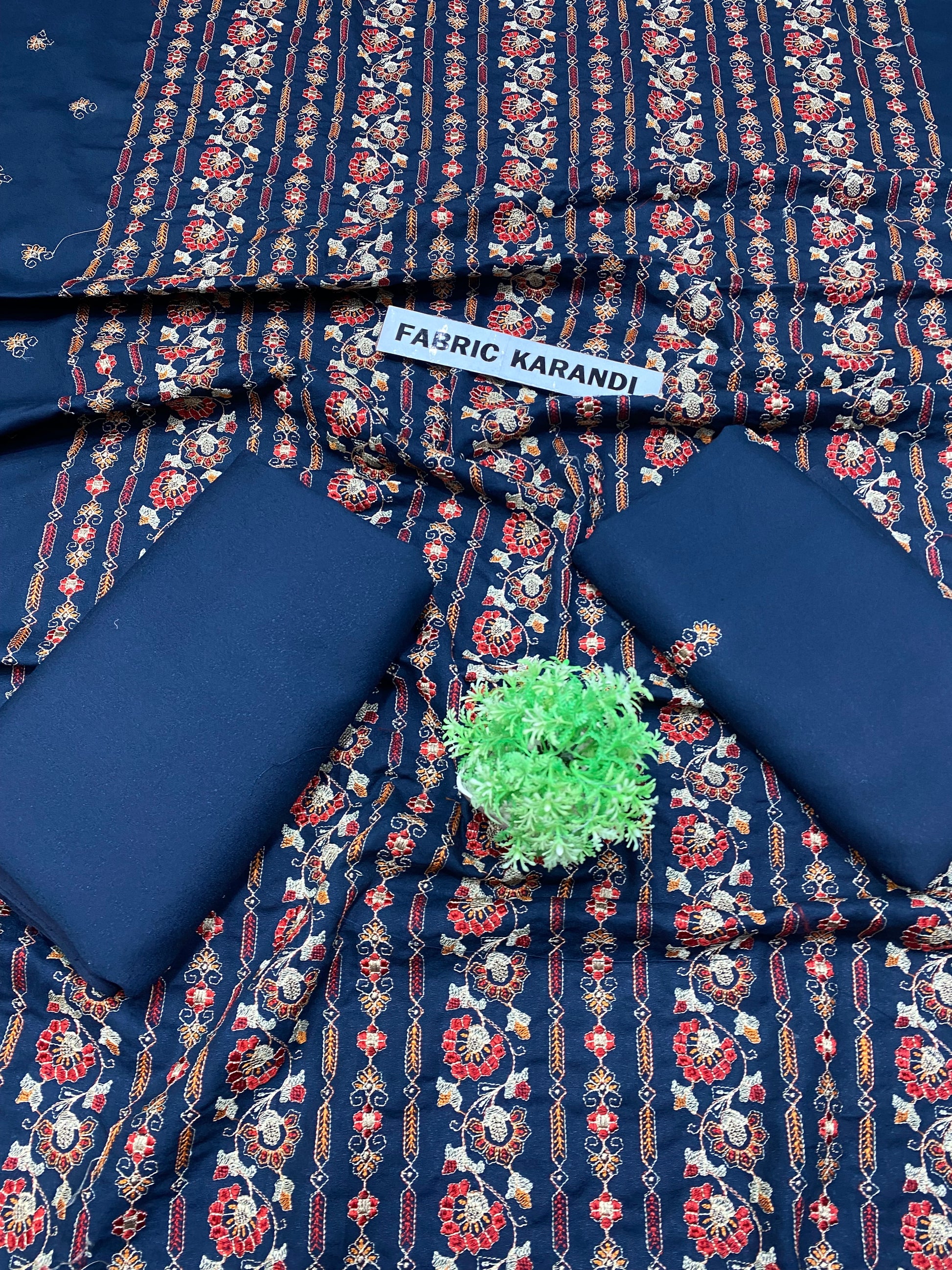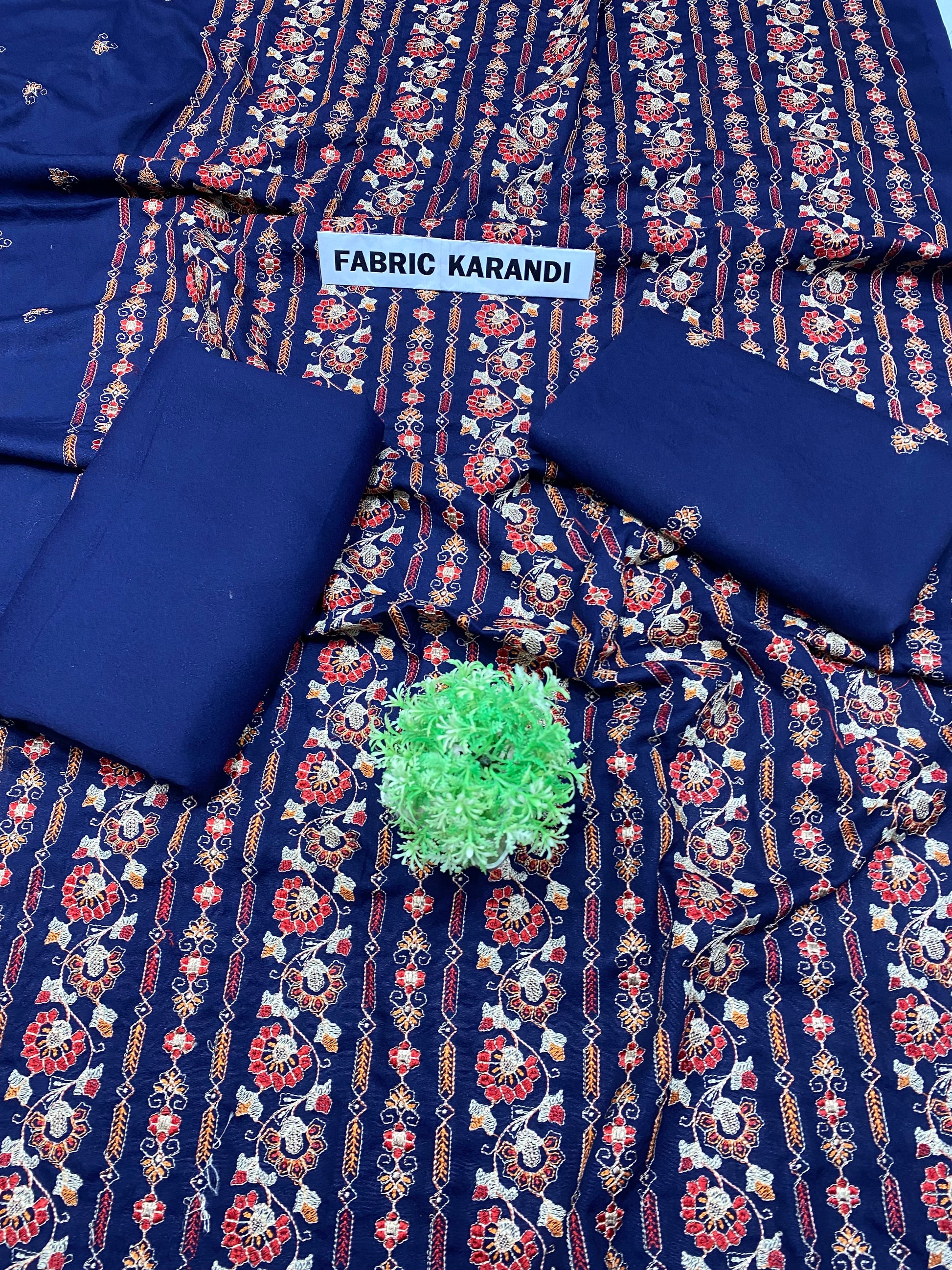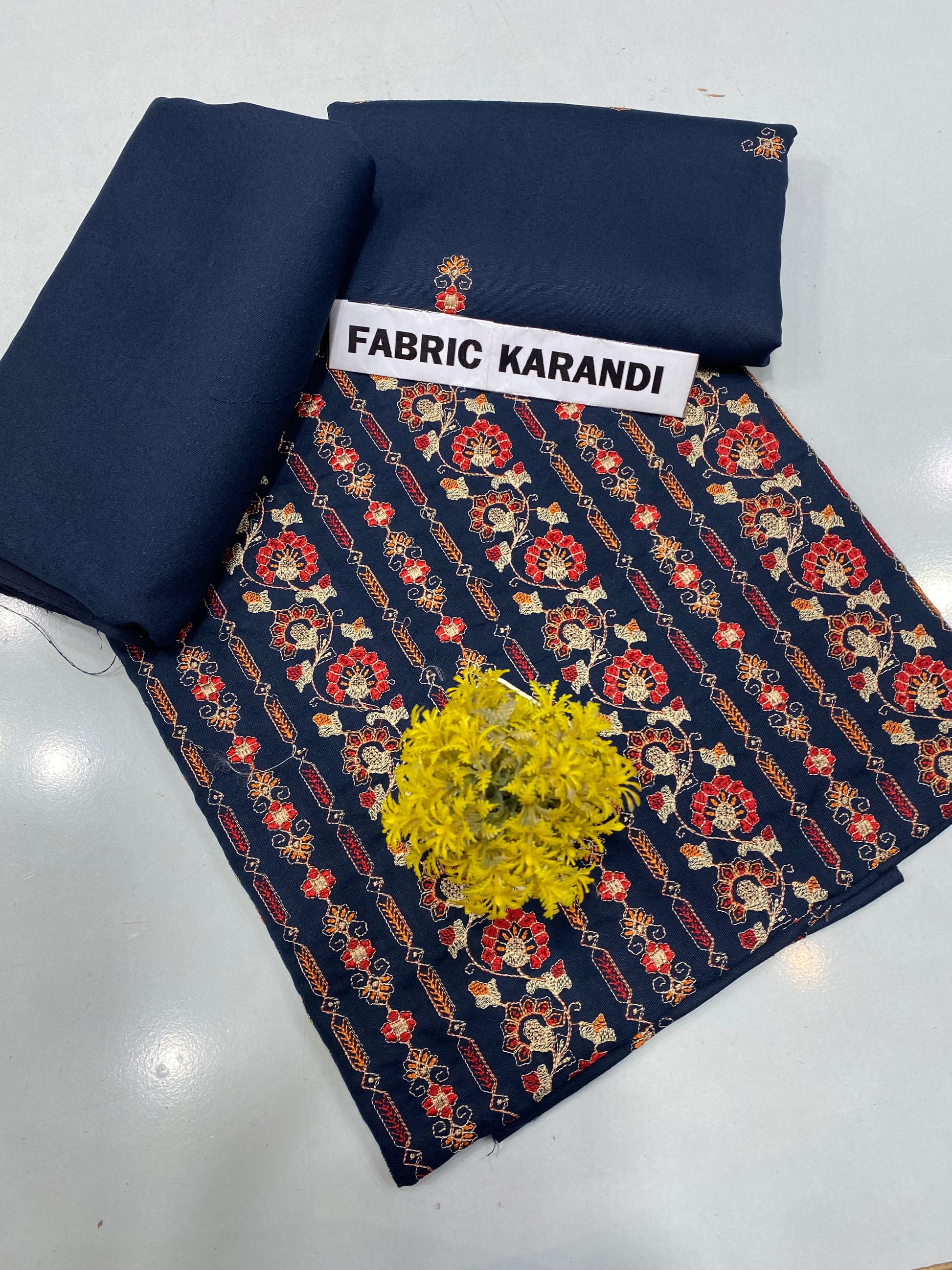 Embroidered Shirt With Plain Karandi Trouser. Stuff: Premium Quality Soft Karandi.