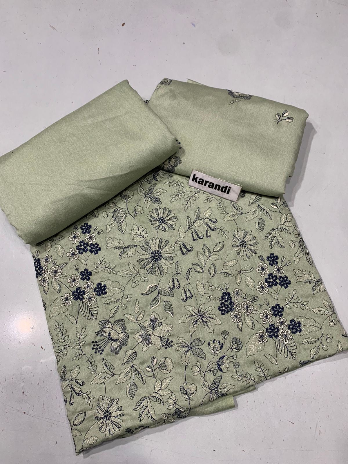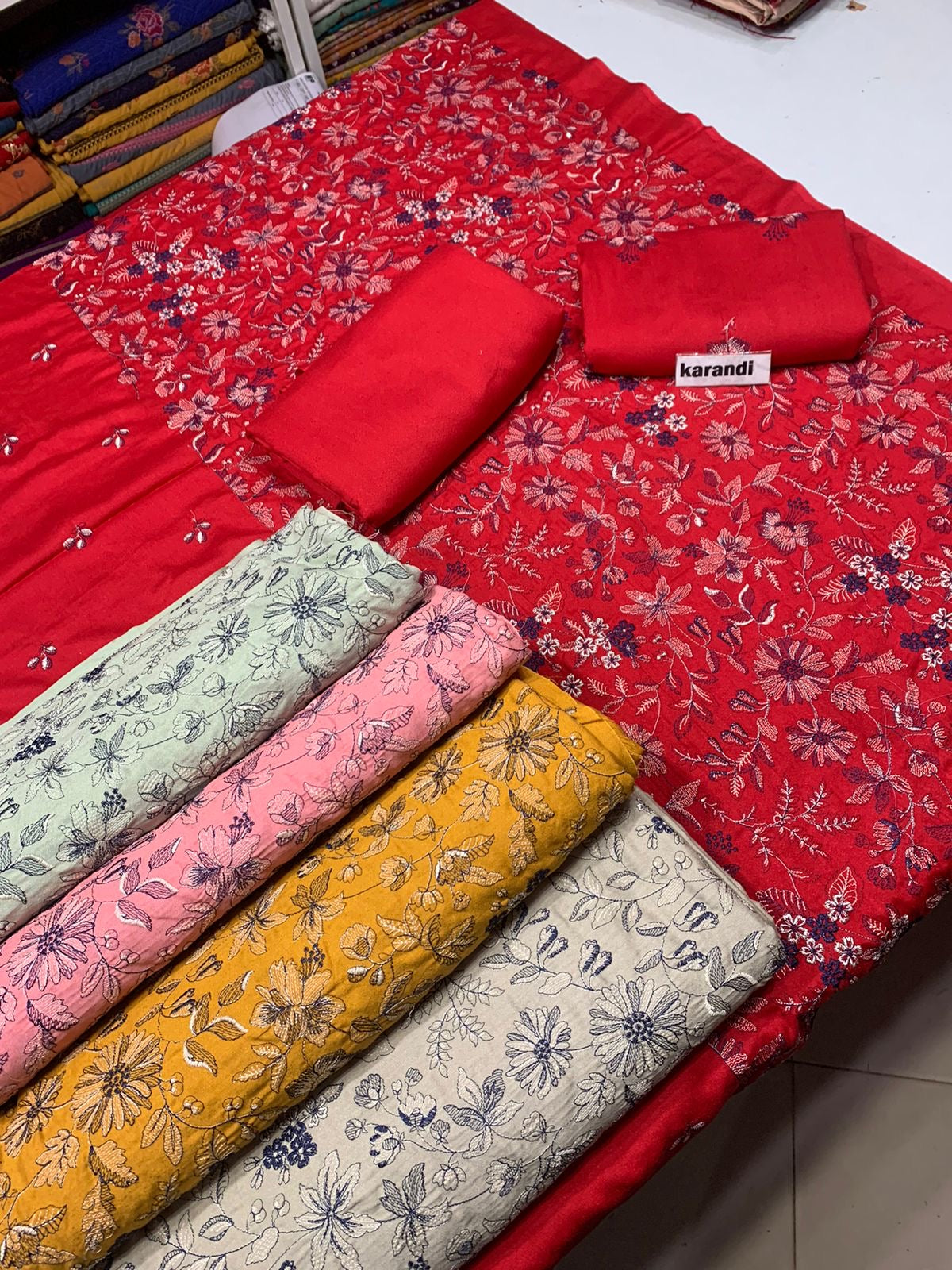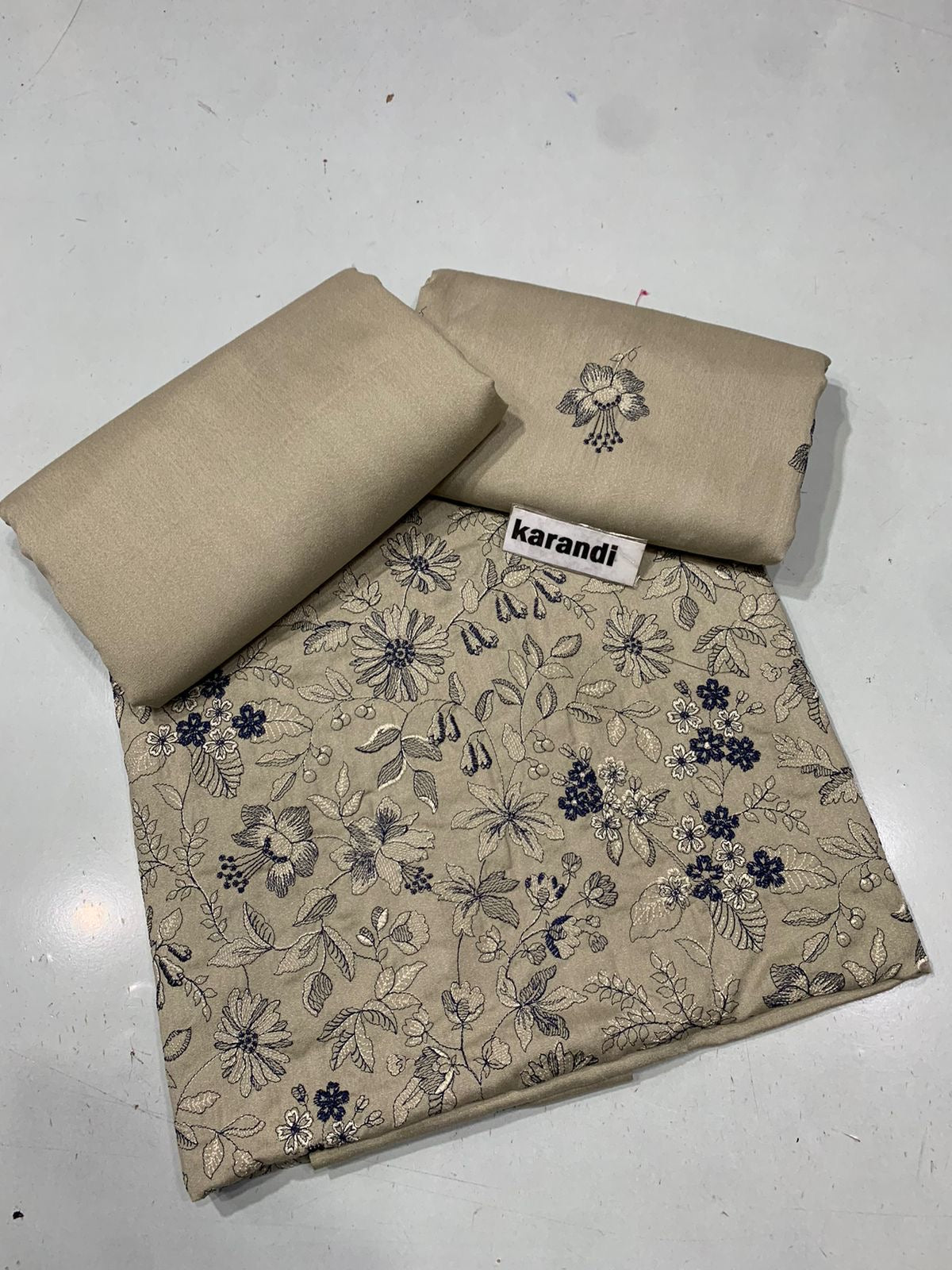 Embroidered Shirt With Plain Karandi Trouser. Stuff: Premium Quality Staple Karandi.