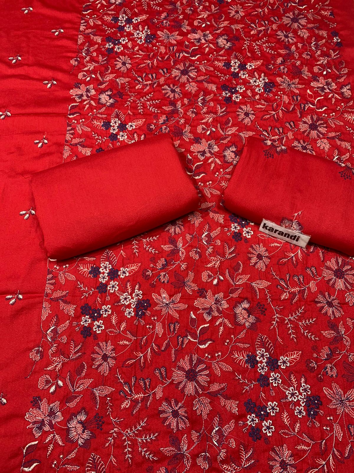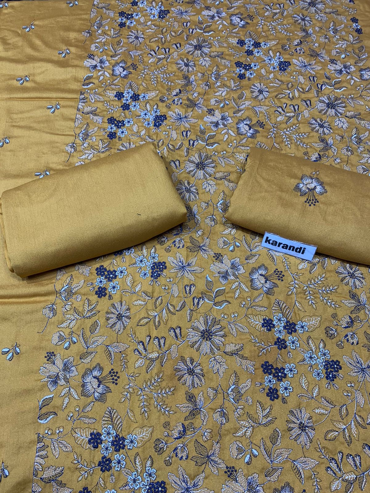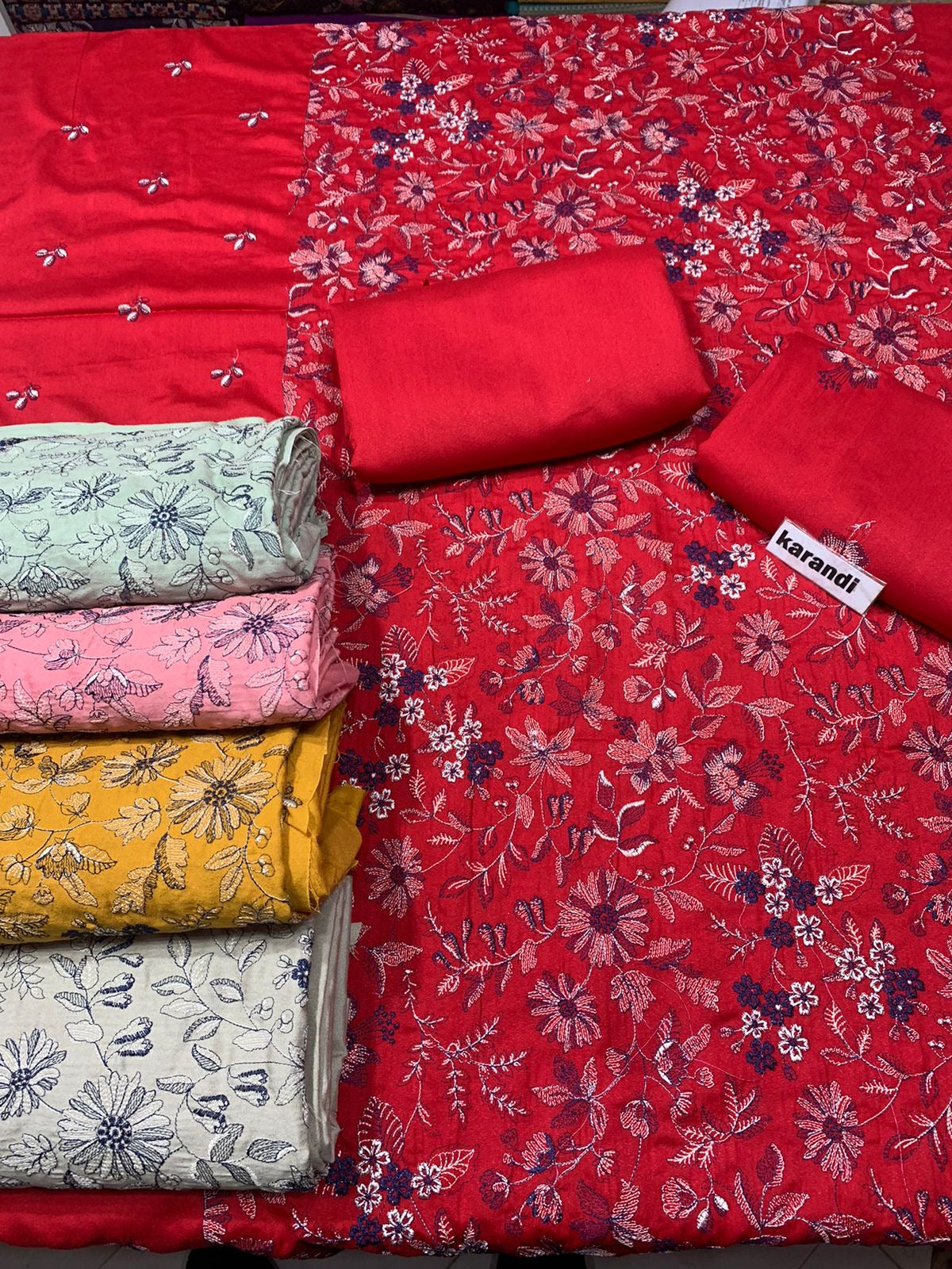 Embroidered Shirt With Plain Karandi Trouser. Stuff: Premium Quality Staple Karandi.
