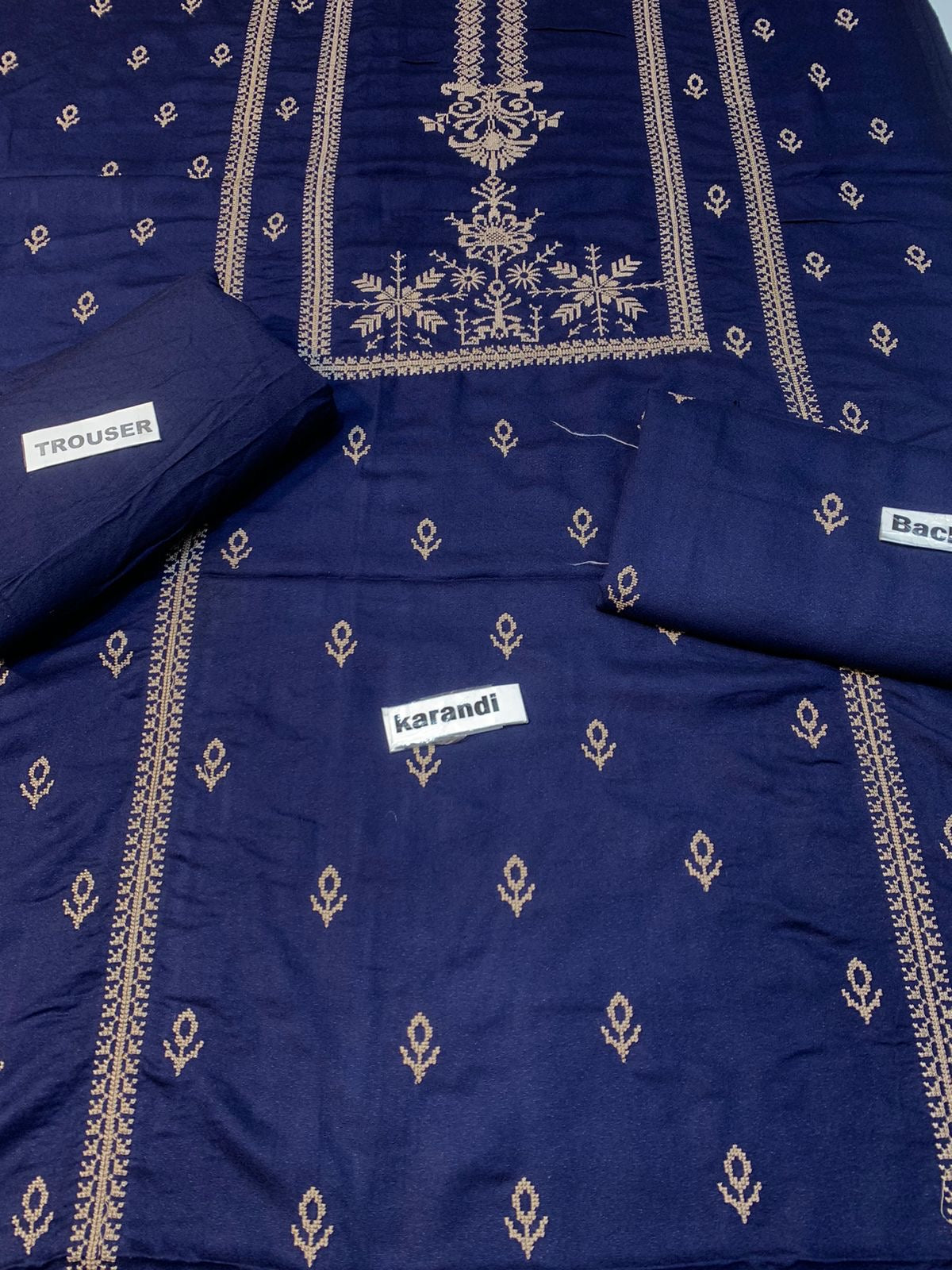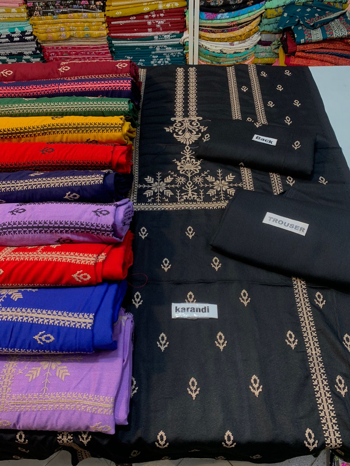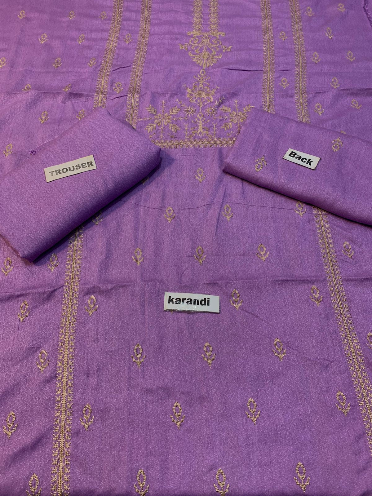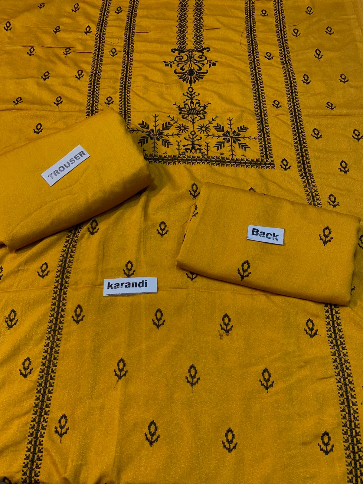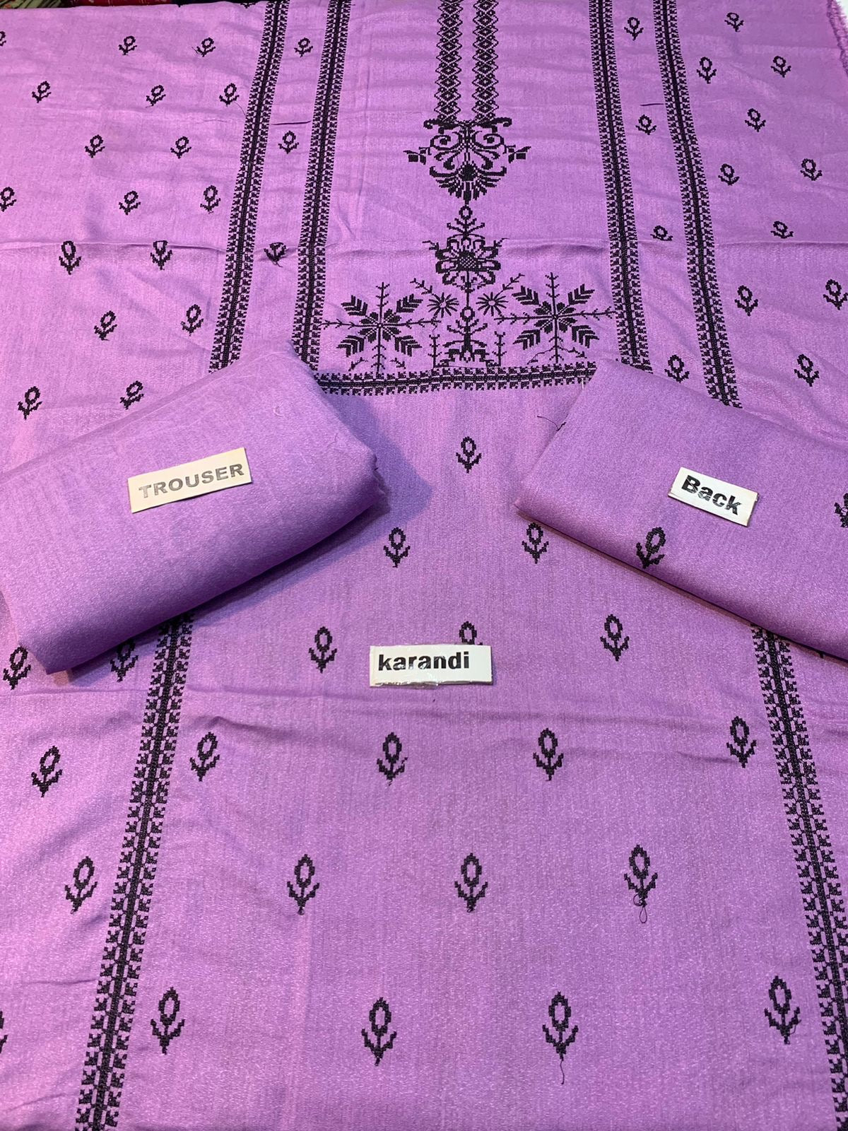 Embroidered Shirt With Plain Karandi Trouser. Stuff: Premium Quality Staple Karandi.