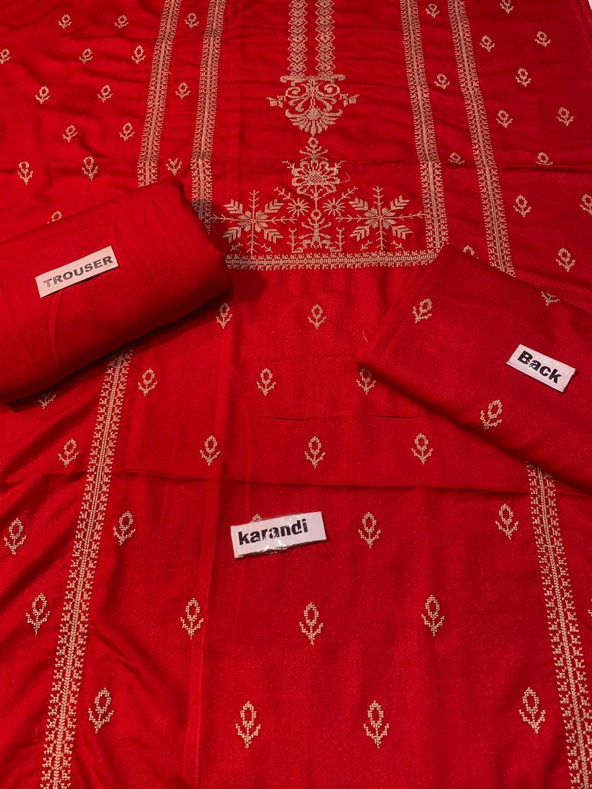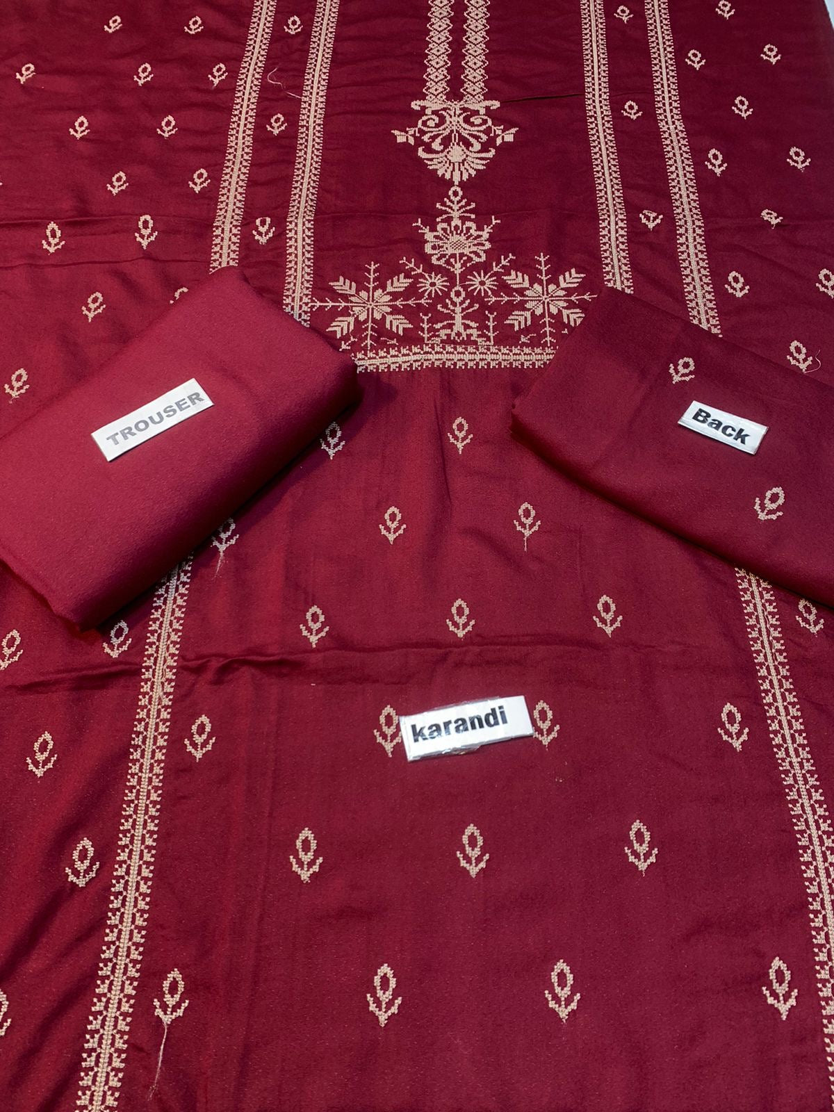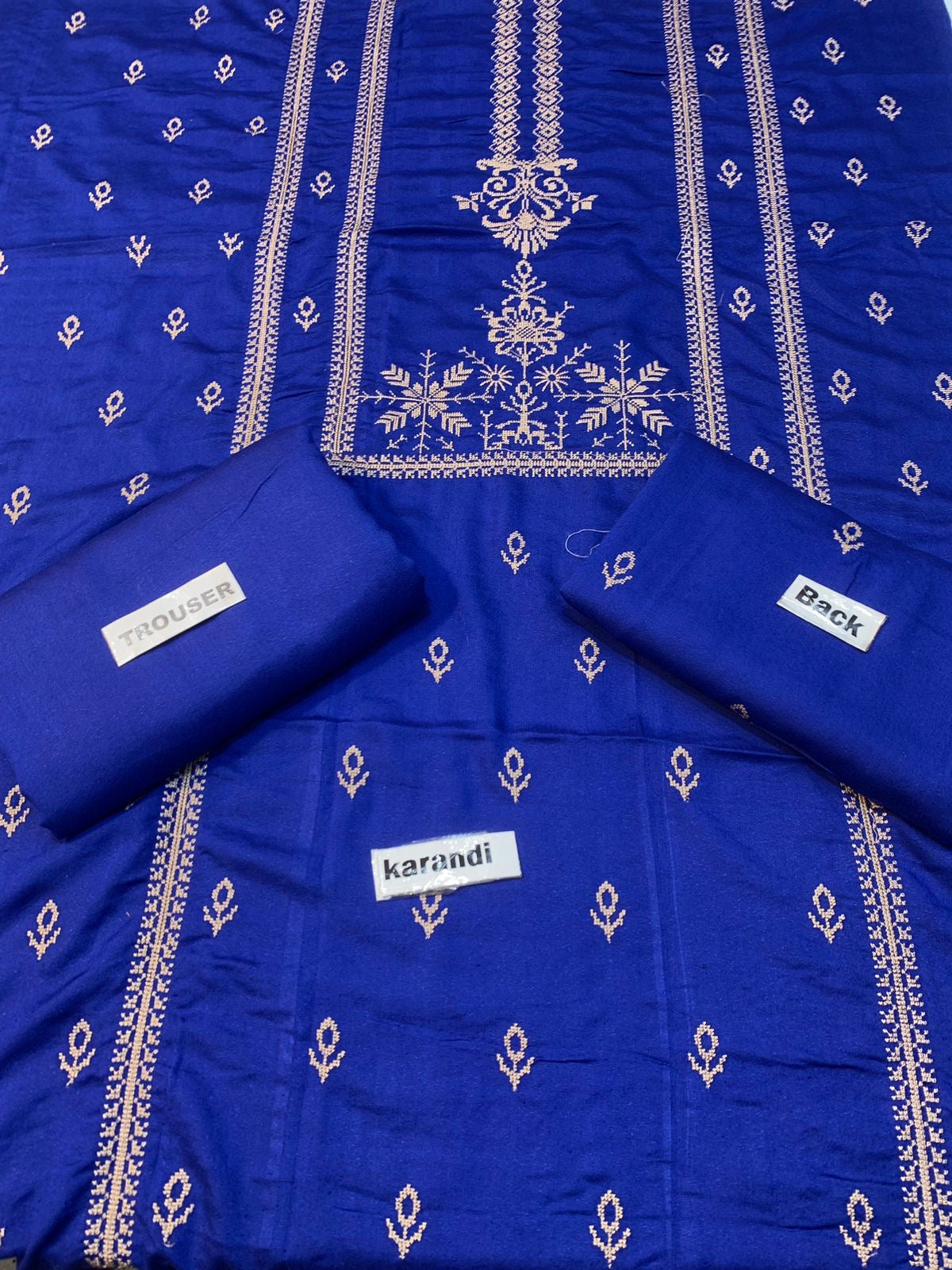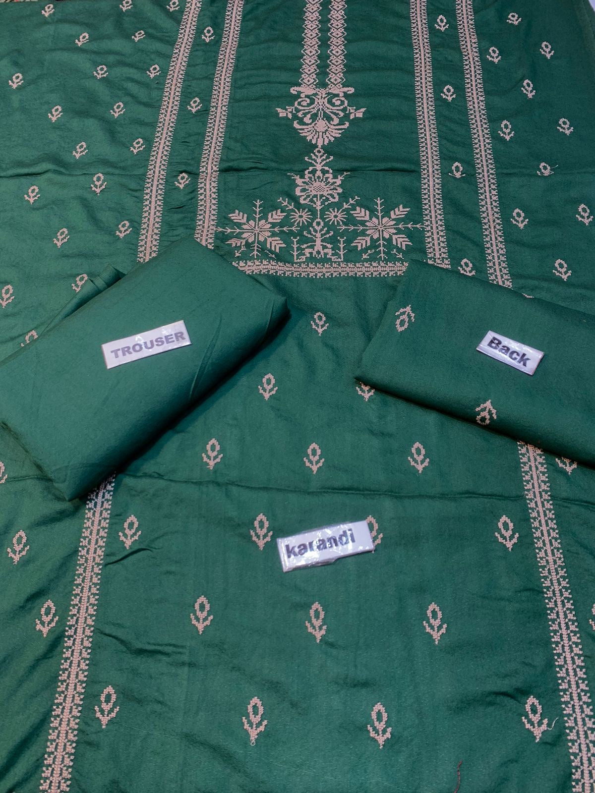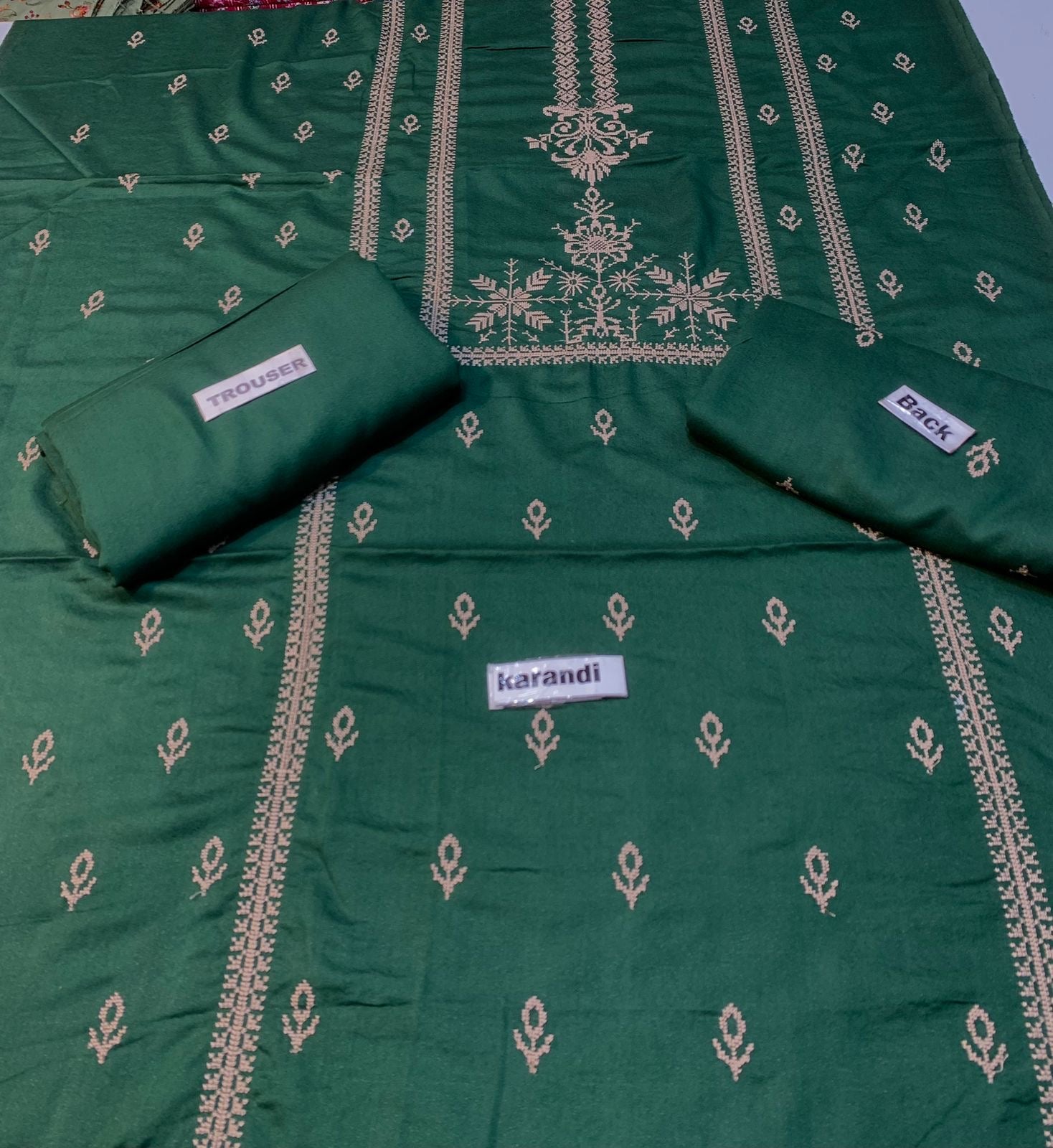Embroidered Shirt With Plain Karandi Trouser. Stuff: Premium Quality Staple Karandi.