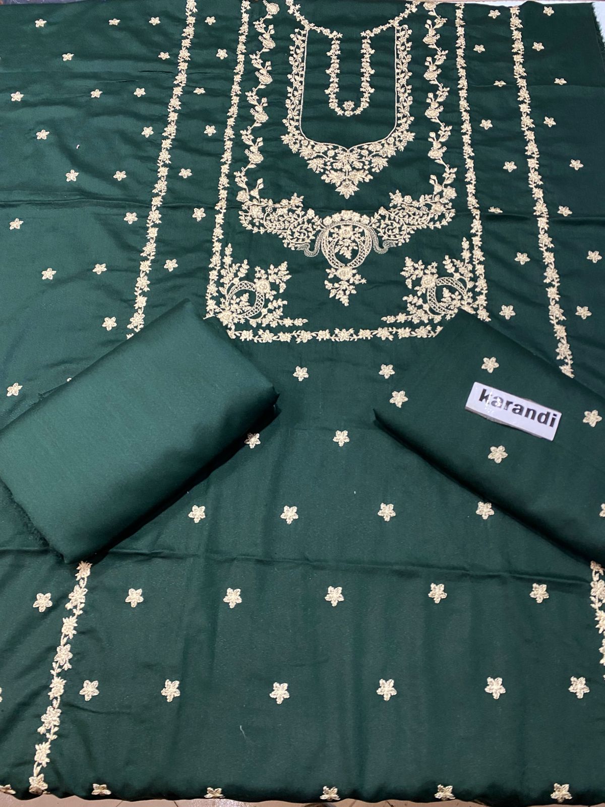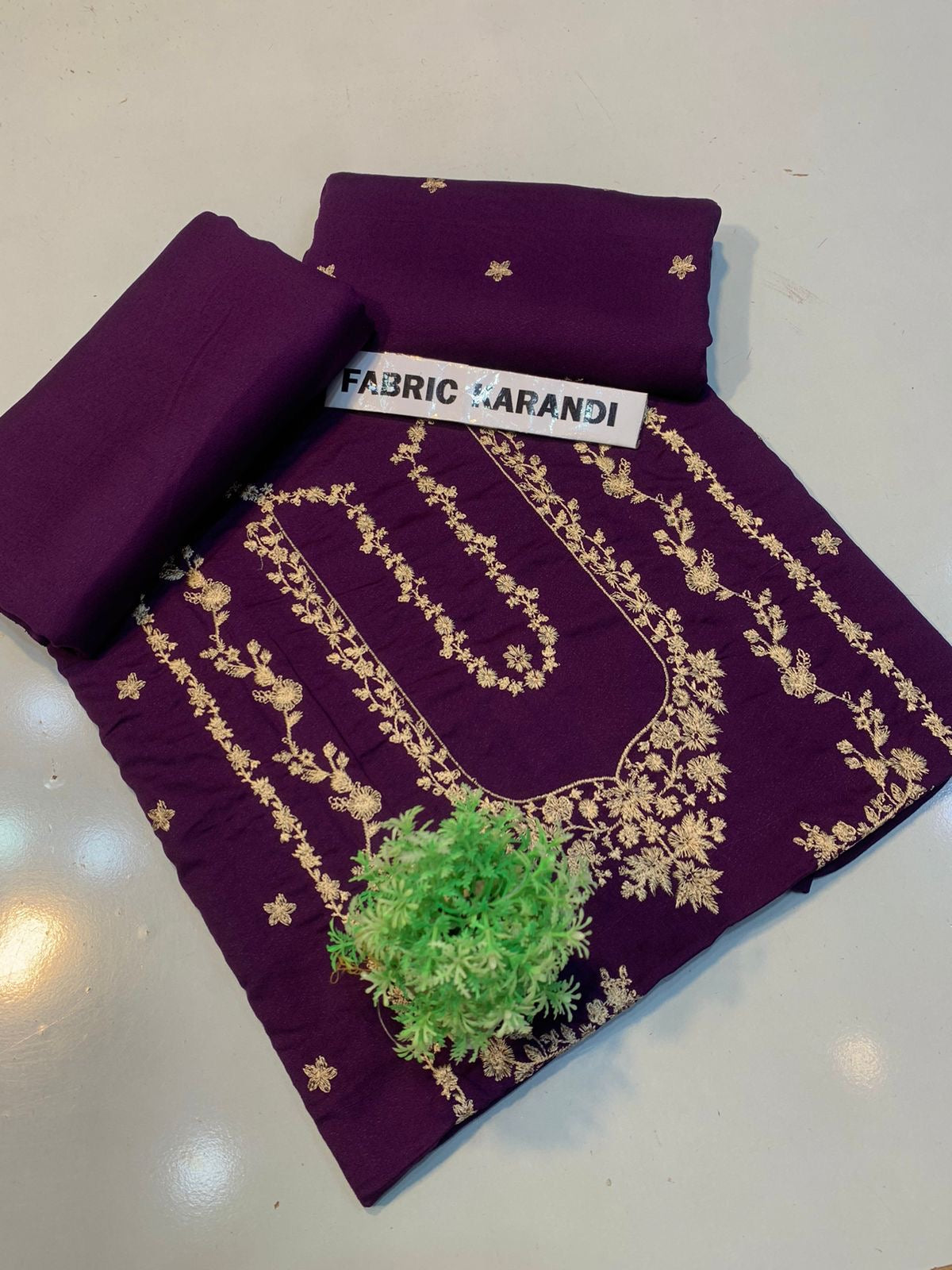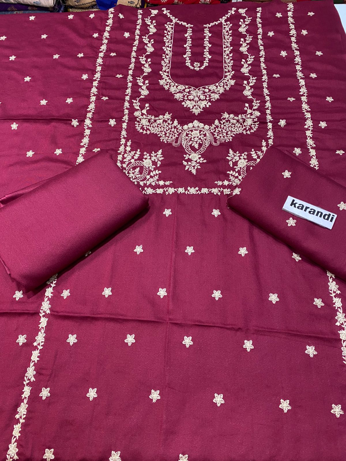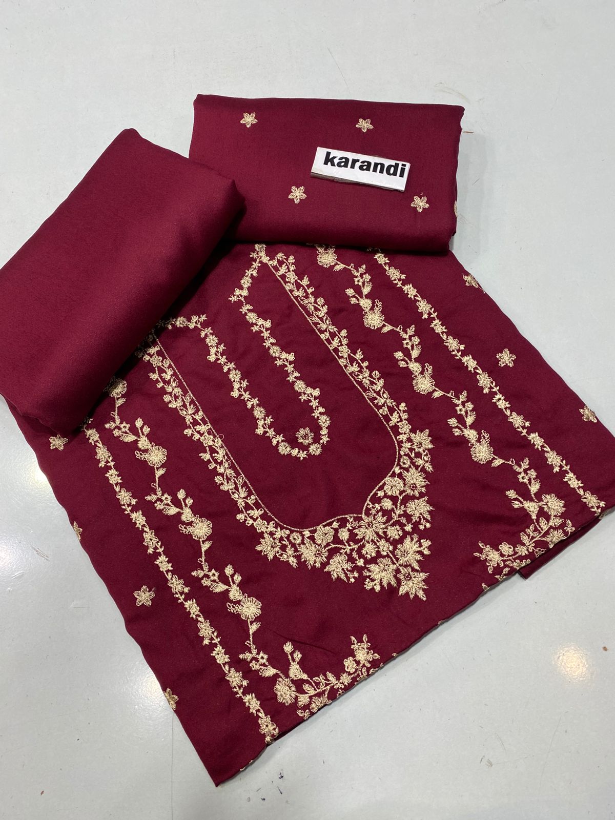 Embroidered Shirt With Plain Karandi Trouser. Stuff: Premium Quality Staple Karandi.