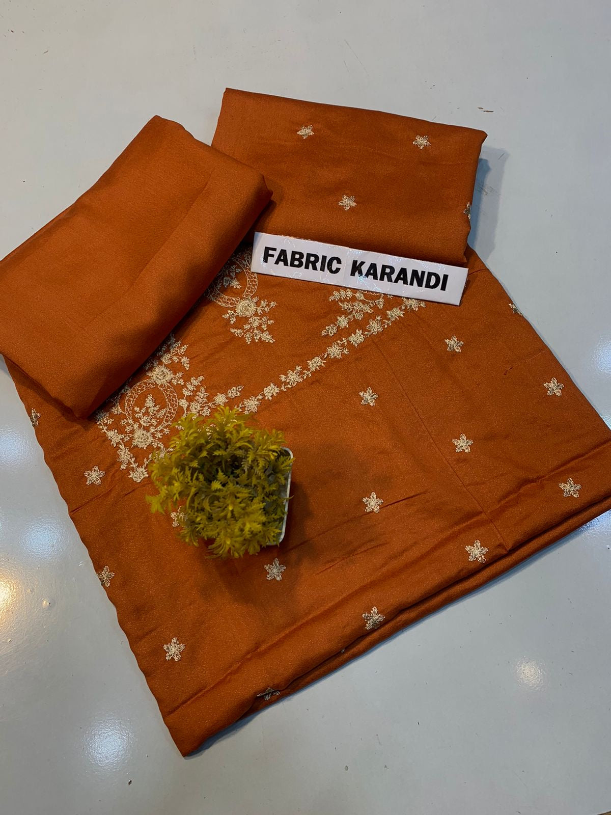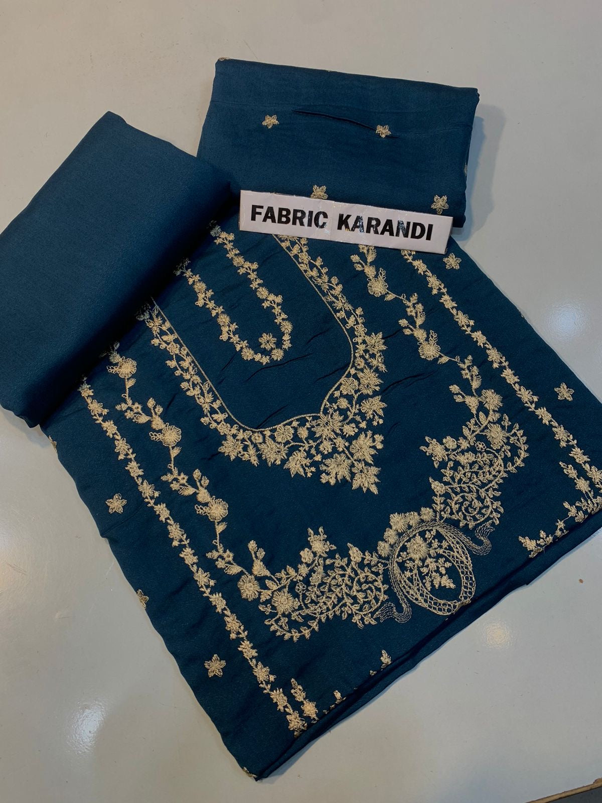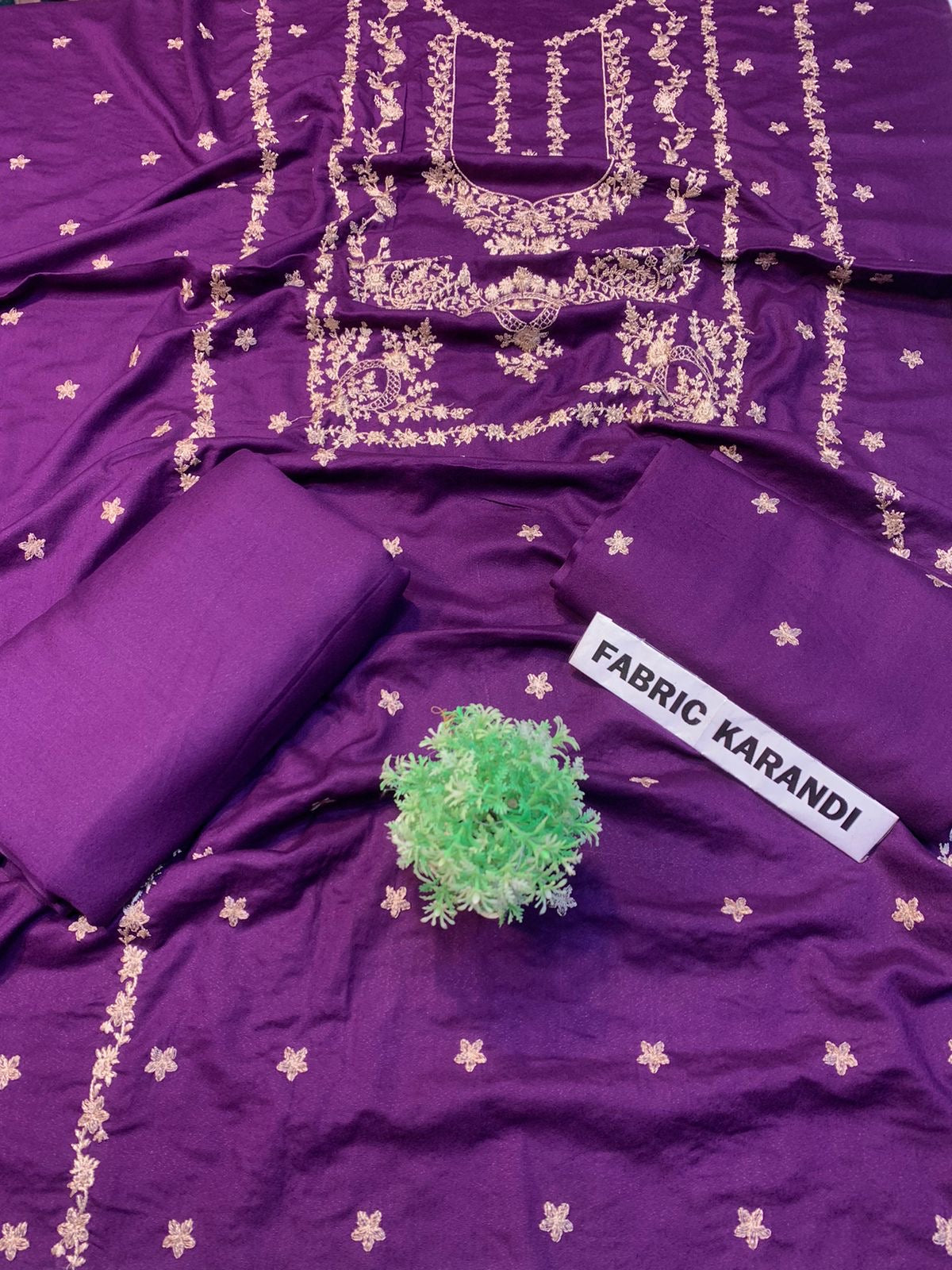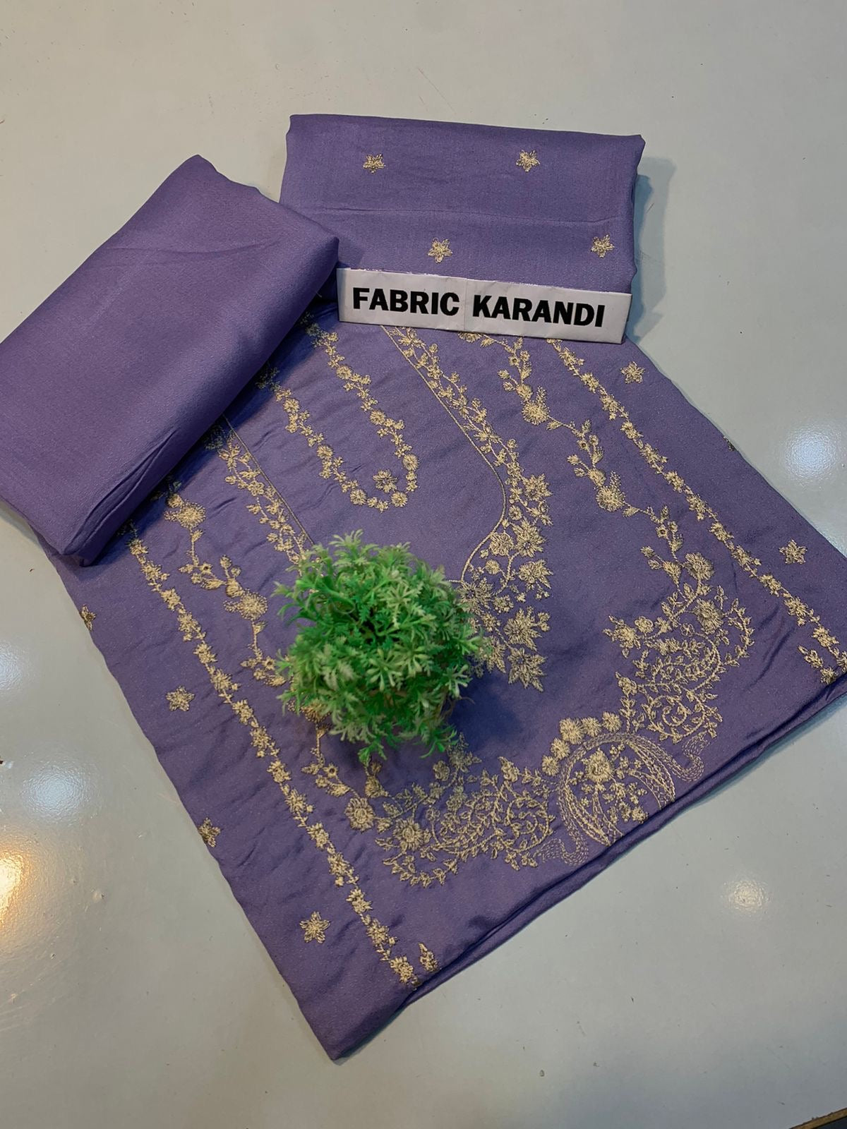 Embroidered Shirt With Plain Karandi Trouser. Stuff: Premium Quality Staple Karandi.