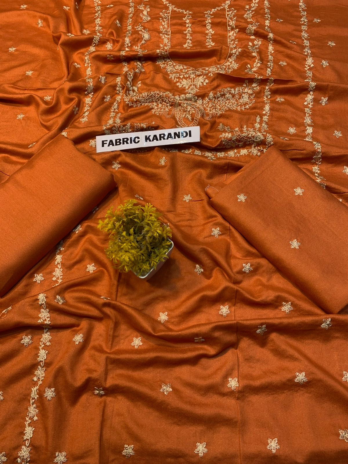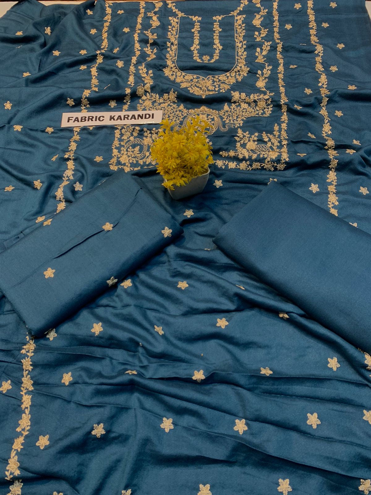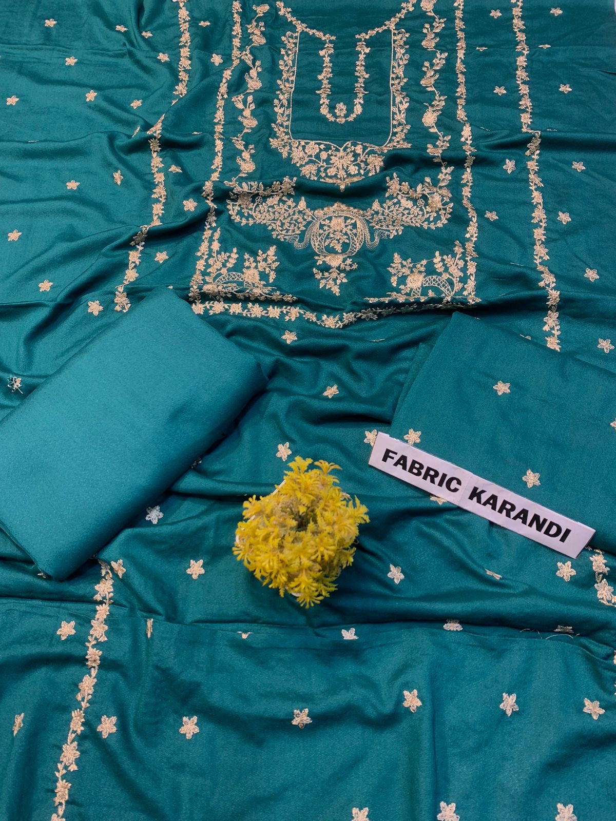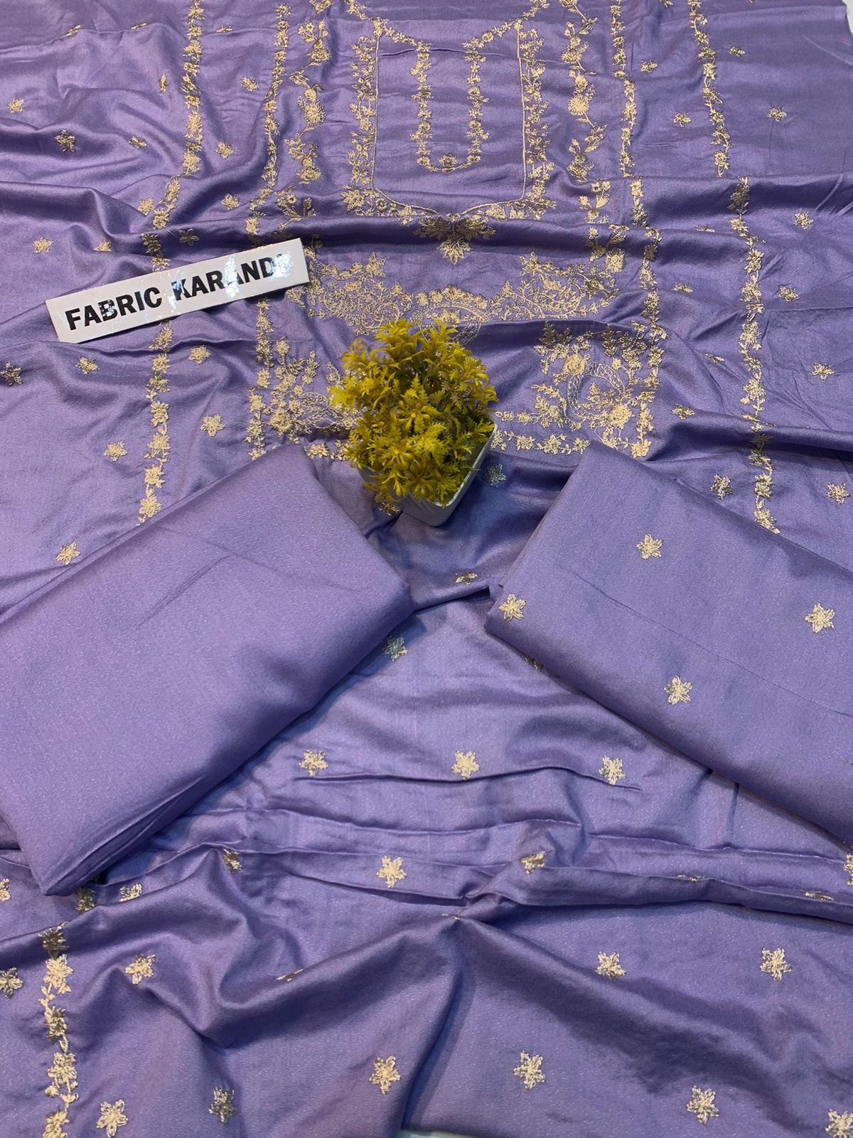 Embroidered Shirt With Plain Karandi Trouser. Stuff: Premium Quality Staple Karandi.