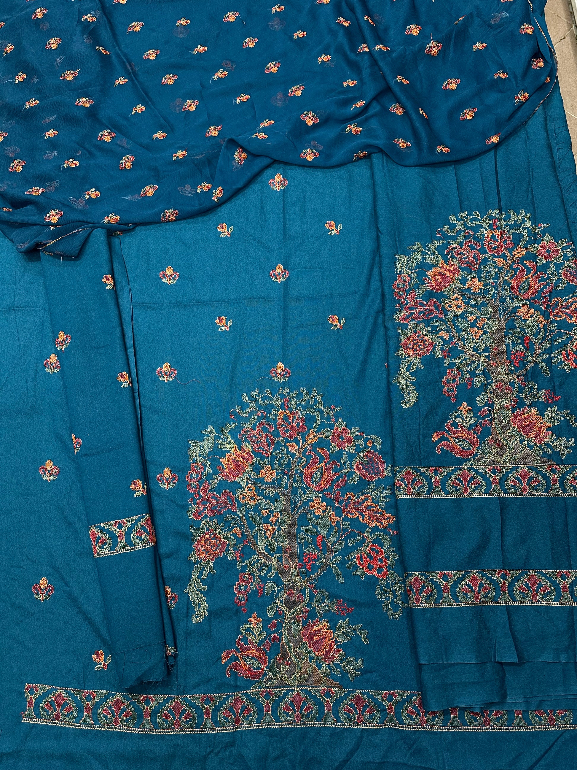 Bareeze- Karandi 3 Pcs All Over Embroidered Unstitched Suit With Chiffon Dupatta