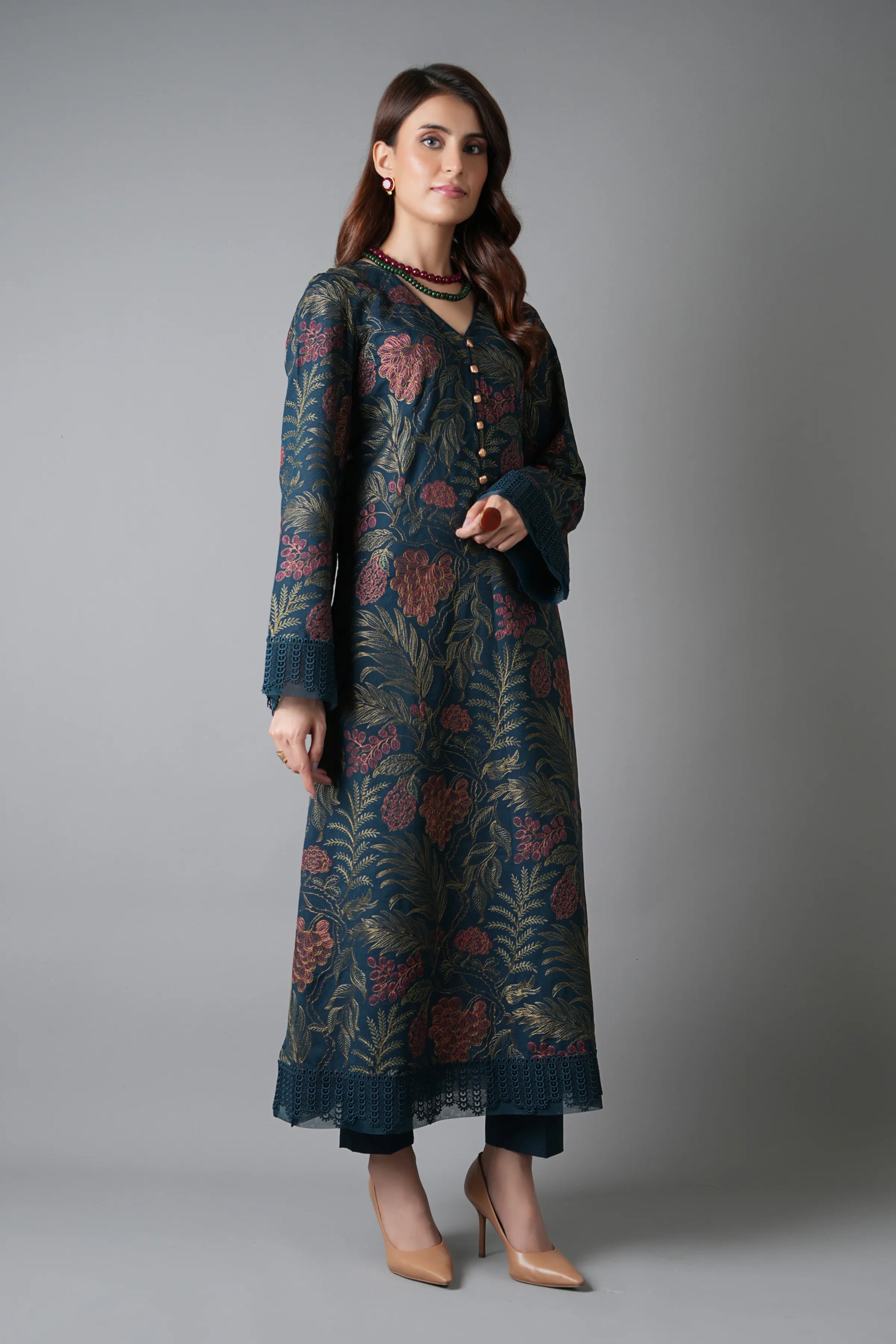 Bareeze- Karandi 3 Pcs All Over Embroidered Unstitched Suit With Chiffon Dupatta