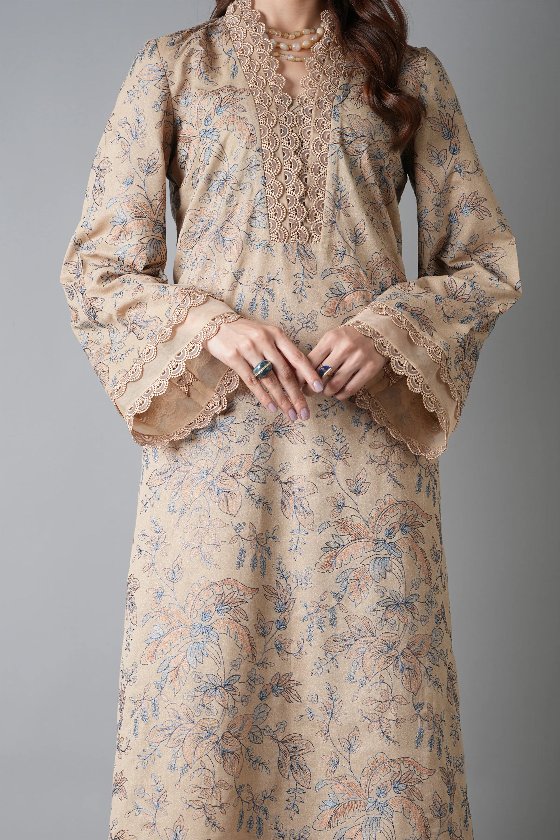Bareeze- Karandi 3 Pcs All Over Embroidered Unstitched Suit With Chiffon Dupatta