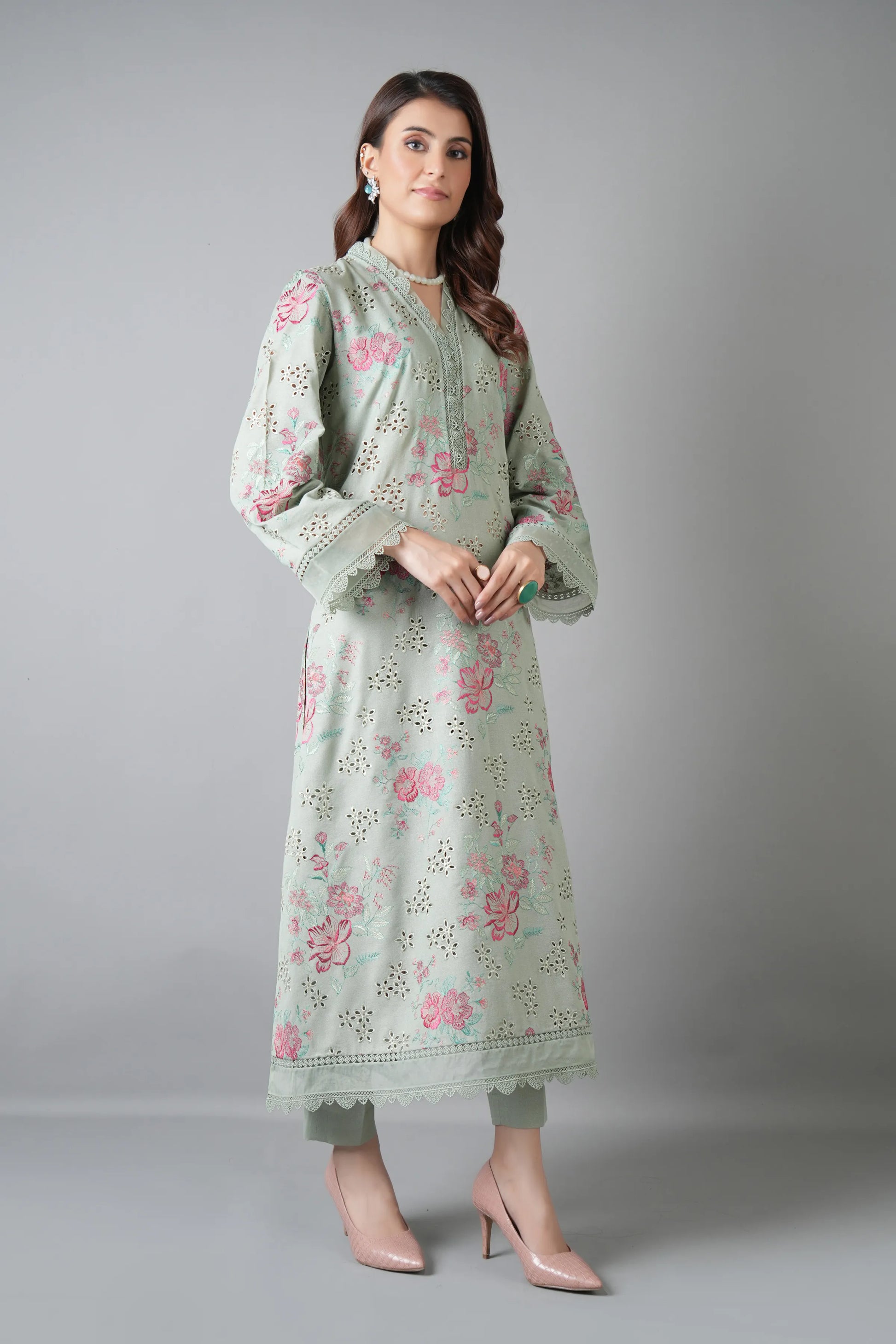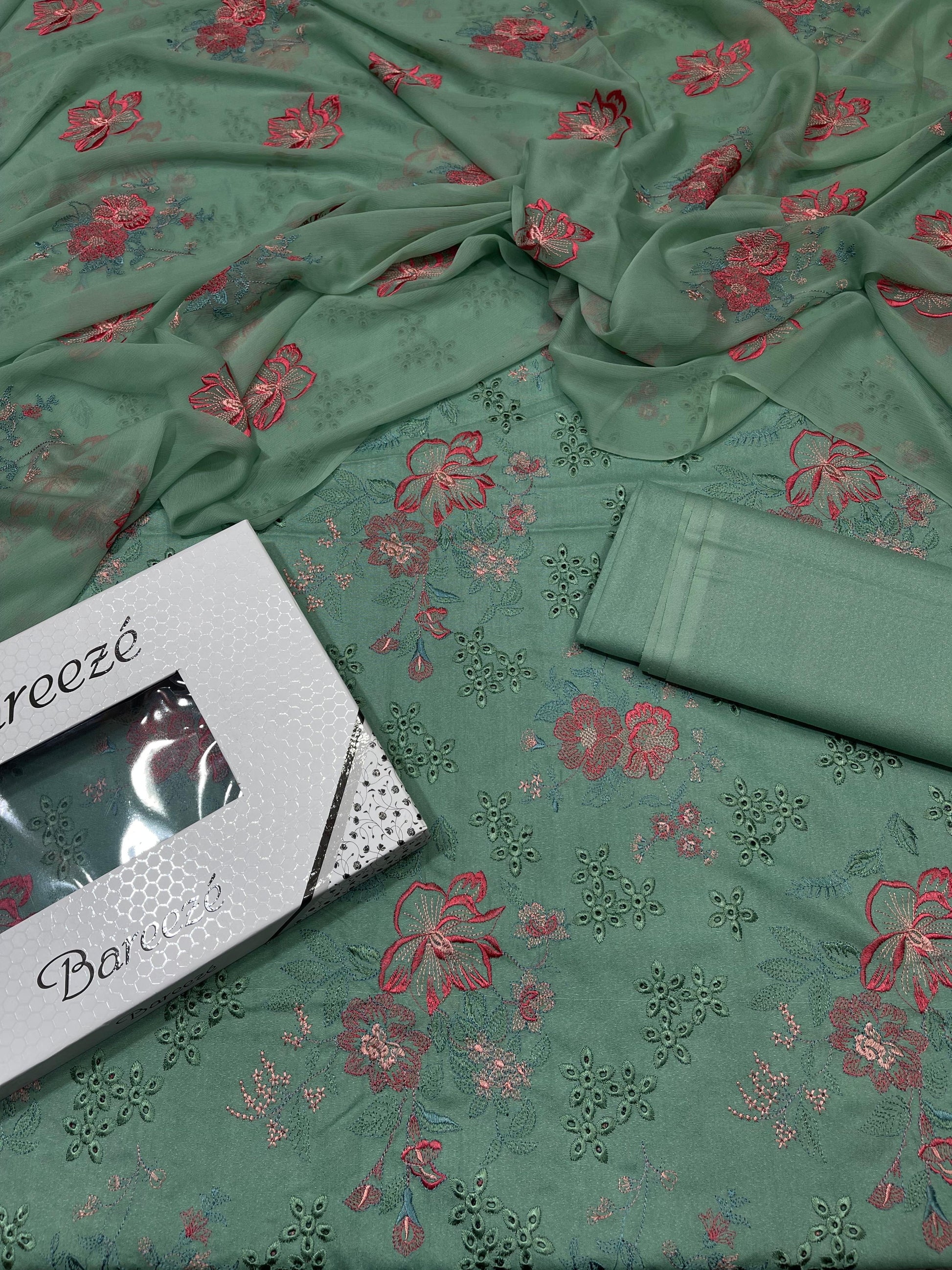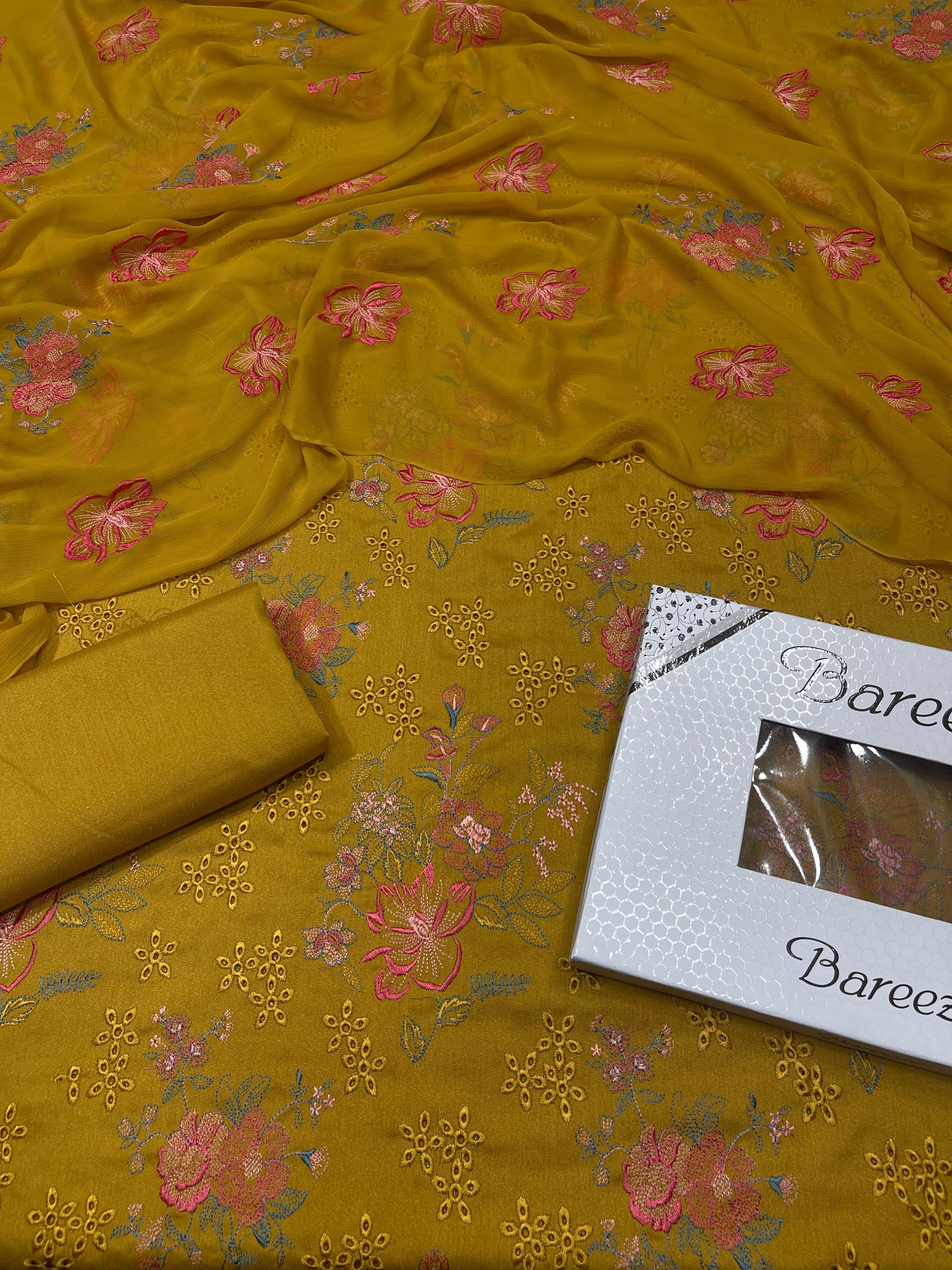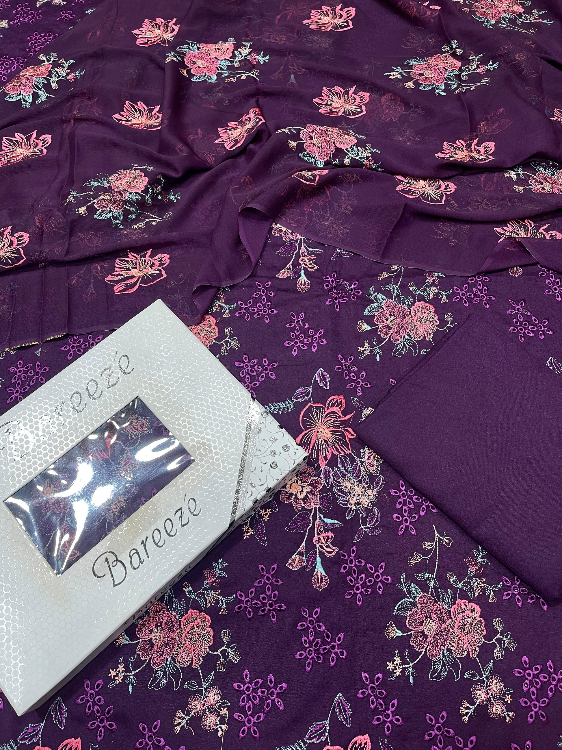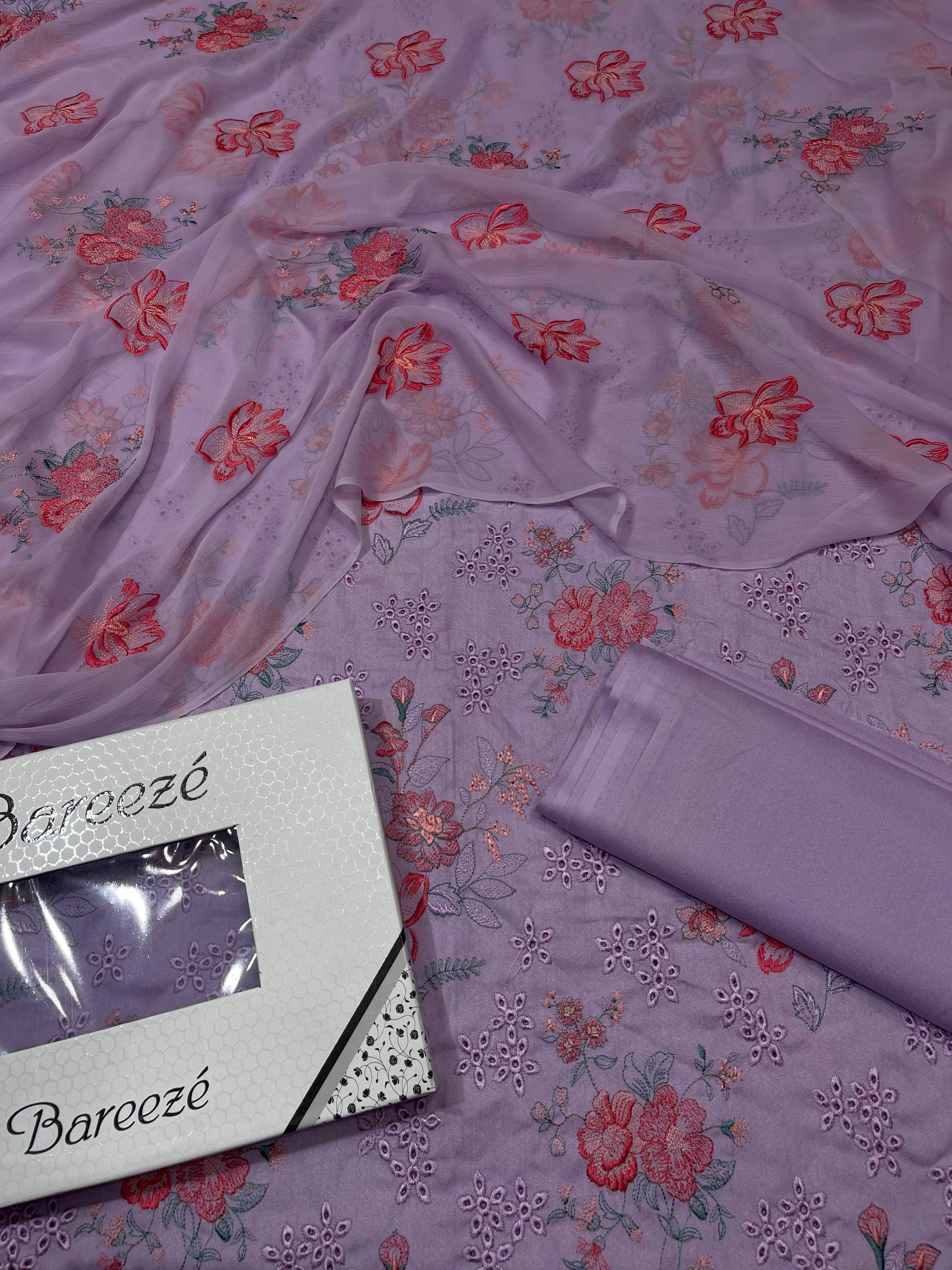 Bareeze- Karandi 3 Pcs All Over Embroidered Unstitched Suit With Chiffon Dupatta