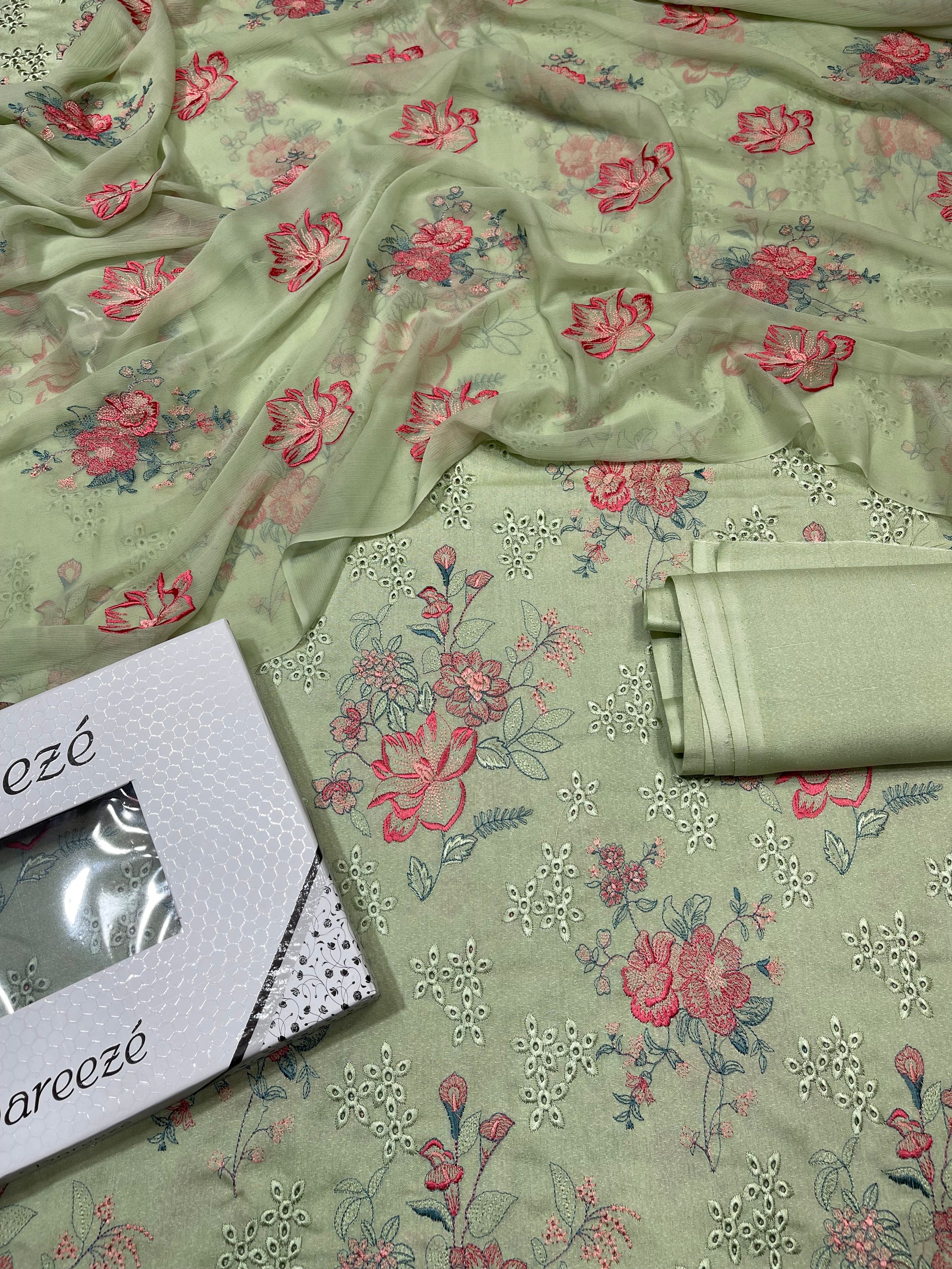Premium 3-Piece Embroidered karandi Outfit with Crinkle Chiffon dupatta:
