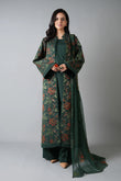 Bareeze- Karandi 3 Pcs All Over Embroidered Unstitched Suit With Chiffon Dupatta
