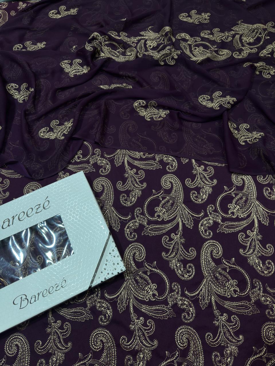 Bareeze- Karandi 3 Pcs All Over Embroidered Unstitched Suit With Chiffon Dupatta