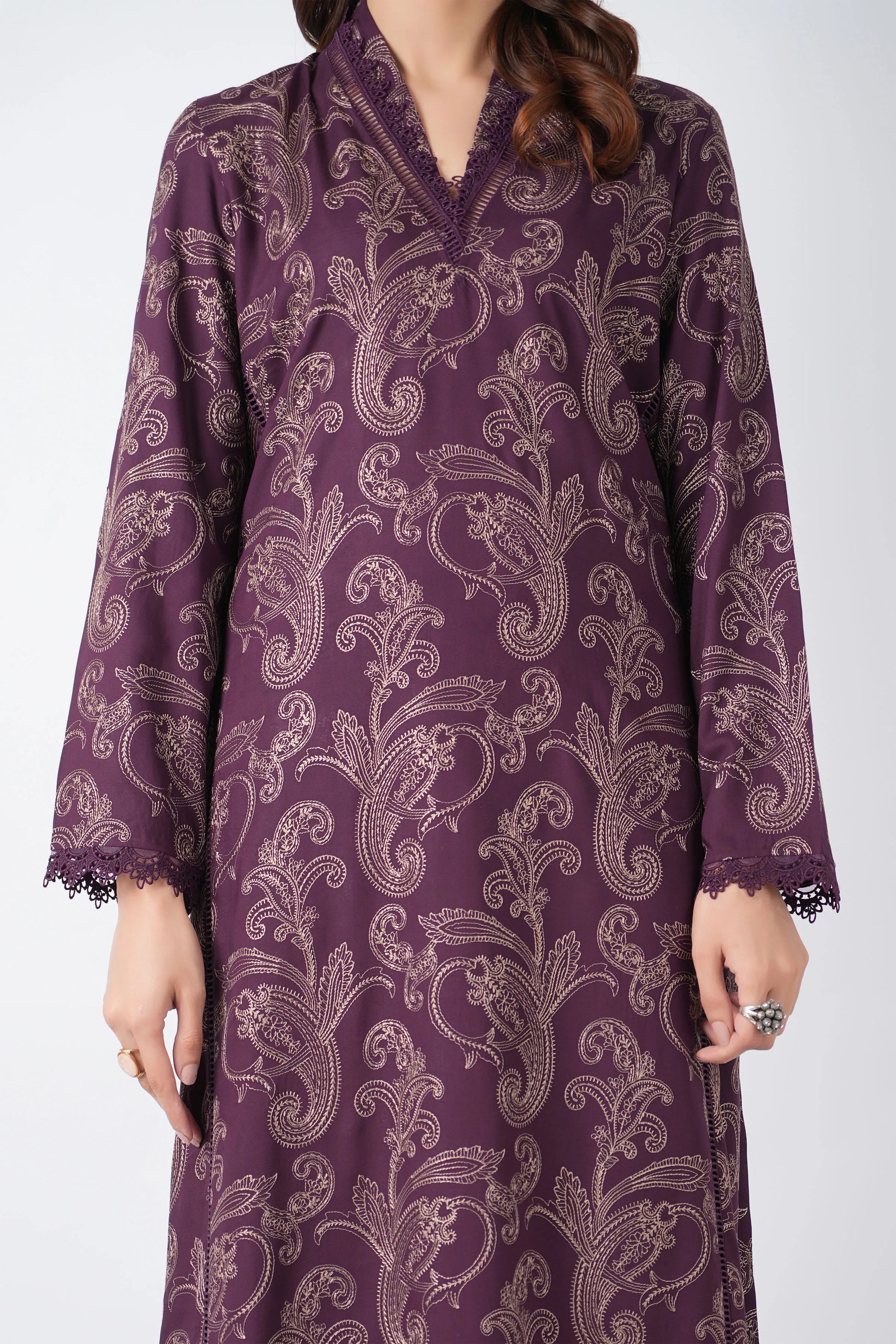 •SHIRT:Allover Embroidered front back and sleeves same. 2.75 yards.