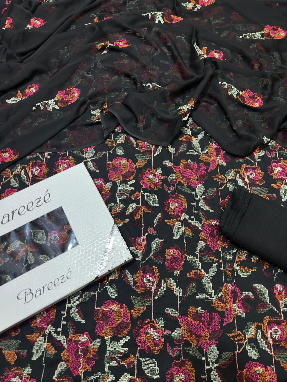Bareeze- Karandi 3 Pcs All Over Embroidered Unstitched Suit With Chiffon Dupatta