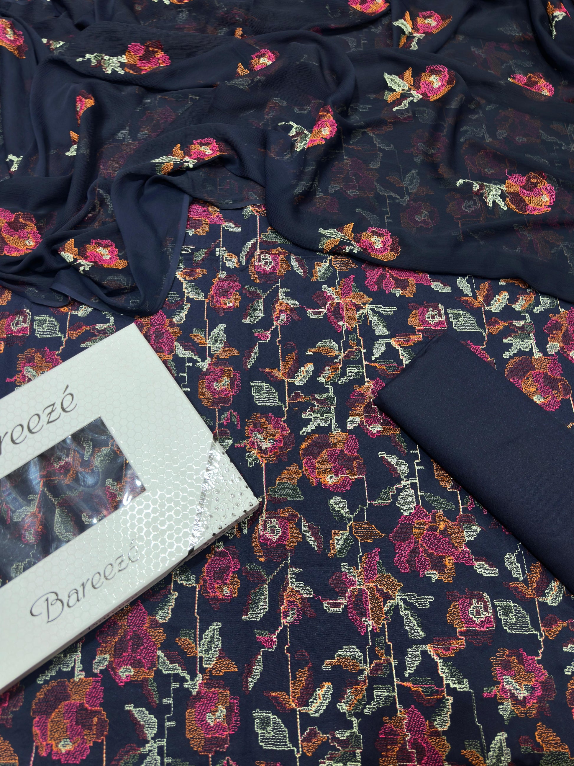 •Embroidered pure chifoon dopatta 2.75 yards.