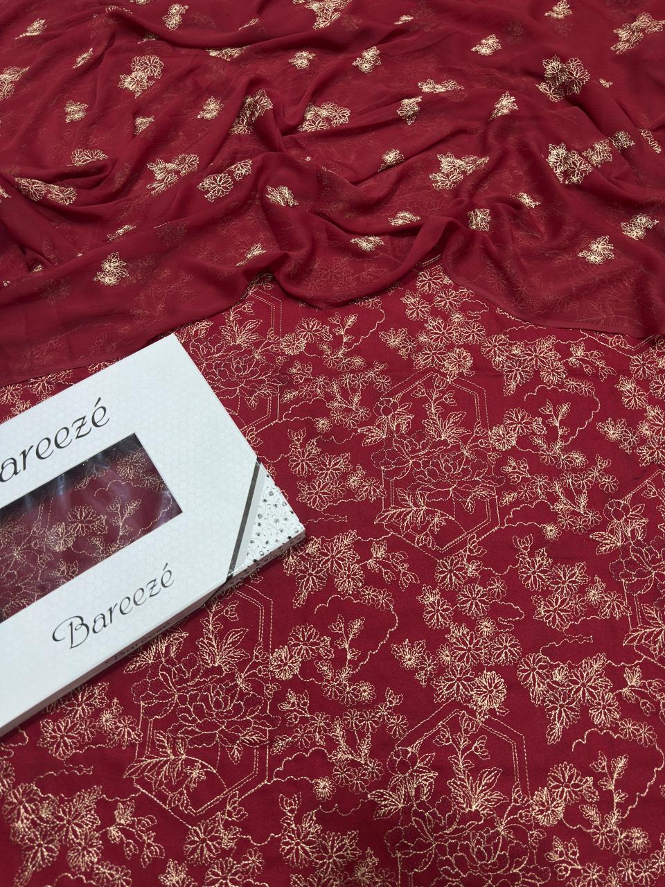 Bareeze- Karandi 3 Pcs All Over Embroidered Unstitched Suit With Chiffon Dupatta