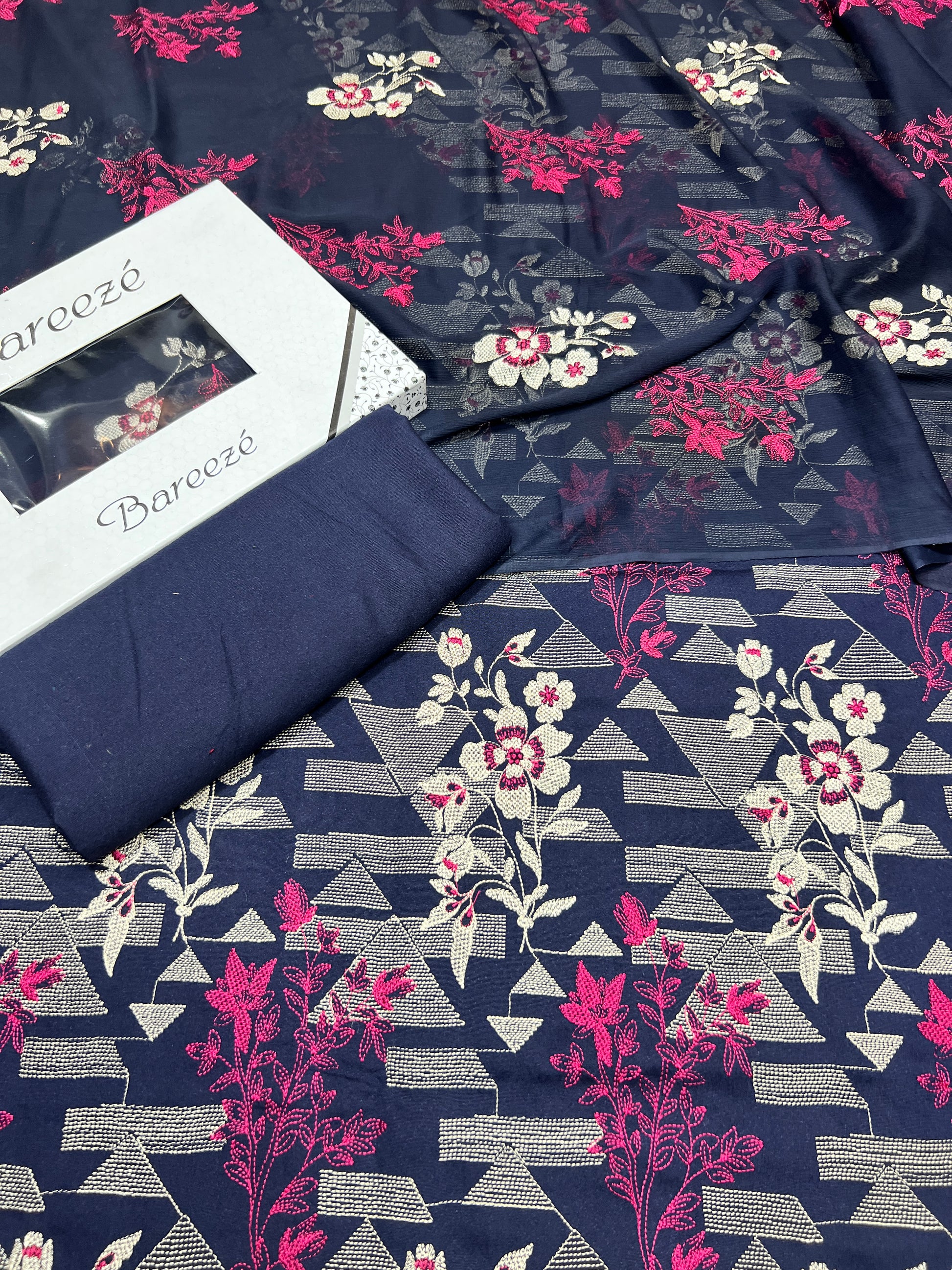 Bareeze- Karandi 3 Pcs All Over Embroidered Unstitched Suit With Chiffon Dupatta