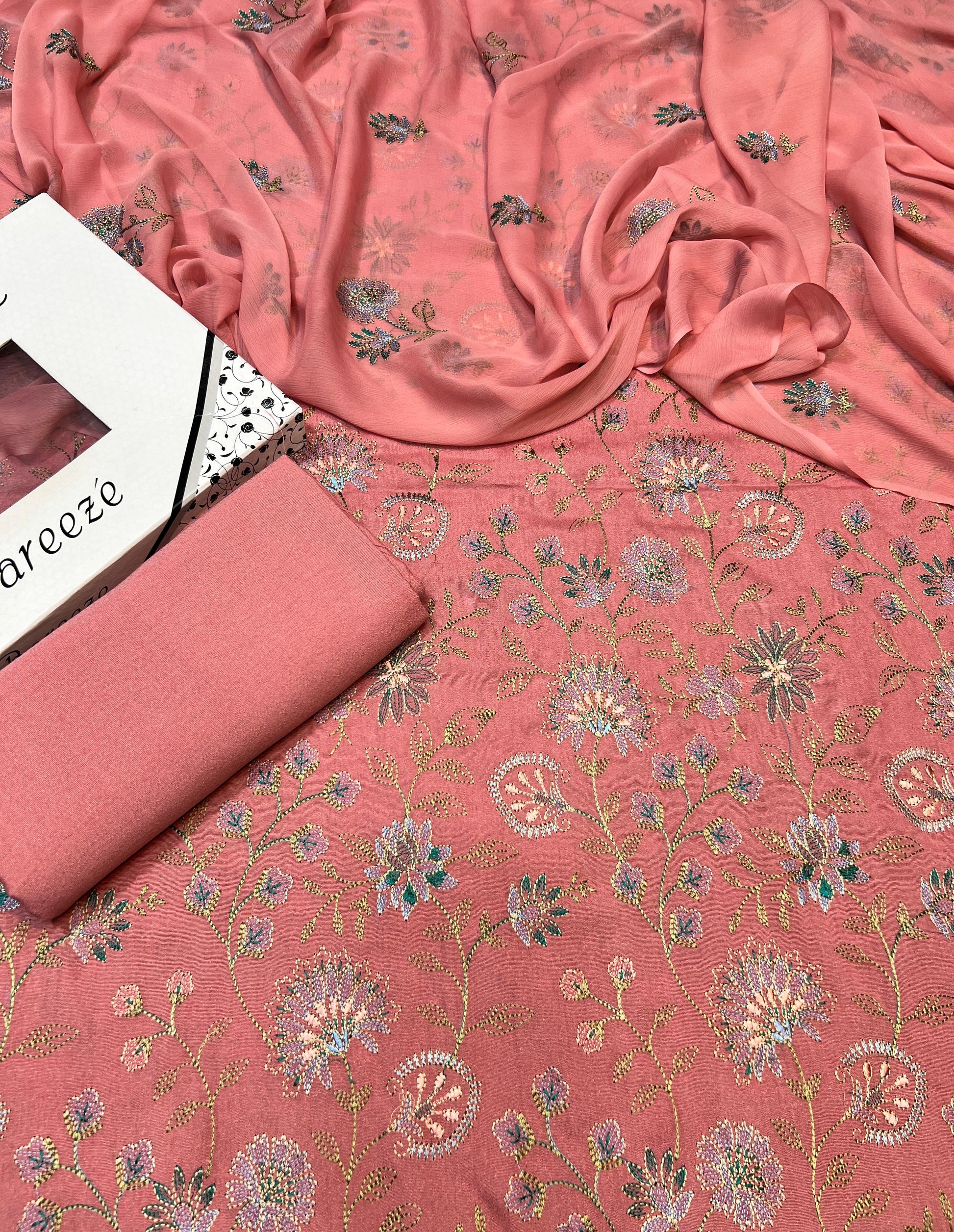 •Embroidered pure chifoon dopatta 2.75 yards.