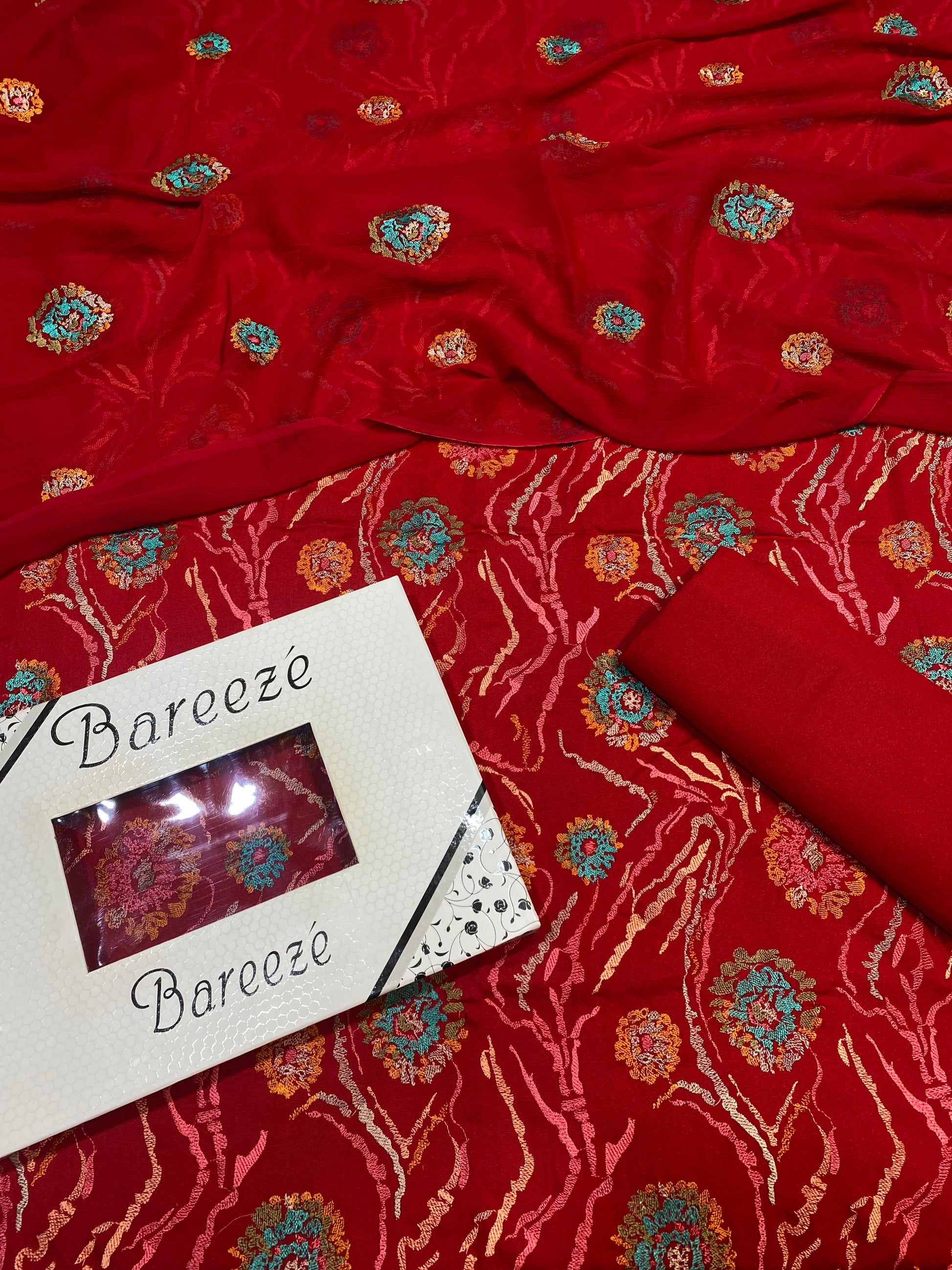Bareeze- Karandi 3 Pcs All Over Embroidered Unstitched Suit With Chiffon Dupatta