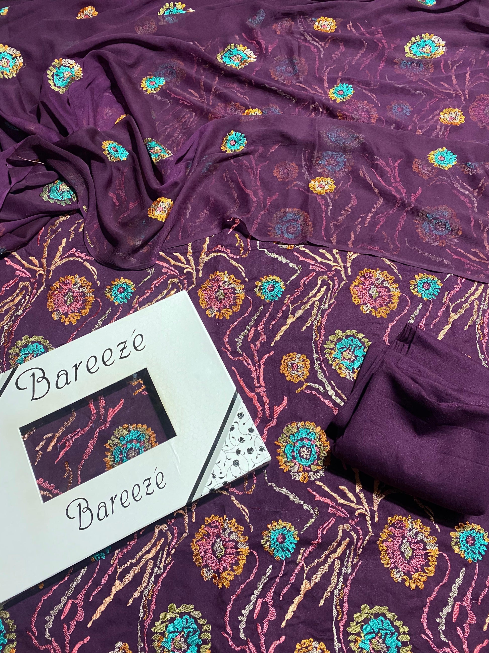 •Embroidered pure chifoon dopatta 2.75 yards.