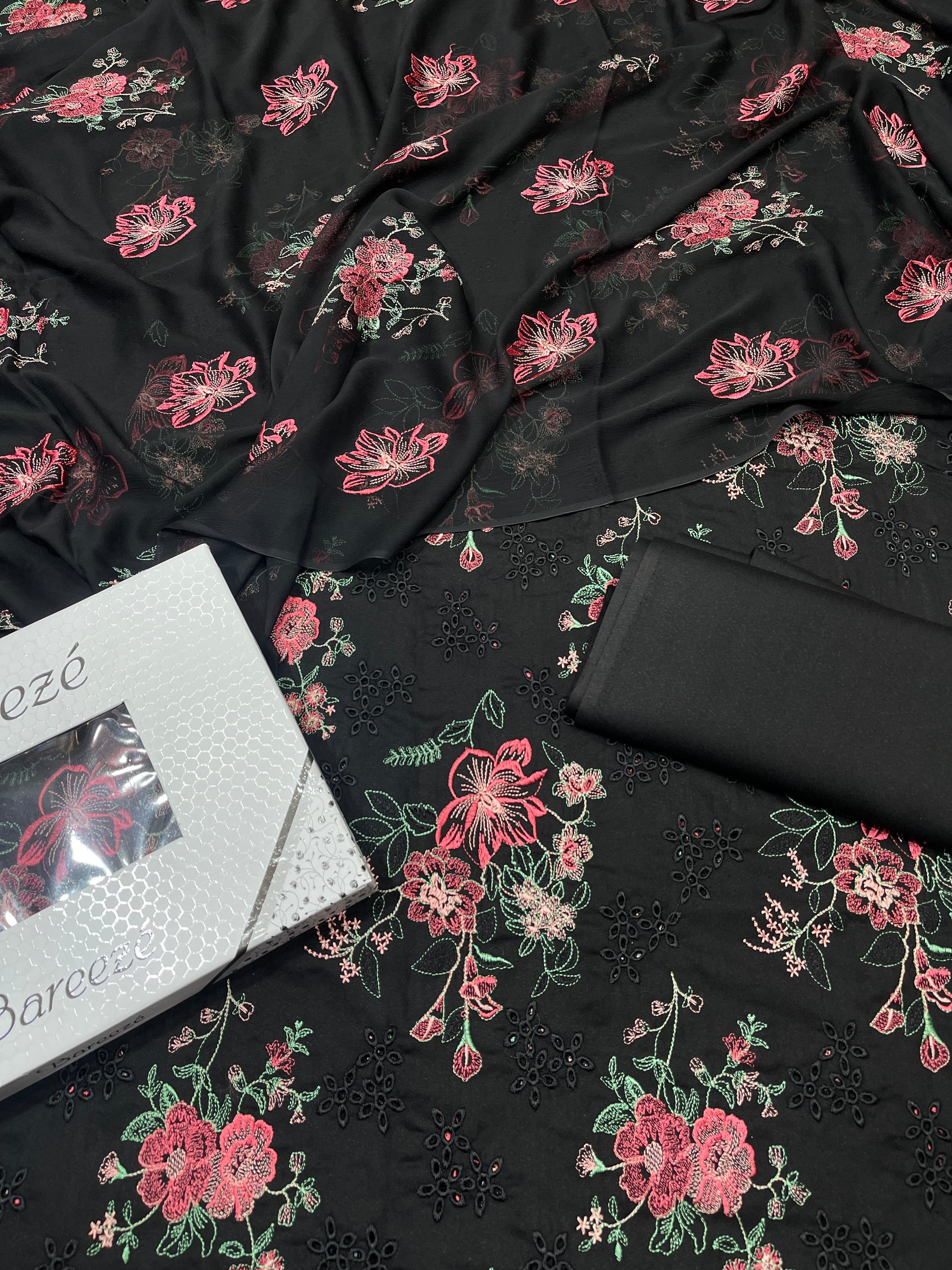Bareeze- Karandi 3 Pcs All Over Embroidered Unstitched Suit With Chiffon Dupatta