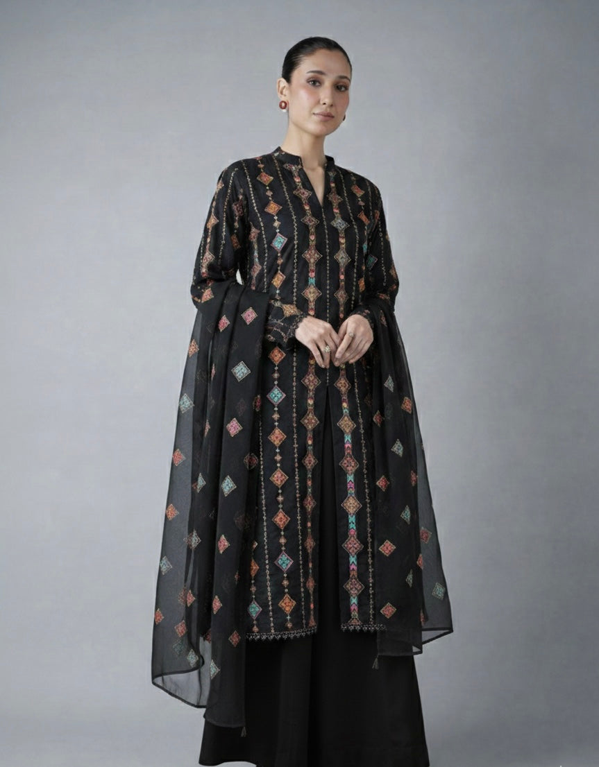 Premium 3-Piece Embroidered karandi Outfit with Crinkle Chiffon dupatta: