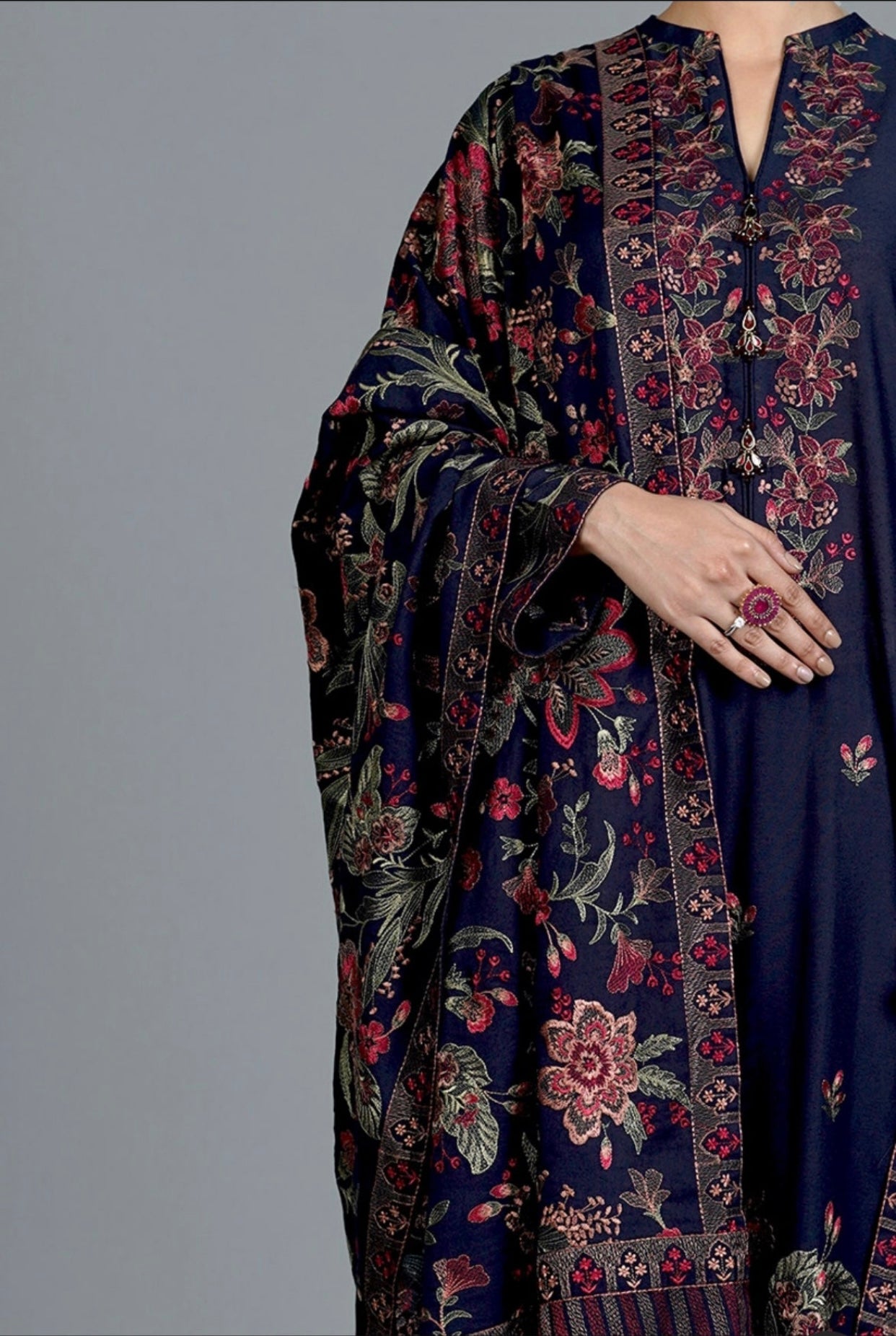 •2.75 Yards Embroidered Karandi Shawl