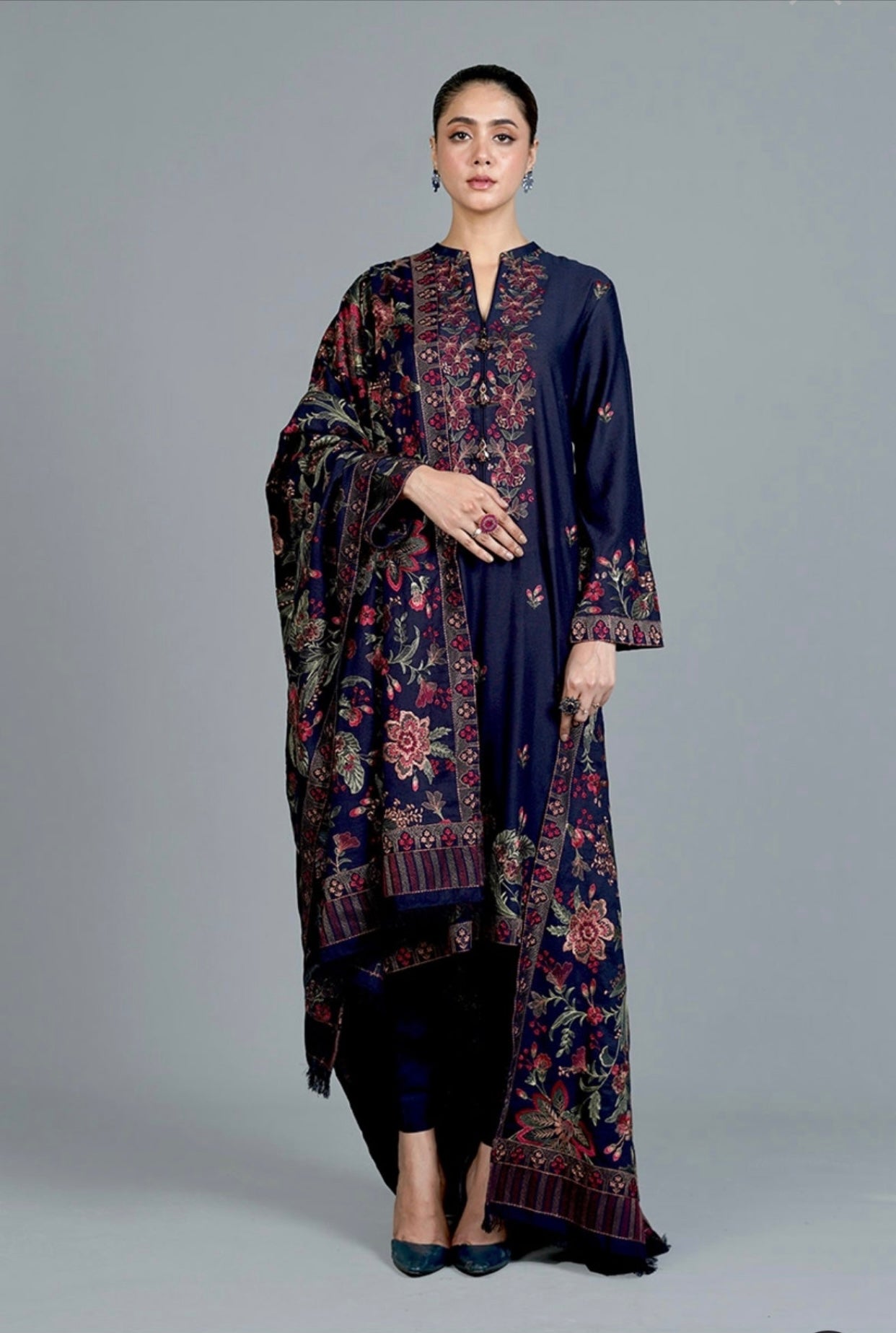 Bareeze karandi 3-Piece Embroidered Outfit: winter Elegance Latest Fashion