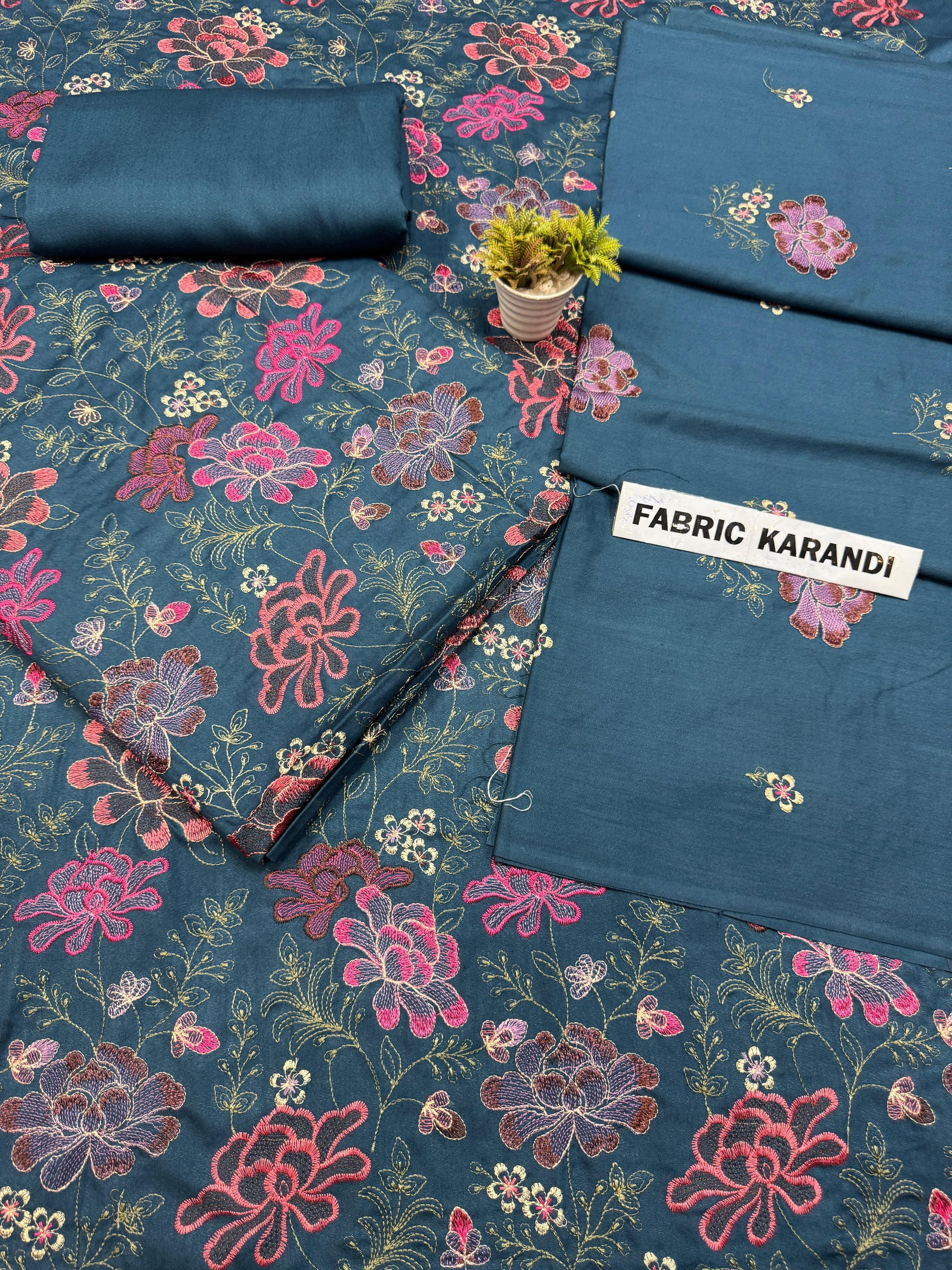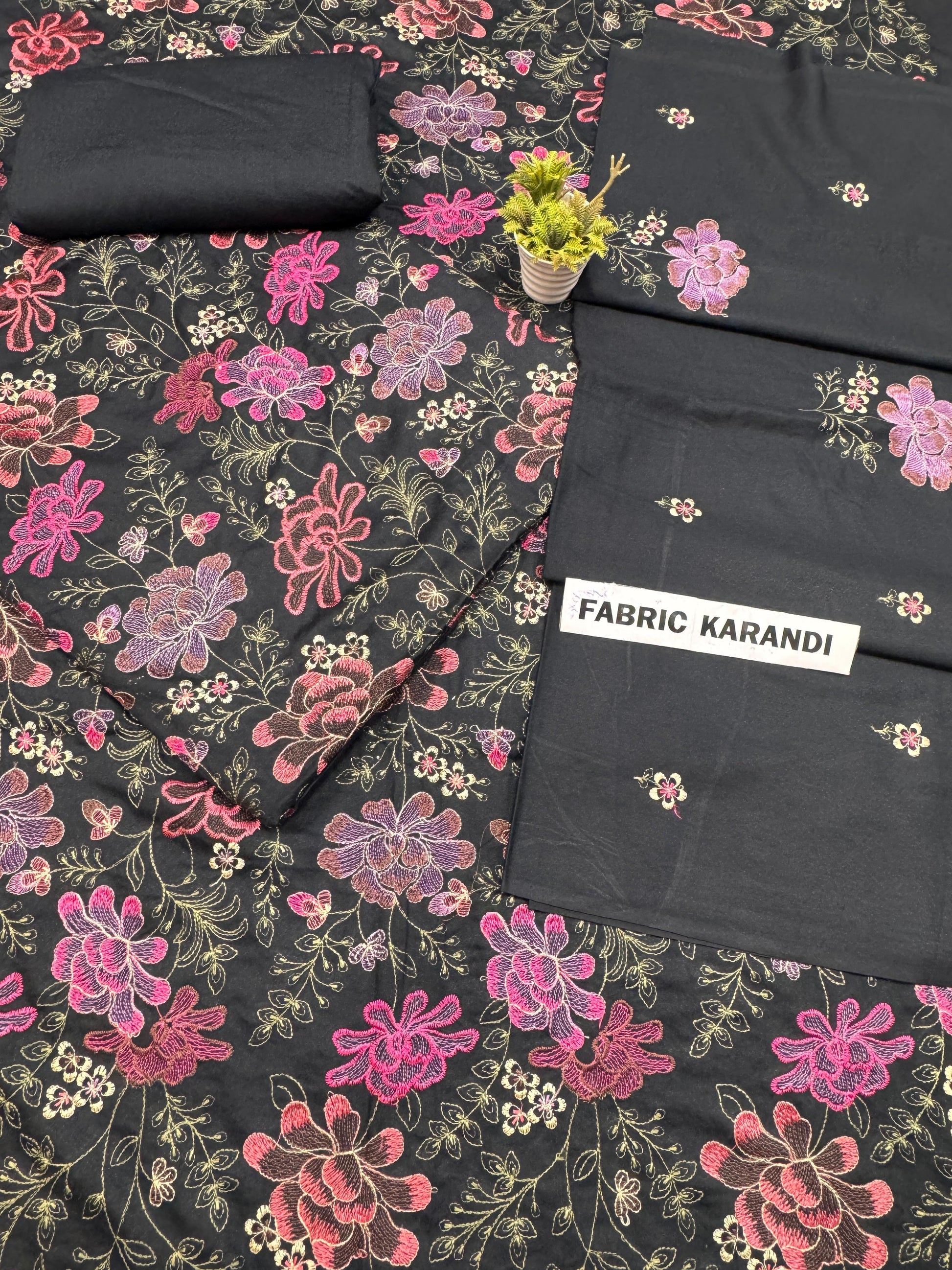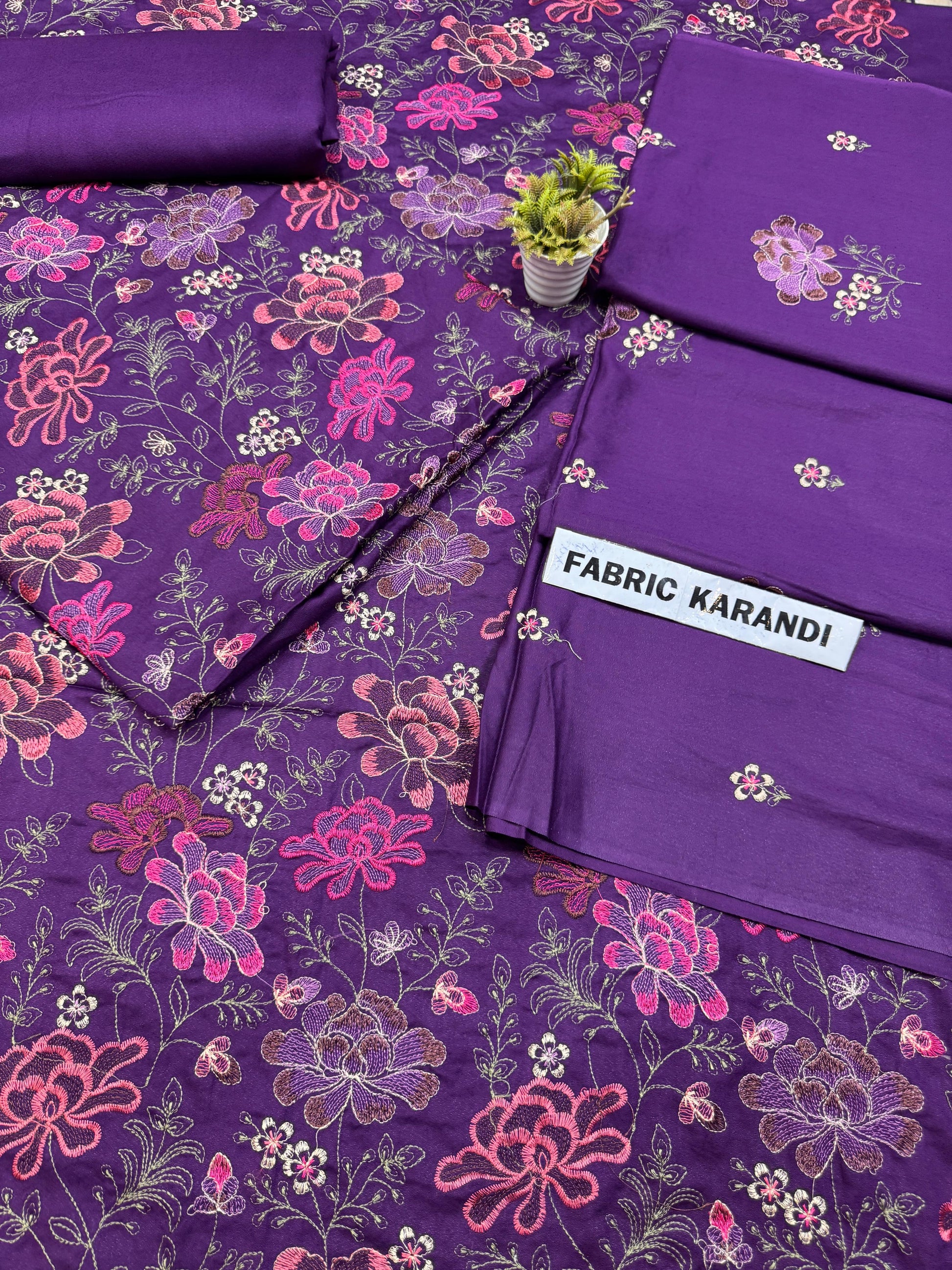Premium 3-Piece Allover Viscous Embroidered karandi Outfit