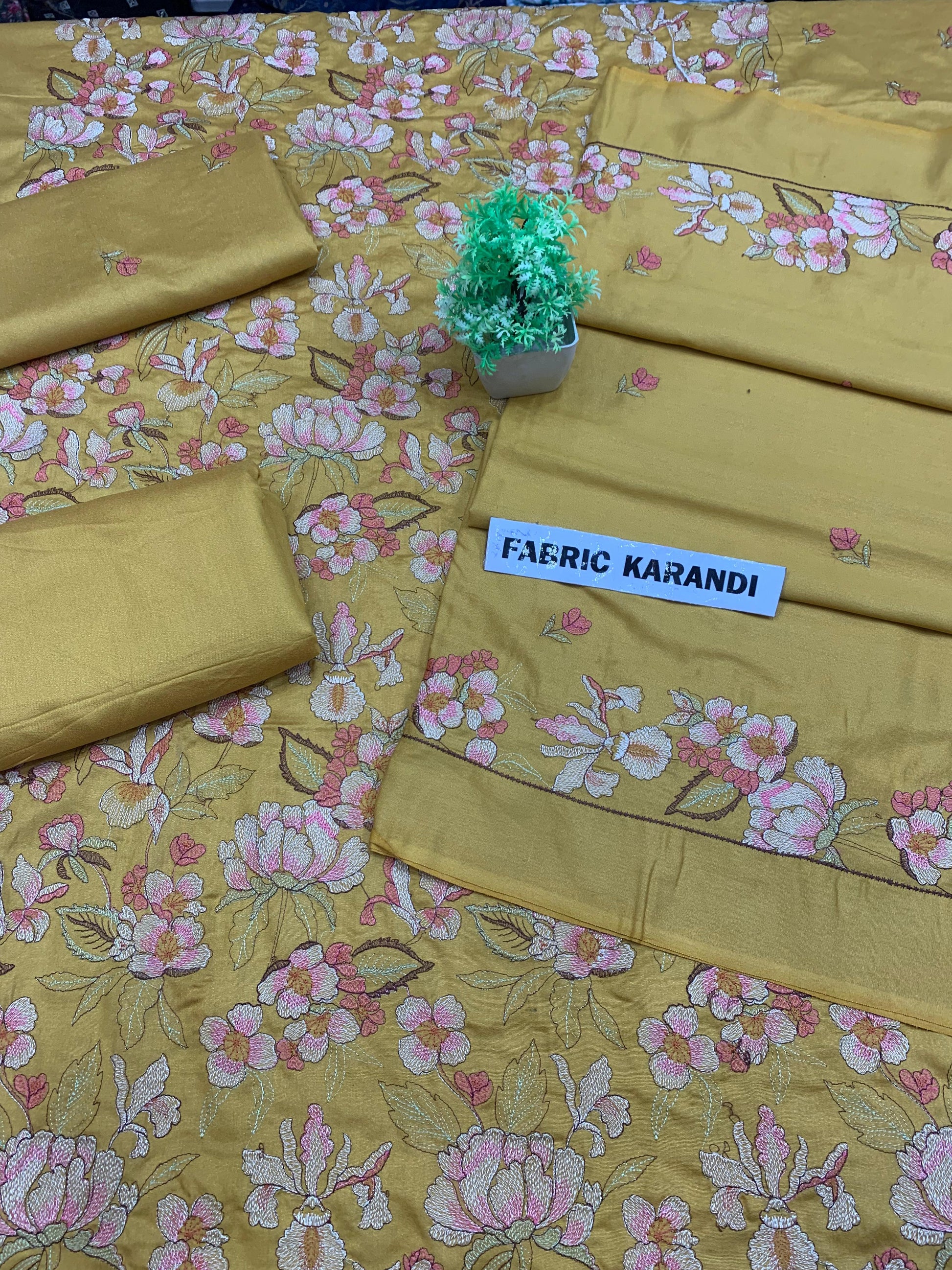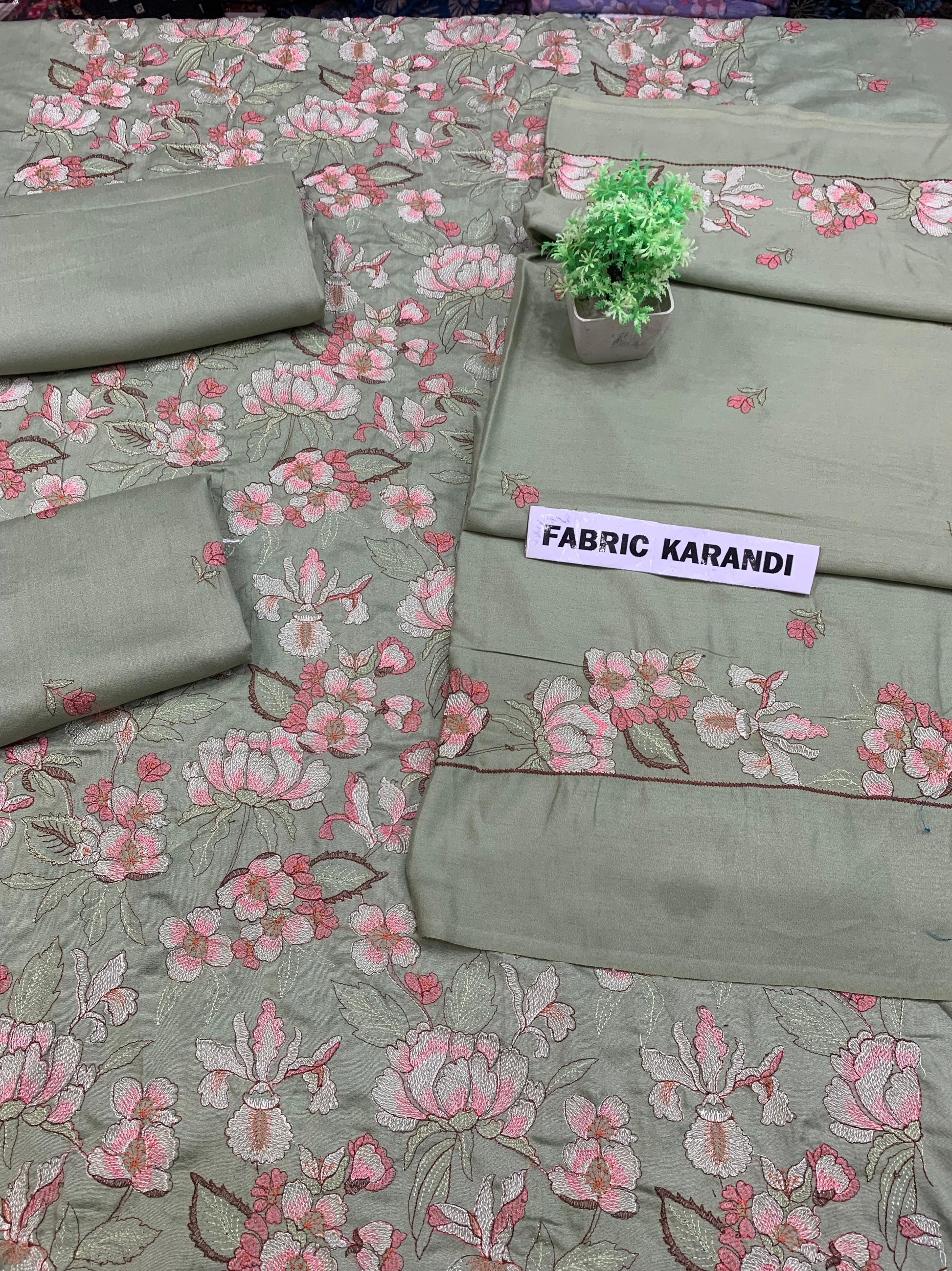 Premium 3-Piece Viscous Embroidered karandi Outfit