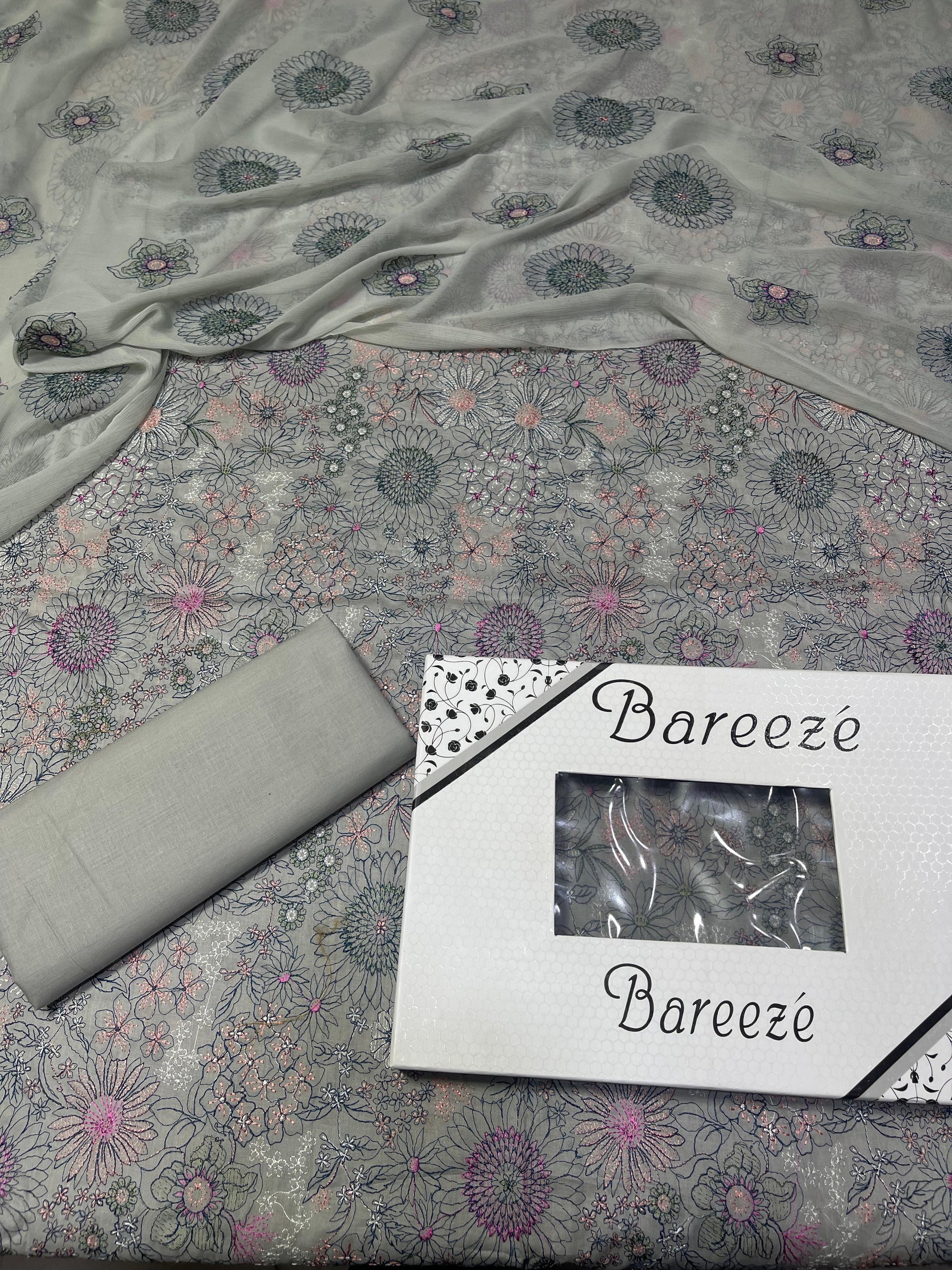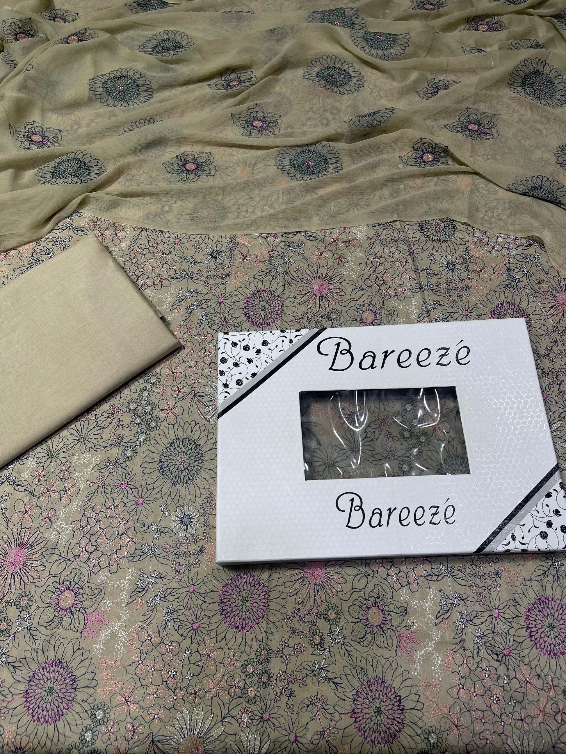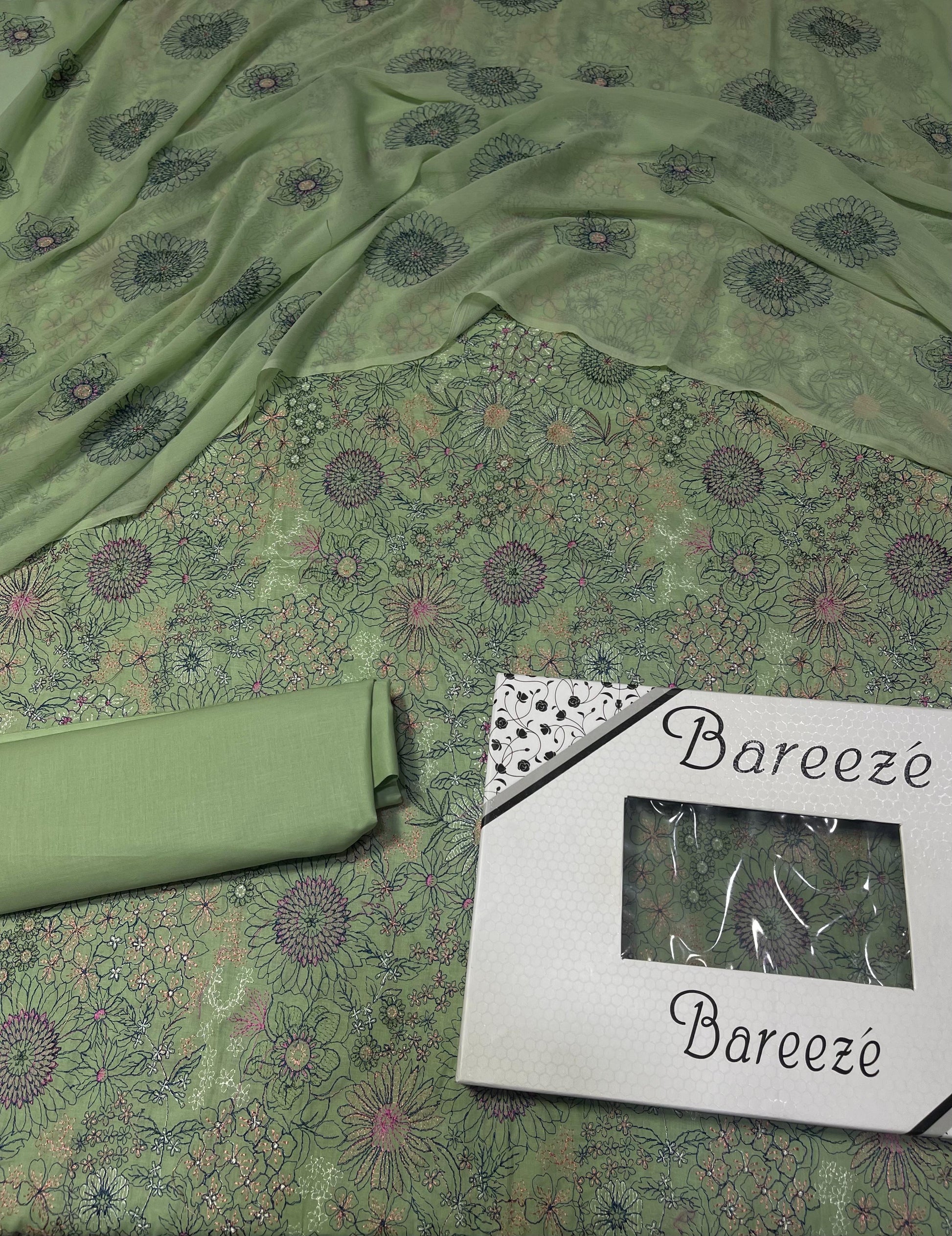 Bareeze - Lawn 3 Pcs Allover Embroidered unstitched Dress with Chiffon Dupatta.