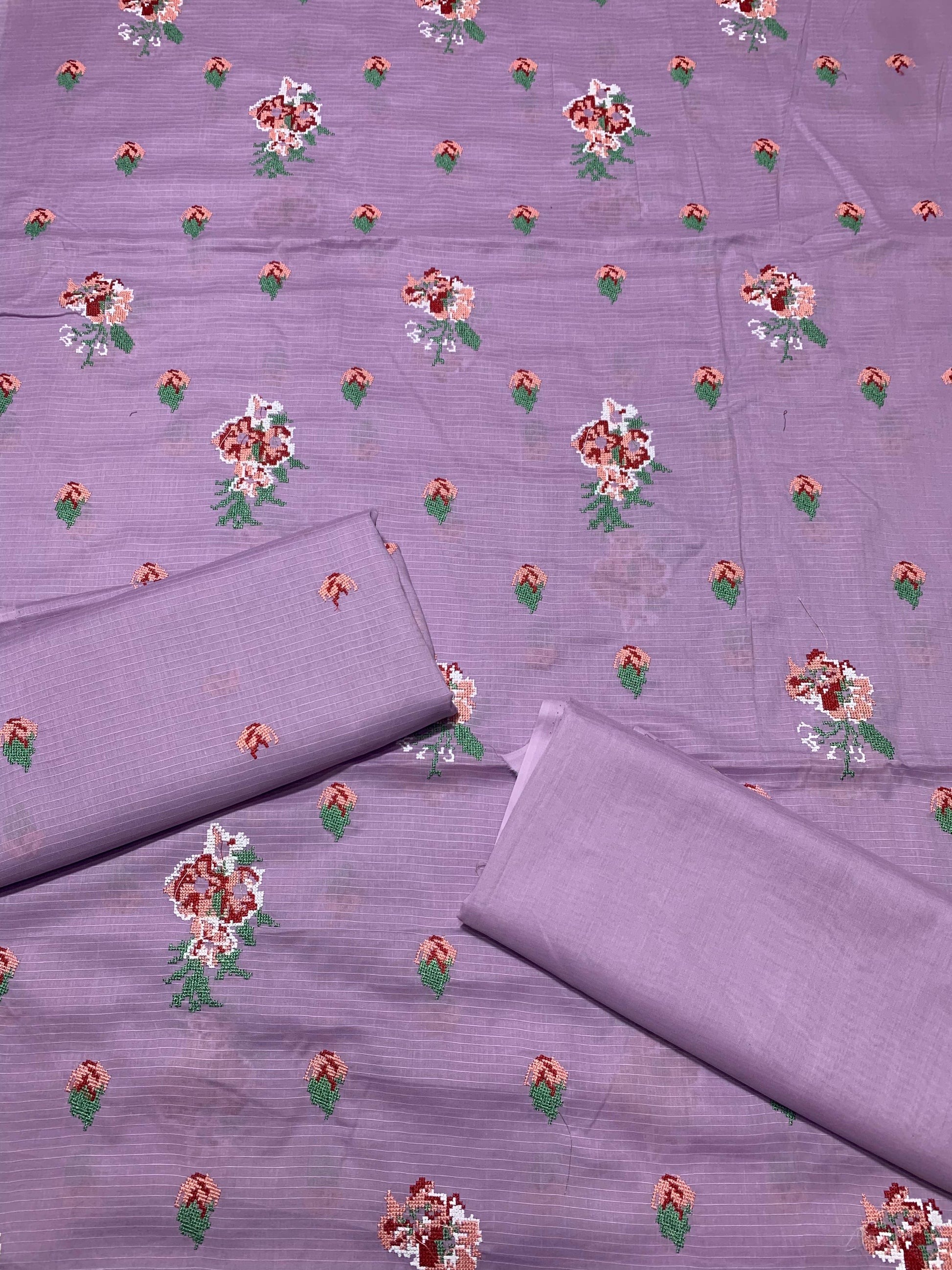Beautiful Doria Lawn 2 Pcs Embroidered Unstitched Suit - Summer Oufits.