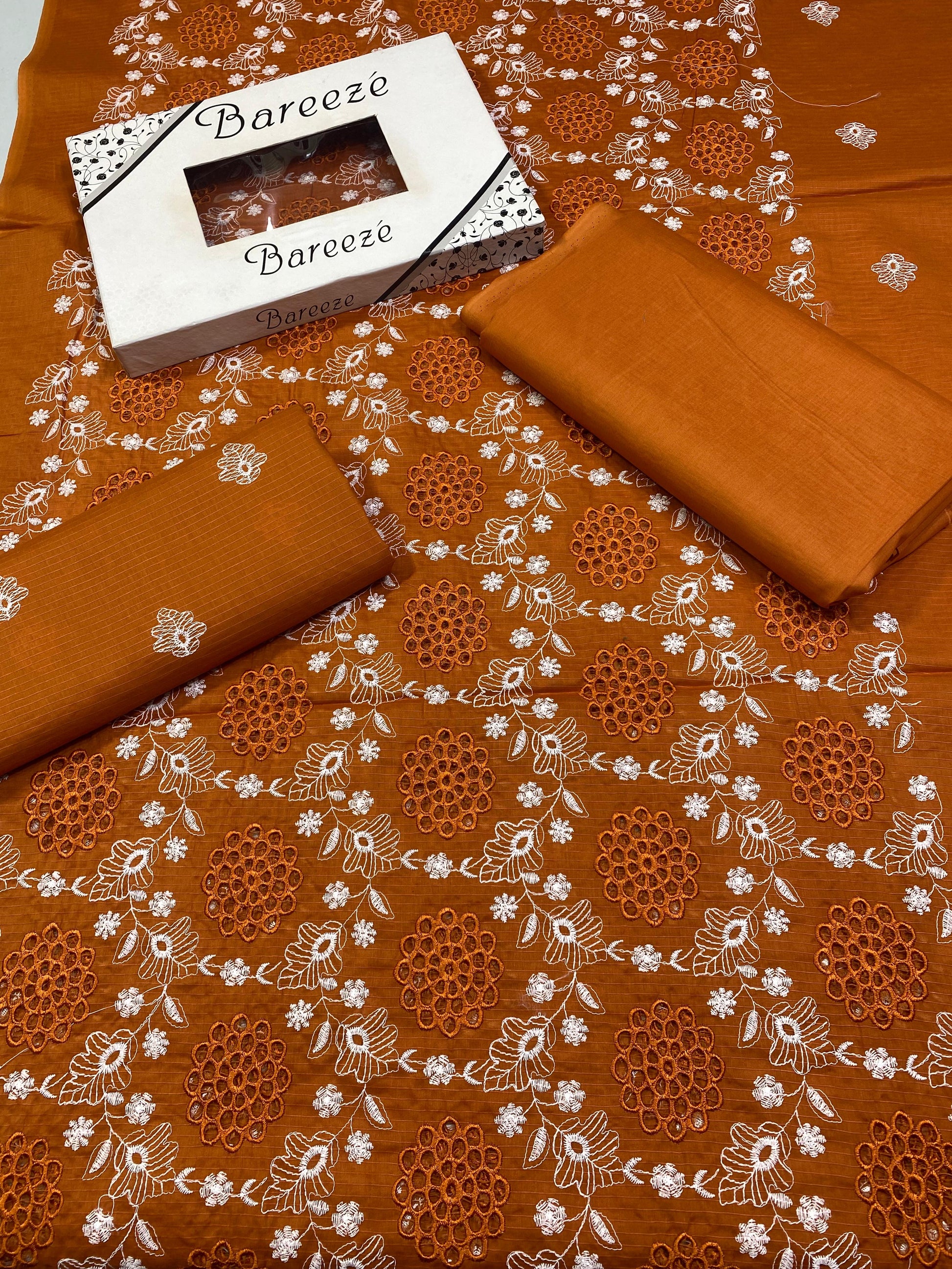 Chikan Kari - Doria Lawn 2 Pcs Embroidered Unstitched Suit - Summer Oufits.