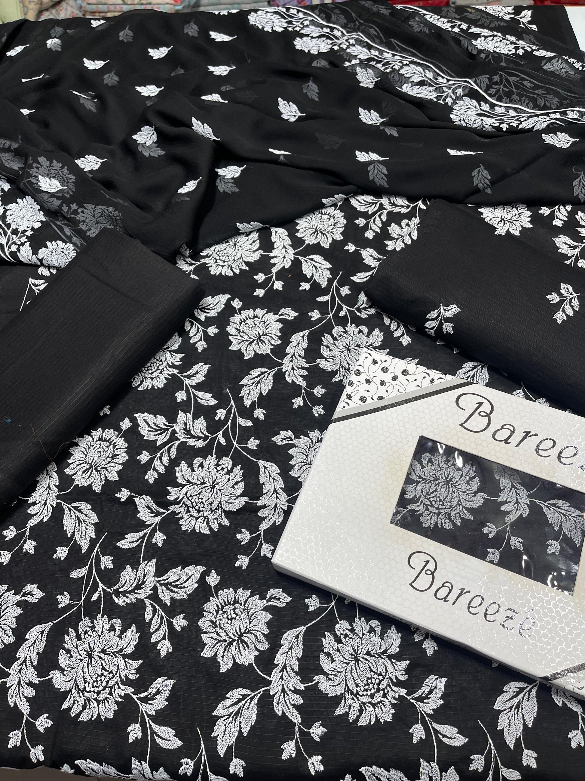 Chikan Kari - Lawn 3 Pcs Embroidered unstitched Dress with Chiffon Dupatta.