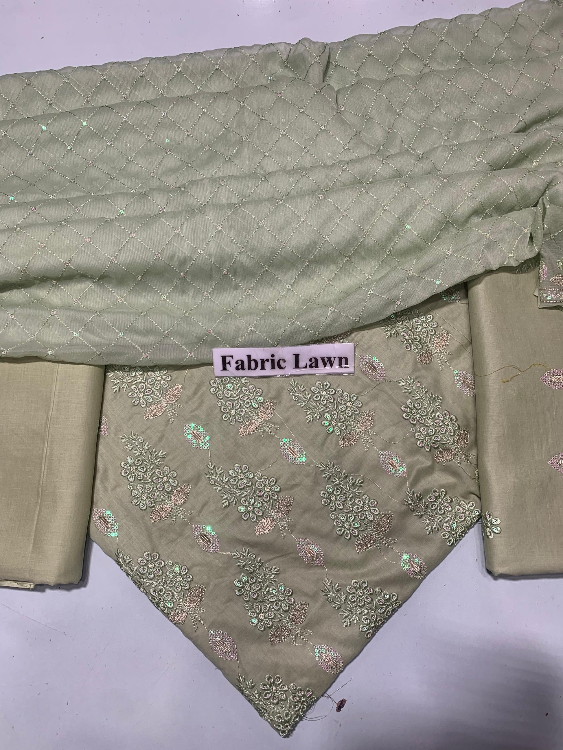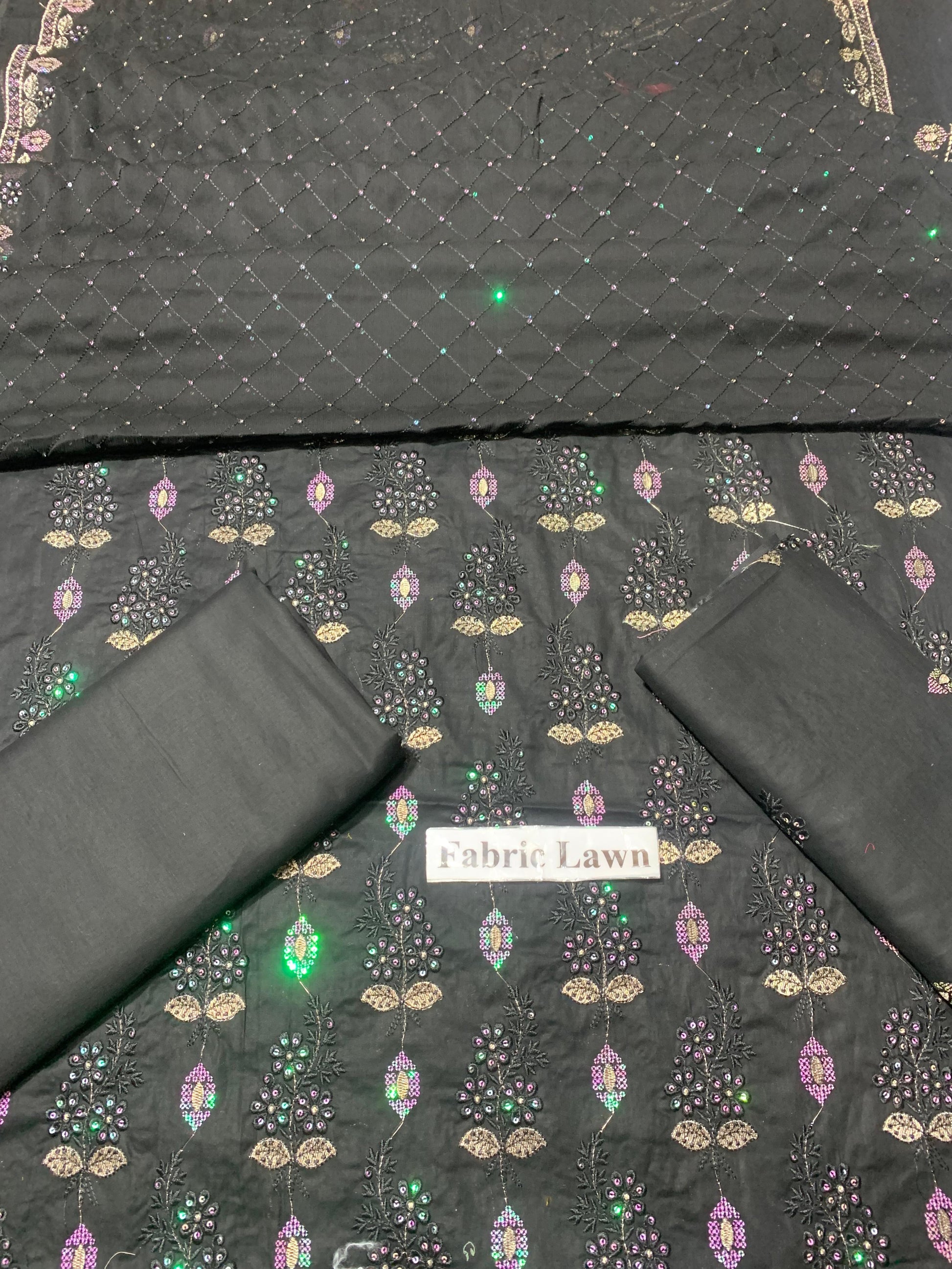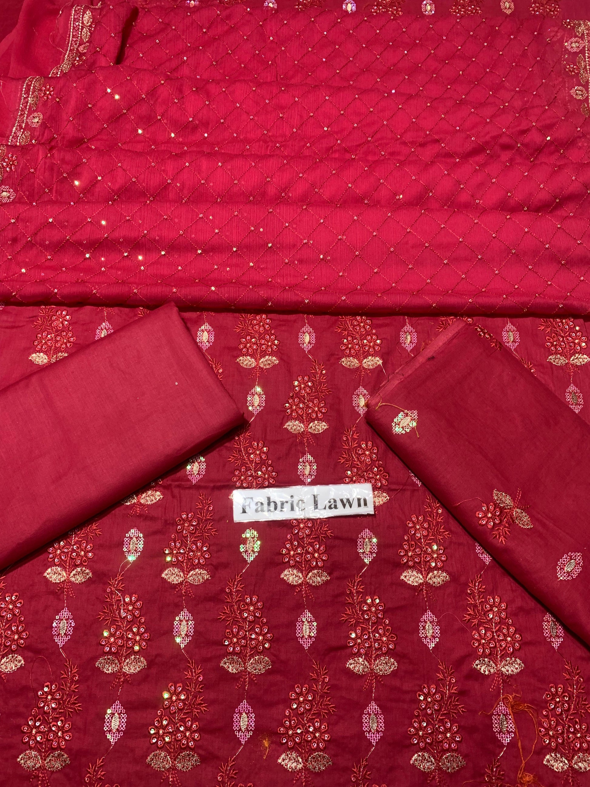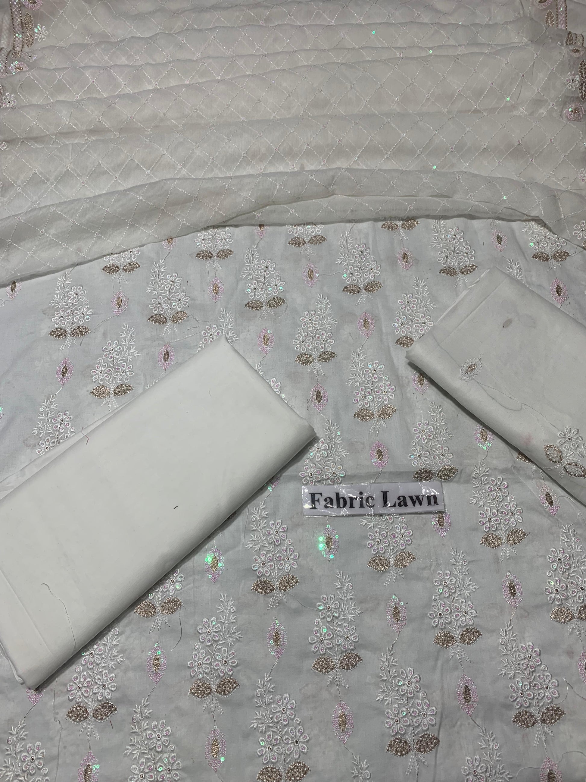 Chikan Kari - Lawn 3 Pcs Embroidered unstitched Dress with Chiffon Dupatta.