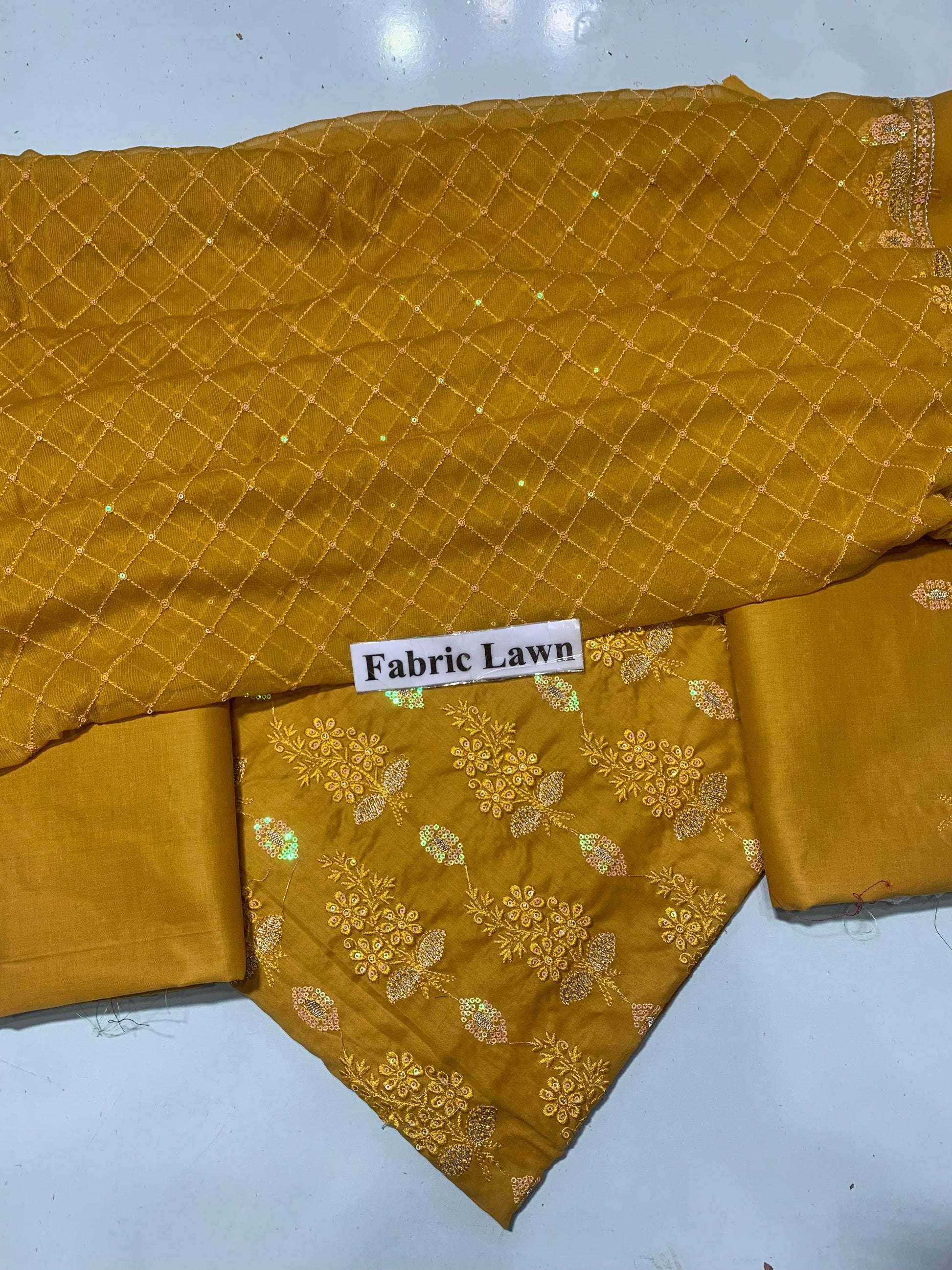 Featuring Lawn 3Pcs Chikan Kari Embroidered Unstitched Suits for Parties and Casual wears.